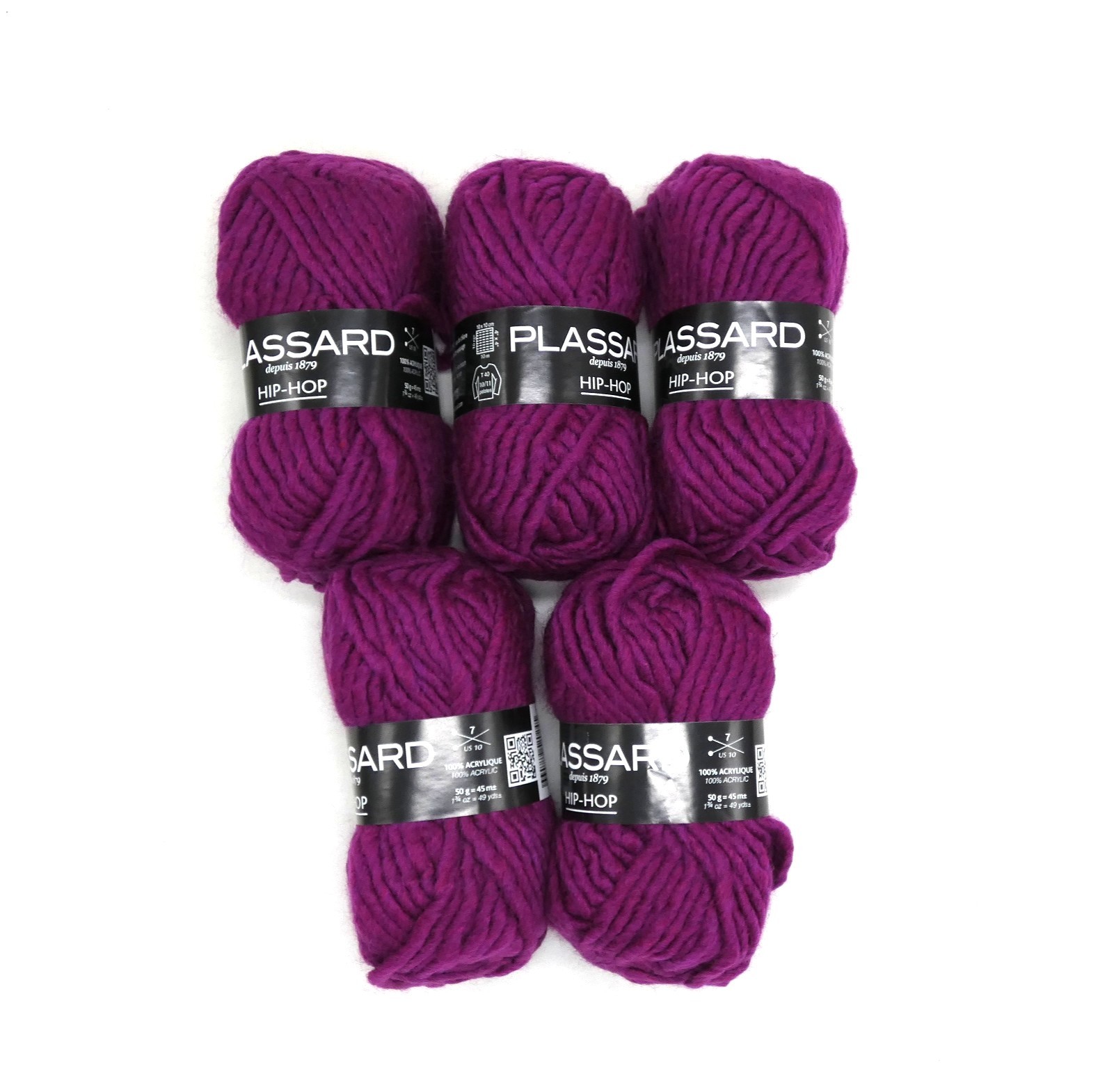 Lot de 5 pelotes de laine plassard Hip Hop violet C 51