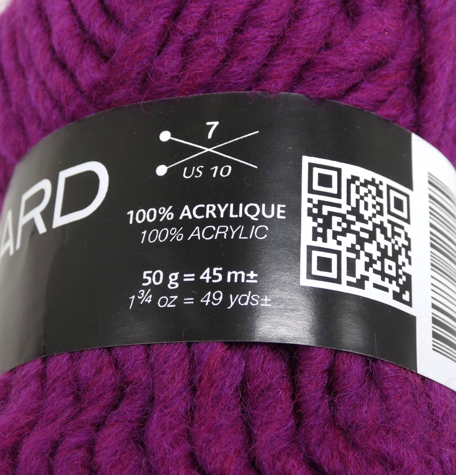 Pelote de laine de 50 gr = +/- 45 mètres, 49 yds.