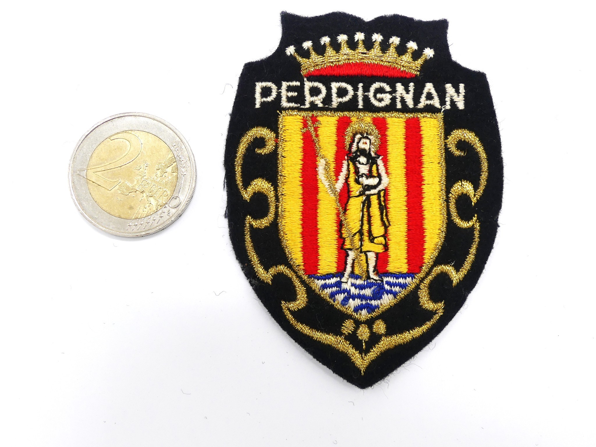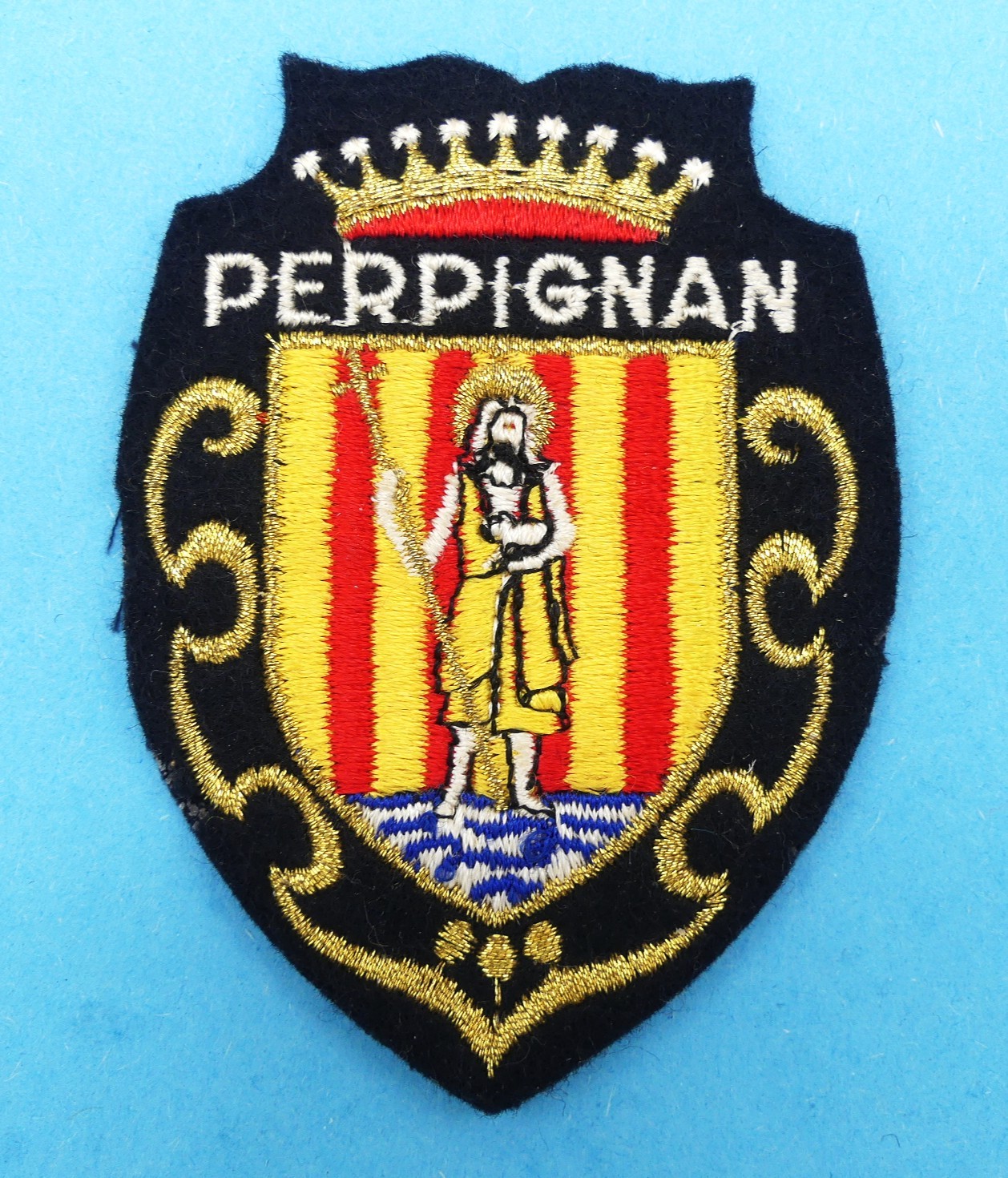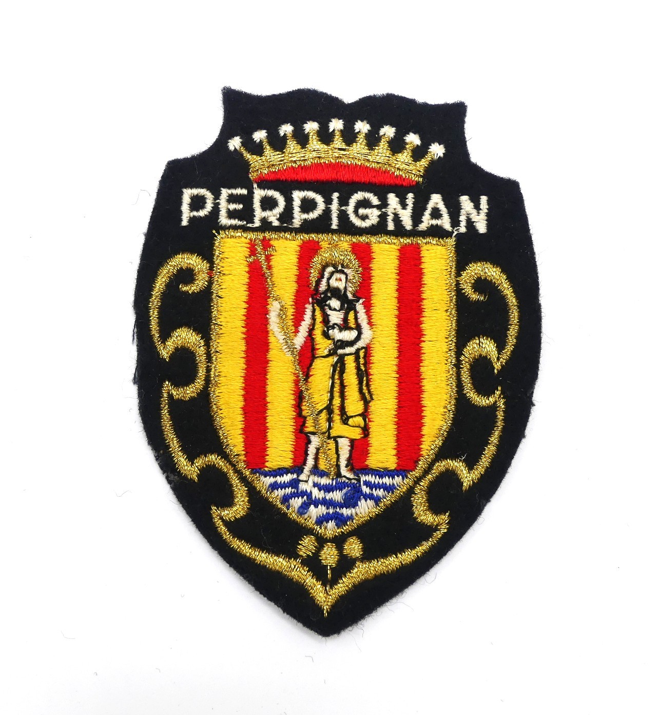 Ecusson brodé ville Perpignan à coudre pour customisation .