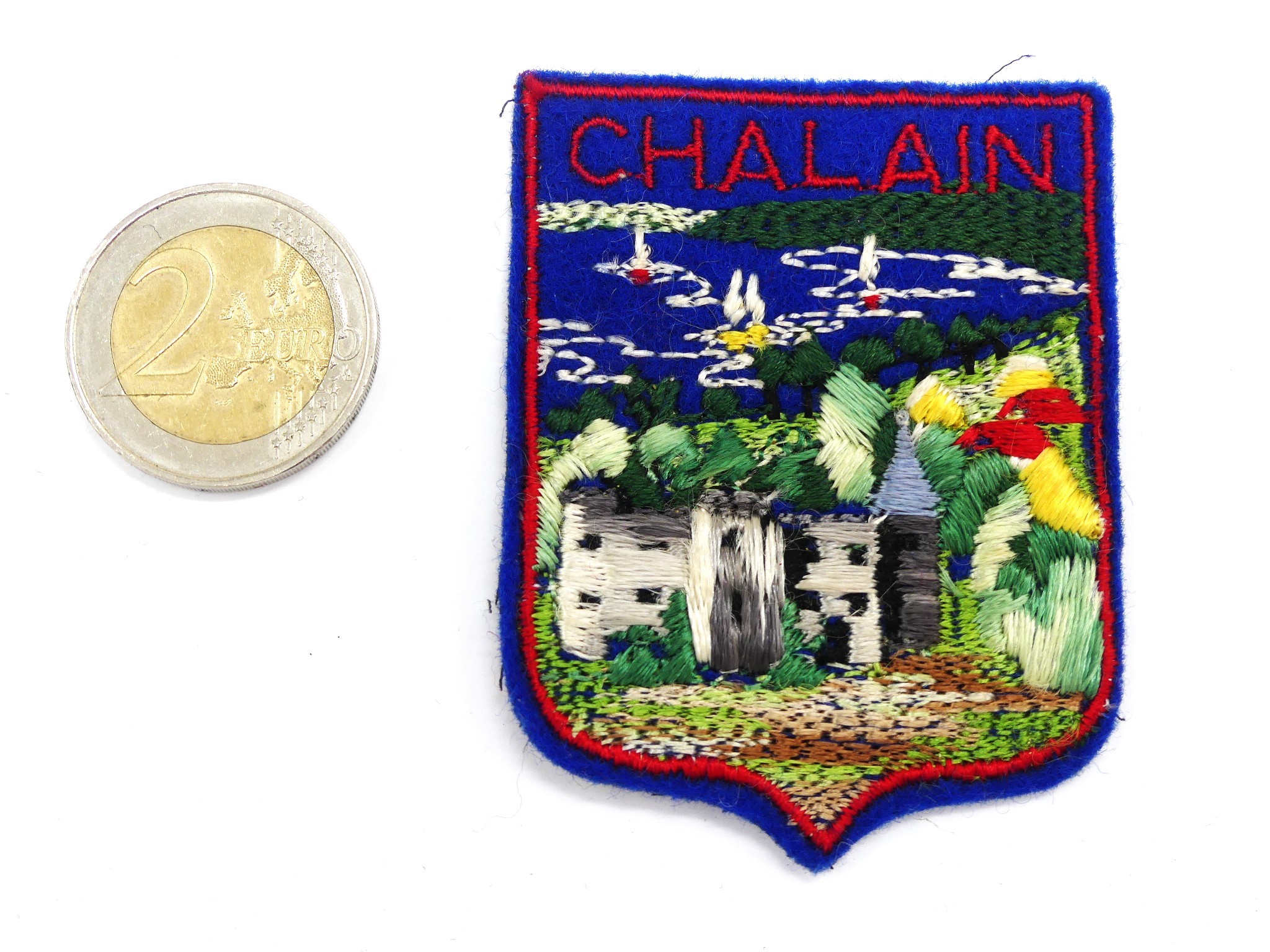 Ecusson brodé ville Chalain à coudre pour customisation vêtement ou accessoire .