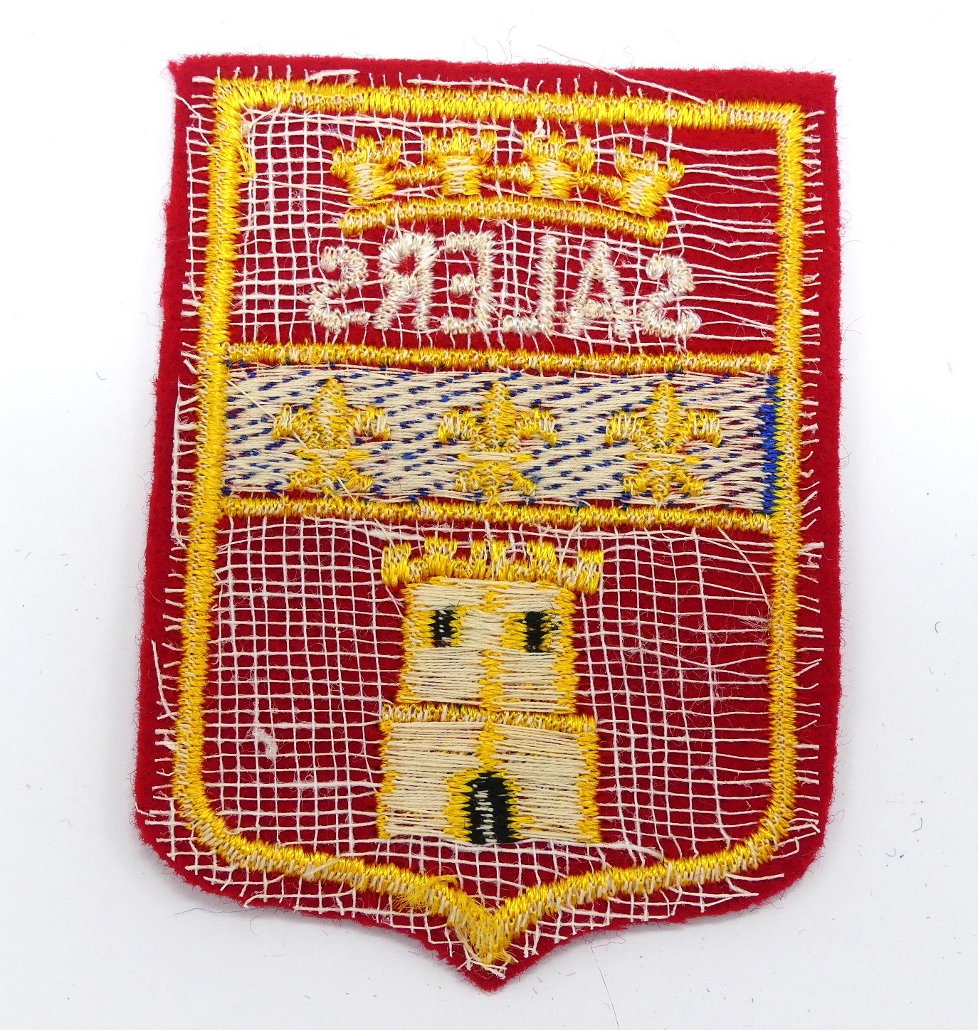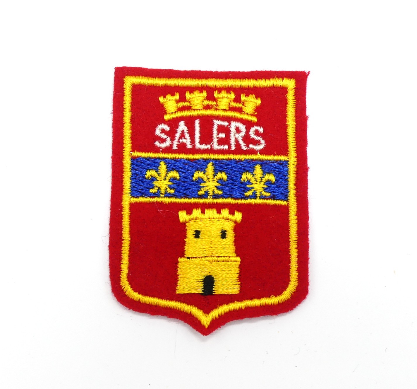 Ecusson ancien brodé ville Salers à coudre pour customisation vêtement ou accessoire.