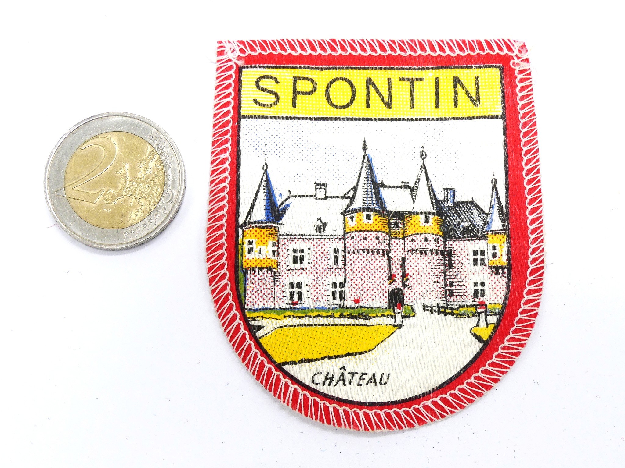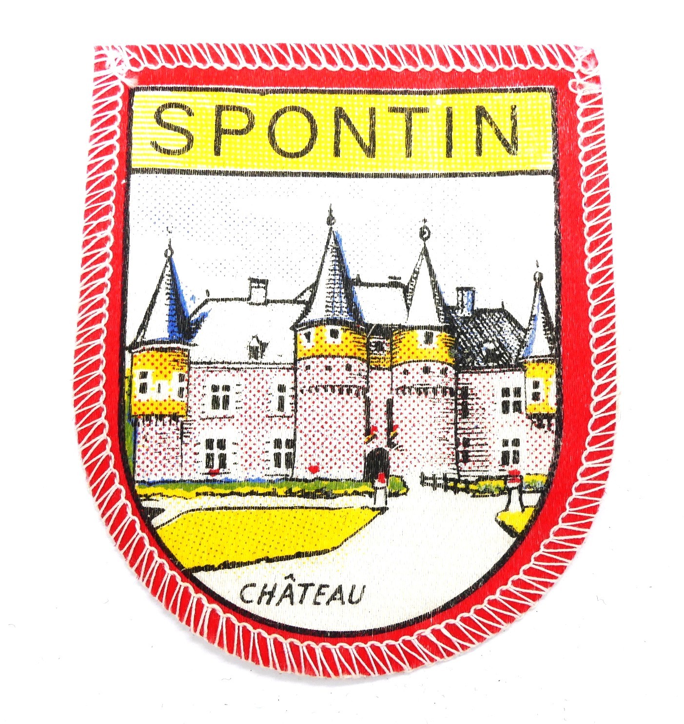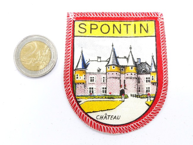 Ecusson brodé en tissu ville SPONTIN château à coudre poiur customisation .