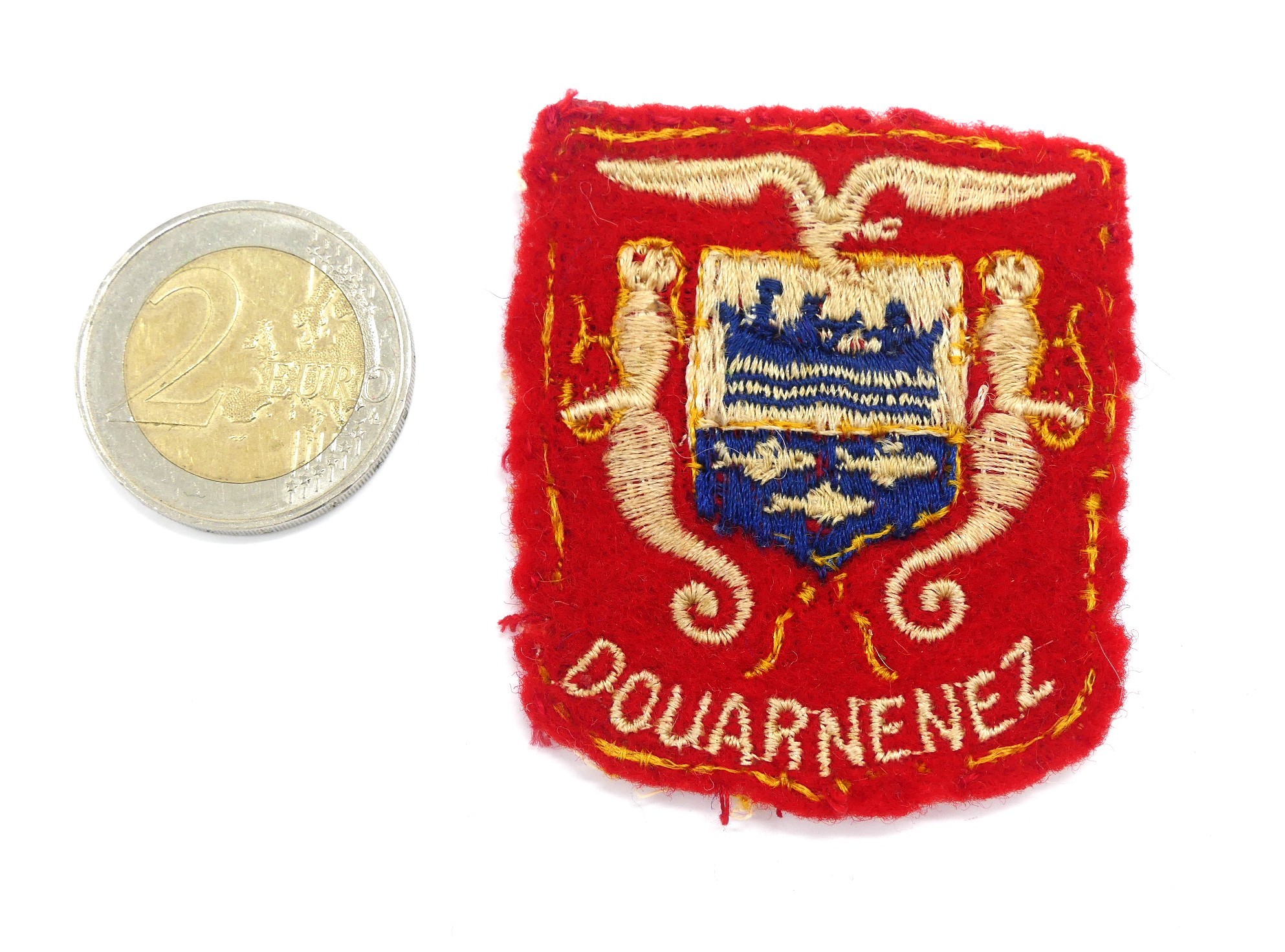 Ecusson très ancien brodé ville Douarmenez en tissu feutrine.