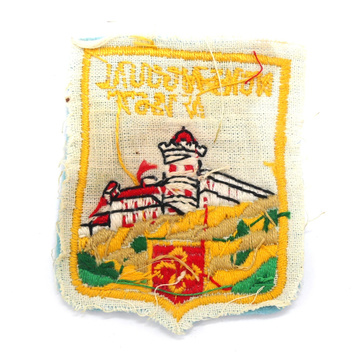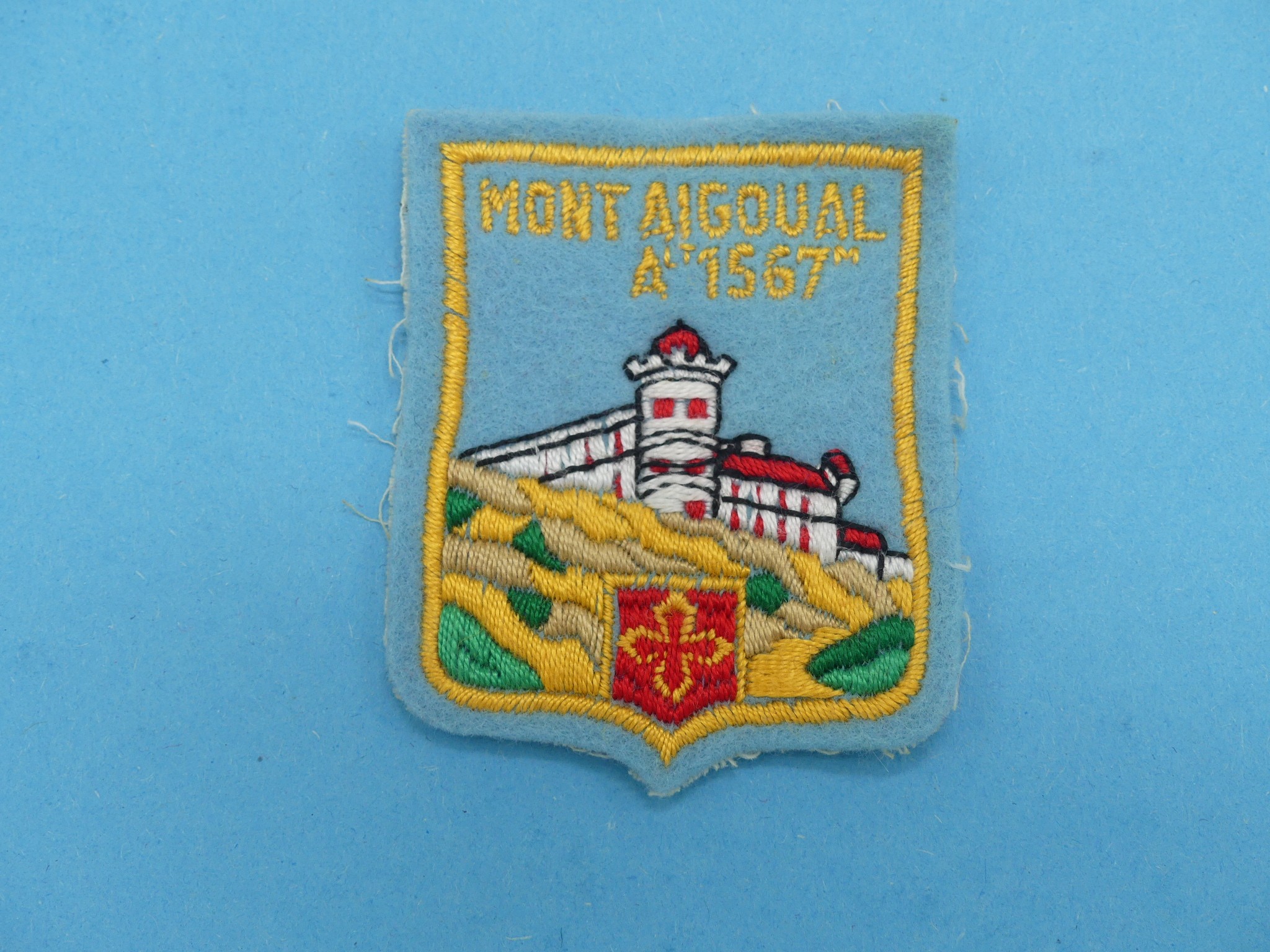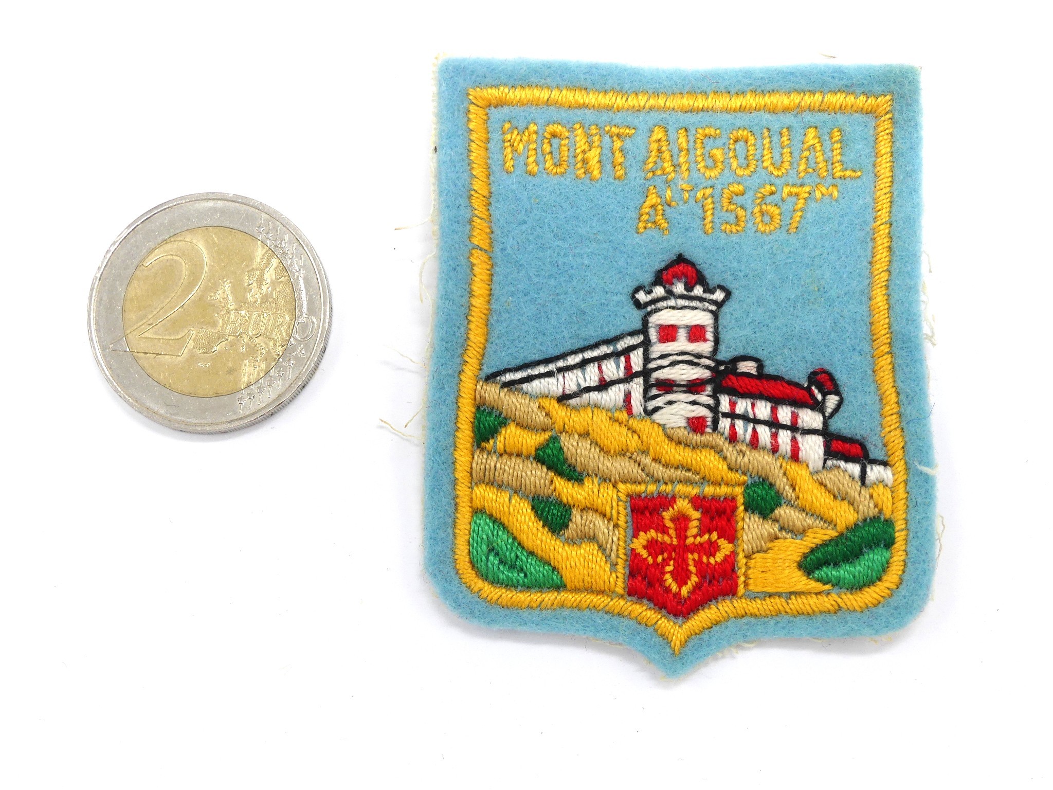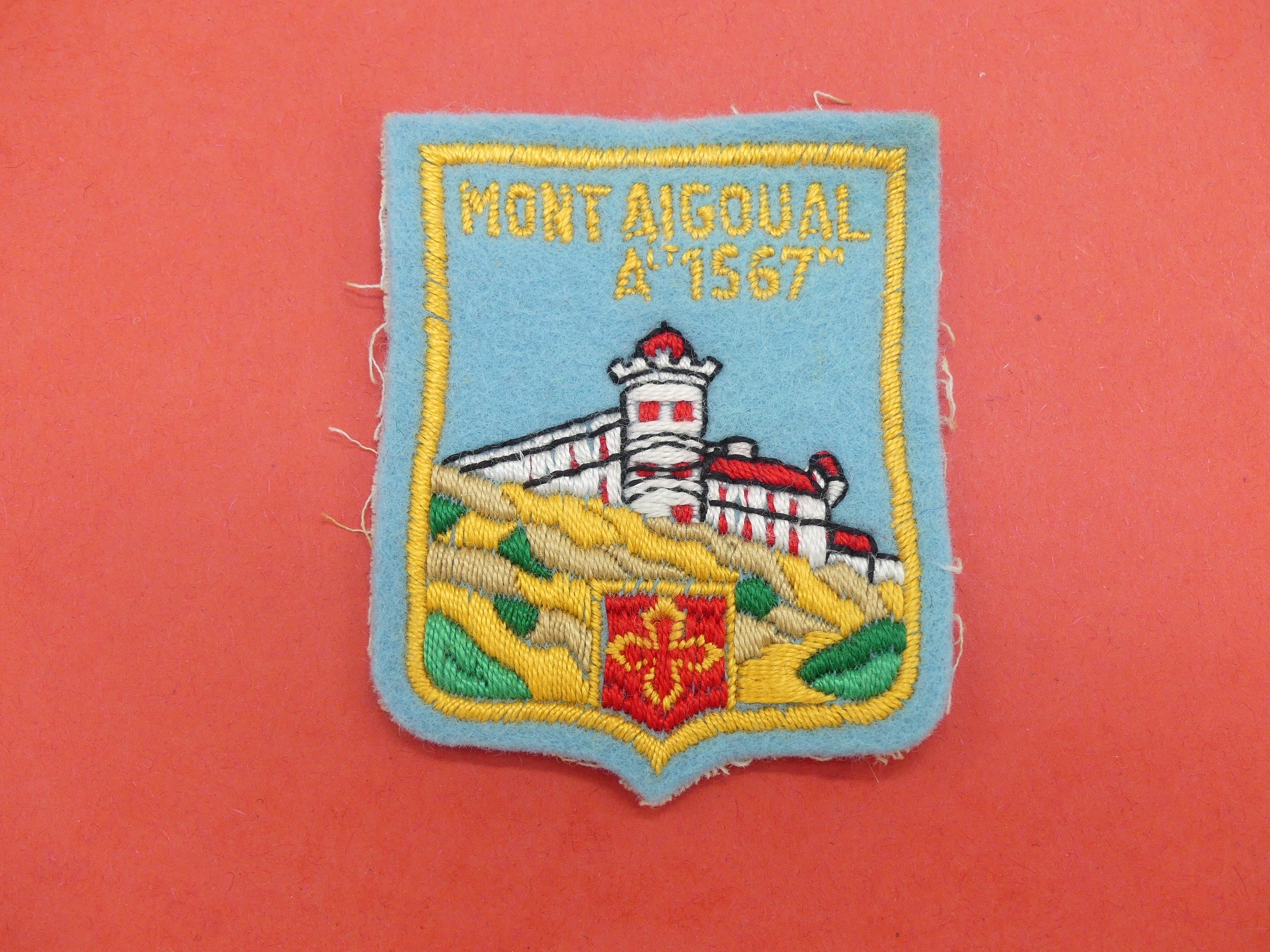 écusson ancien brodé ville Mont Aigoual en tissu feutrine à coudre .