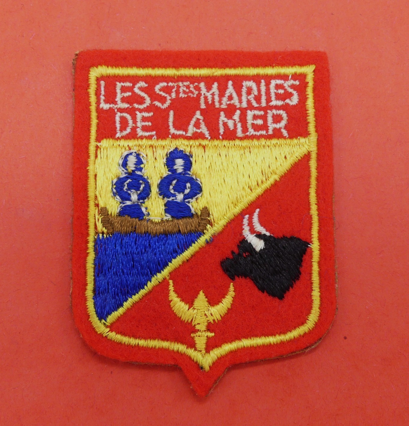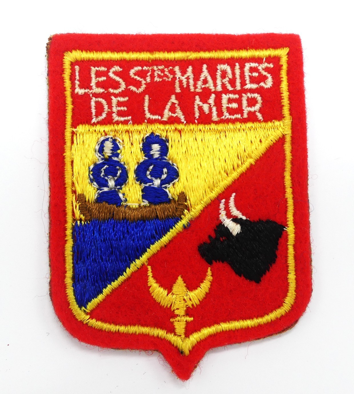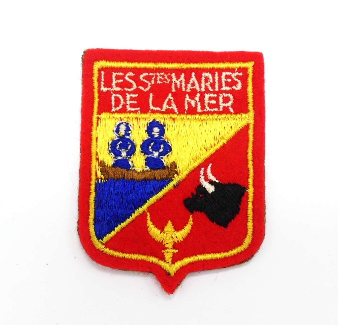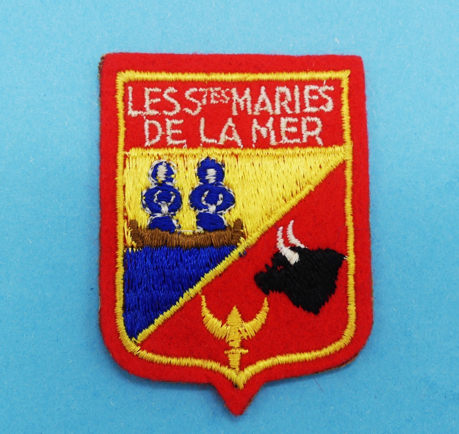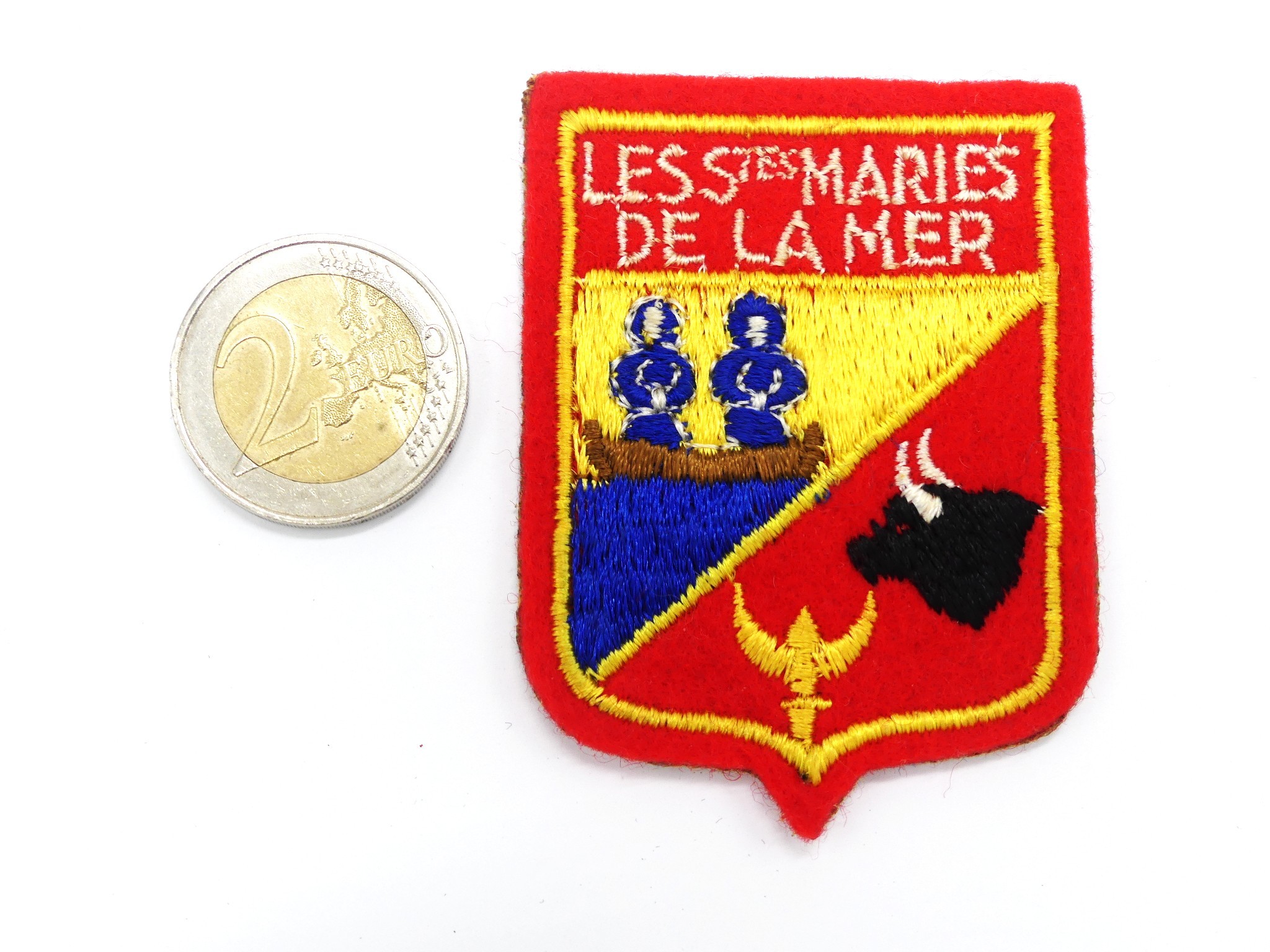 Blason ville Sainte Marie de la mer en tissu feutrine, très bon état sur le devant ,
