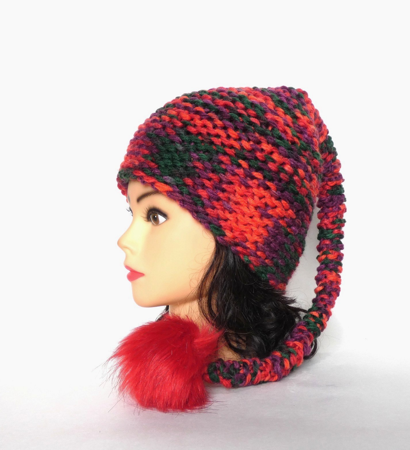 Bonnet lutin multiclore et chiné, doux , chaud et confortable,