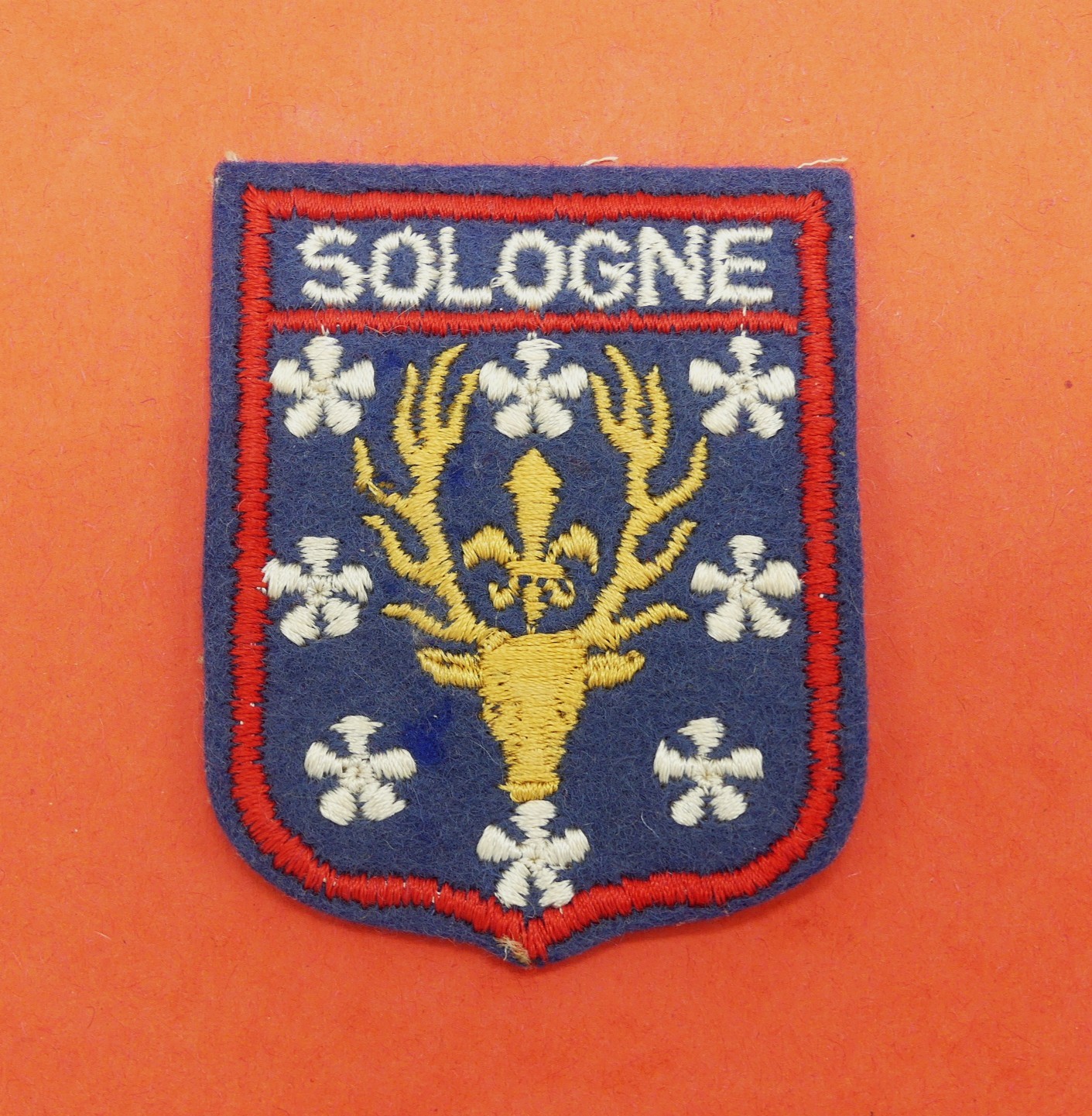 Ecusson ancien brodé ville SOLOGNE à coudre pour customisation .