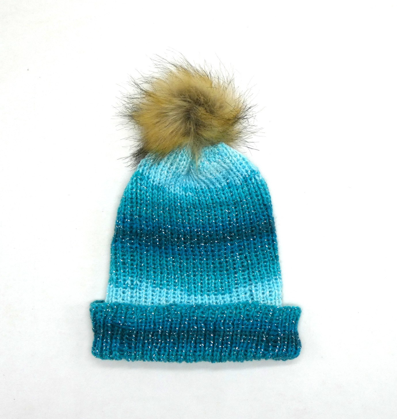 Ce bonnet se porte avec un revers , il est tricoté main sur 4 aiguilles ,