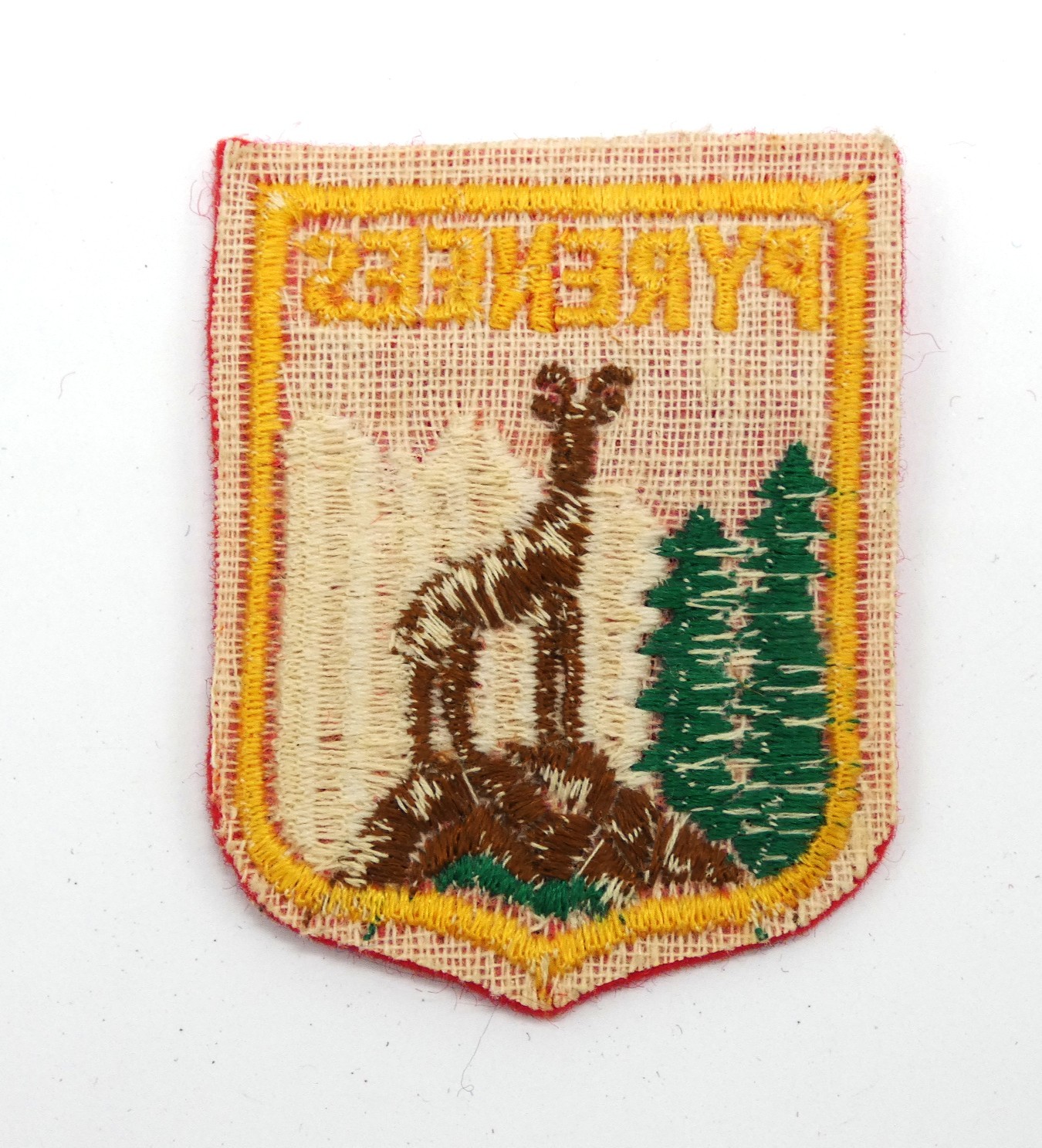 Motif écusson brodé motif chamois , sapin , montagne des Pyrénées,