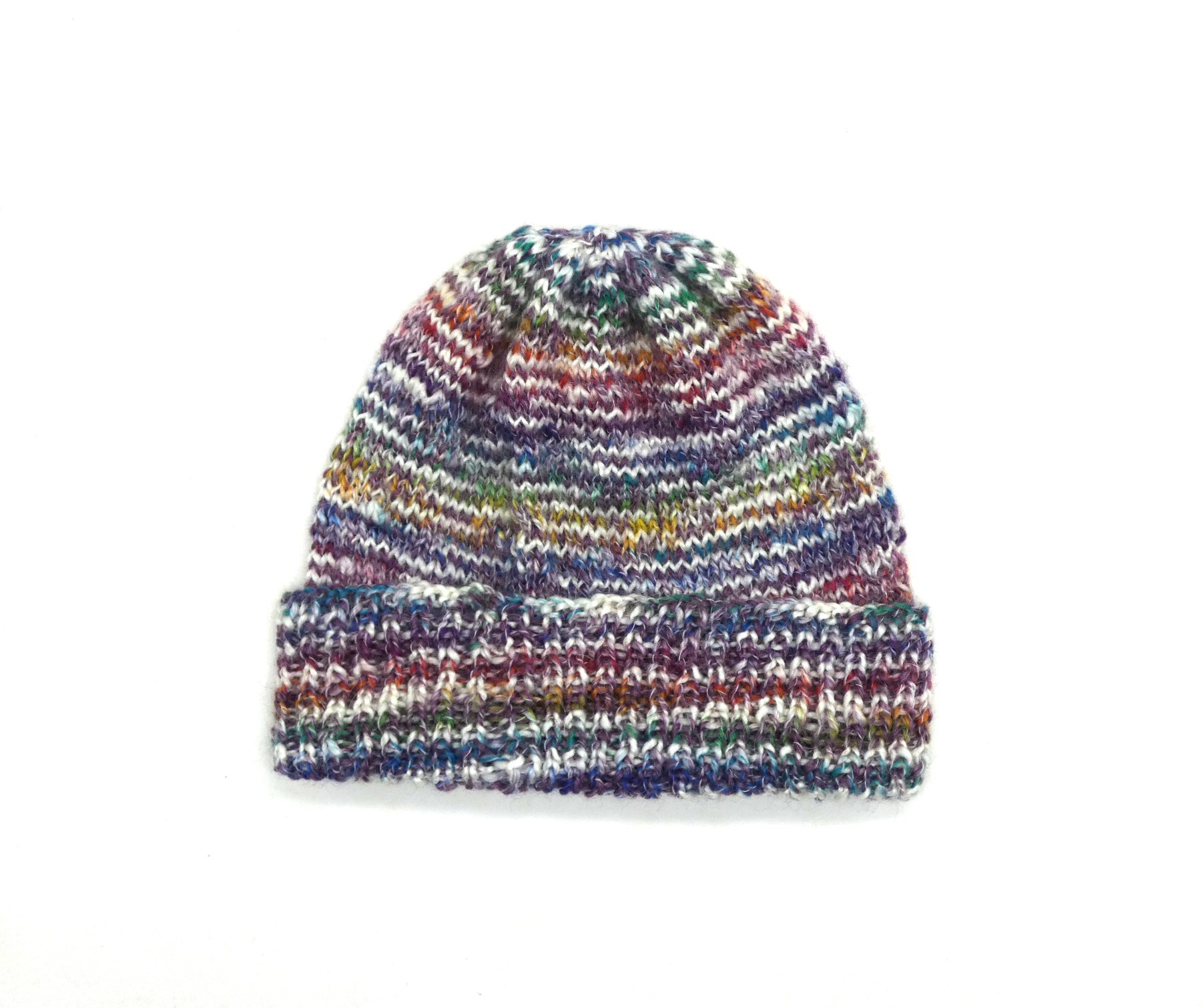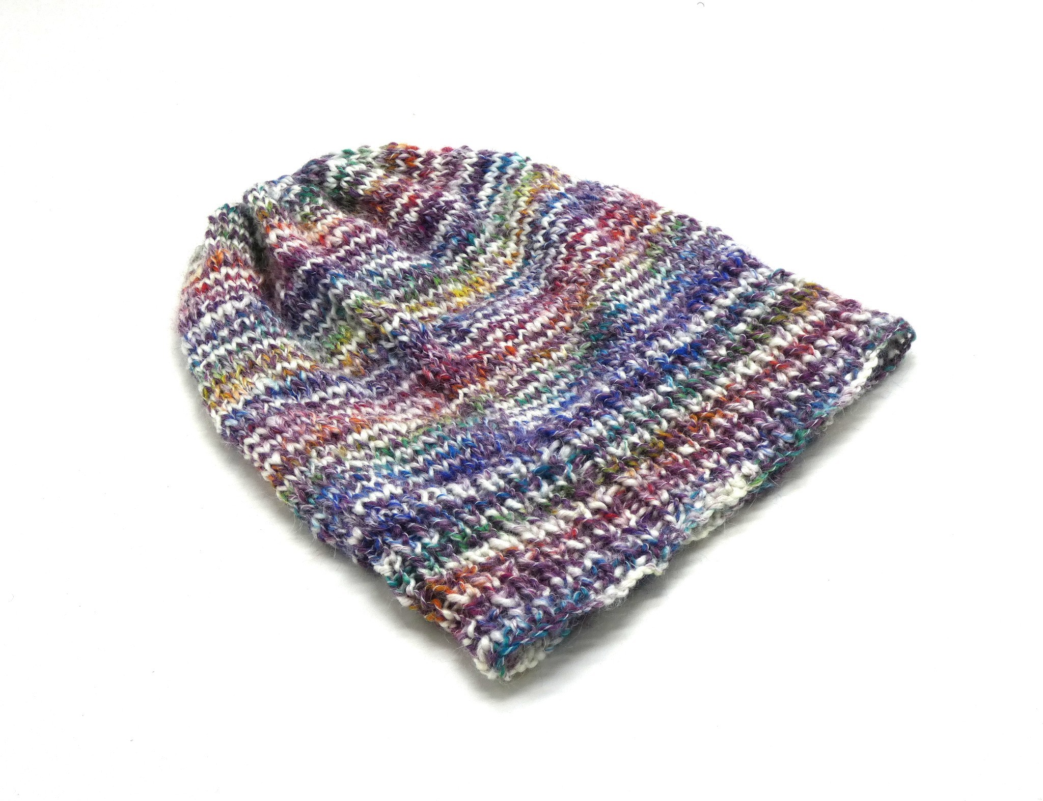 tricoté en mailles cotes puis en mailles jersy qui s 'adaptera facilement à la tête ,