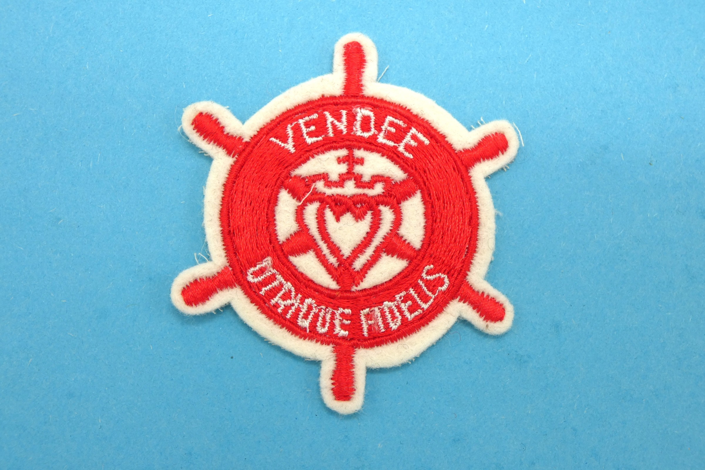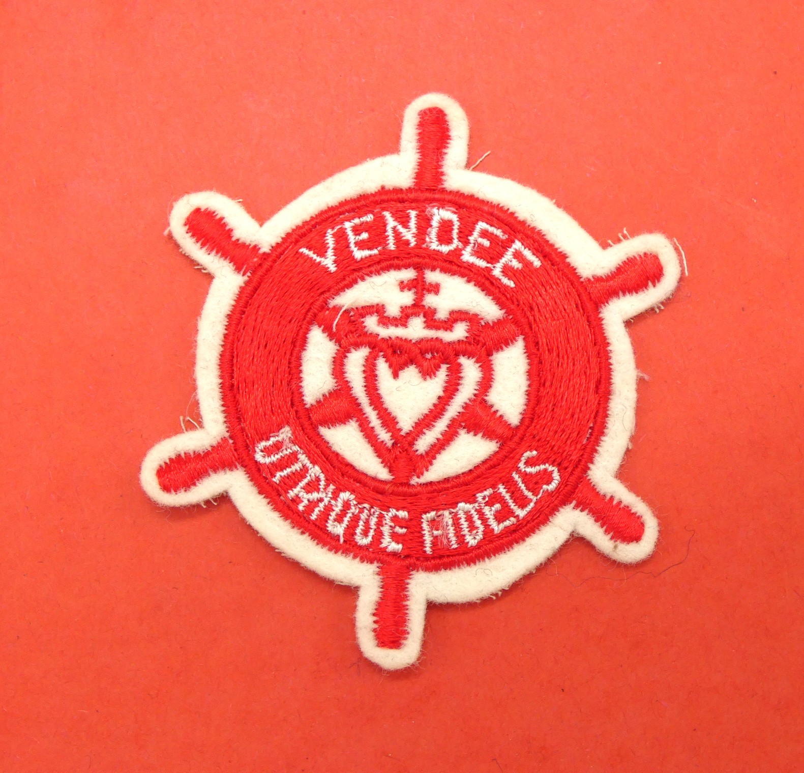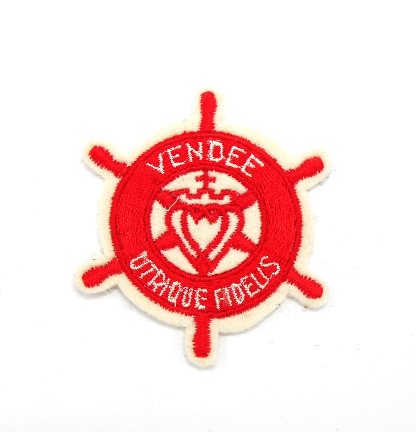 Ecusson brodé ville Vendée en forme de gouvernail à coudre.