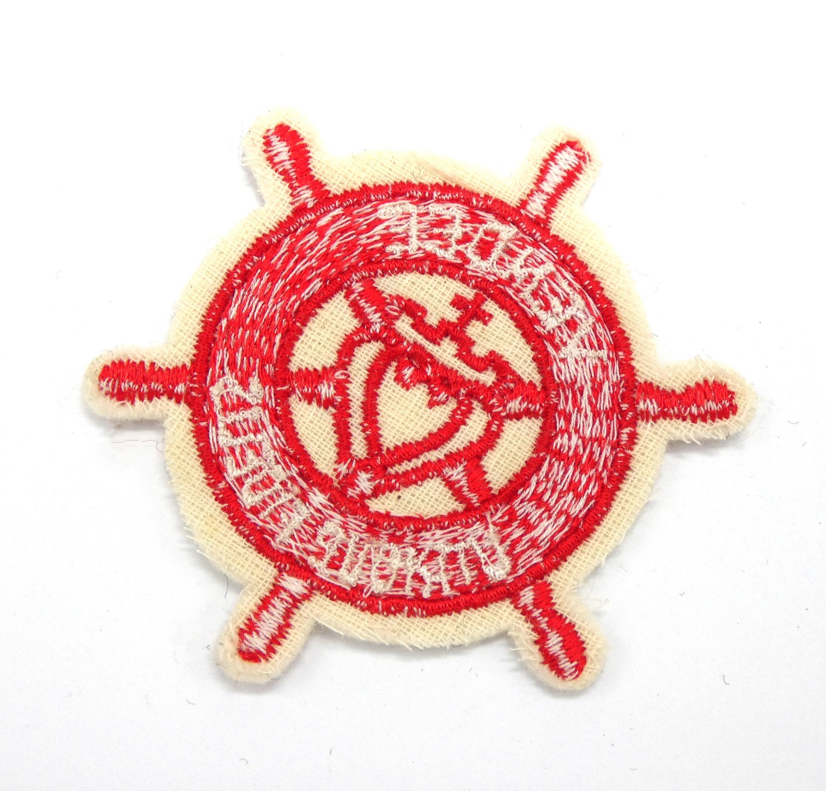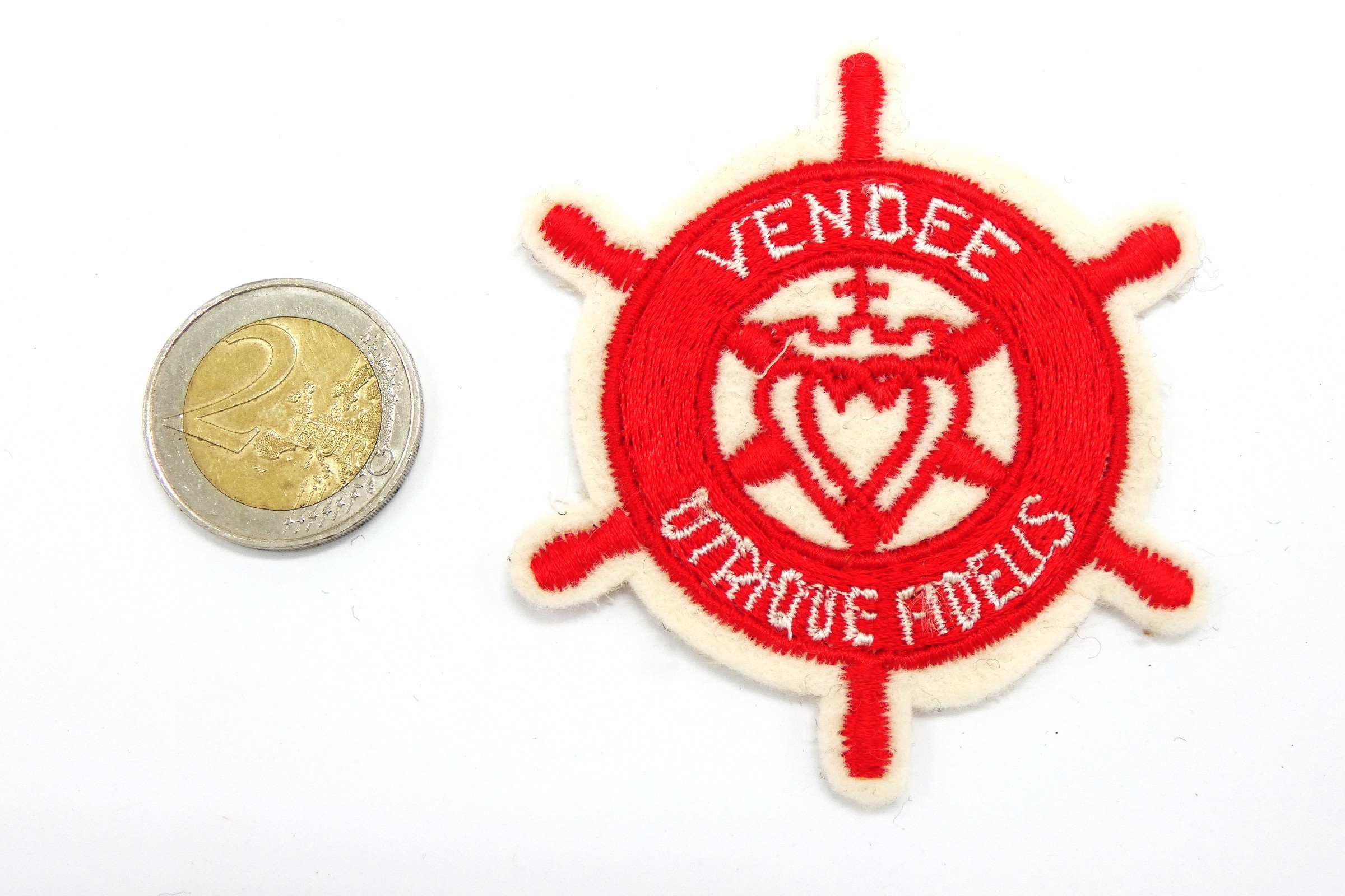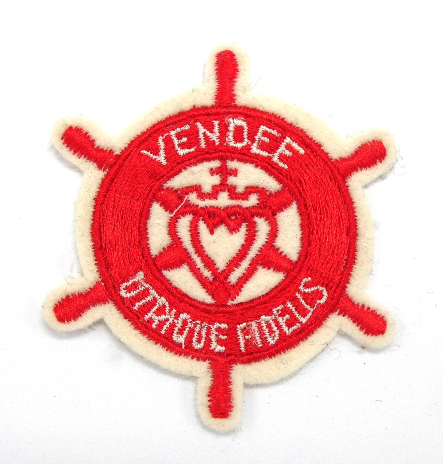 Ecusson brodé ville Vendée en forme de gouvernail à coudre.