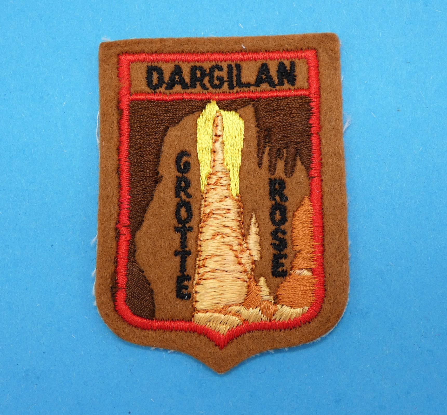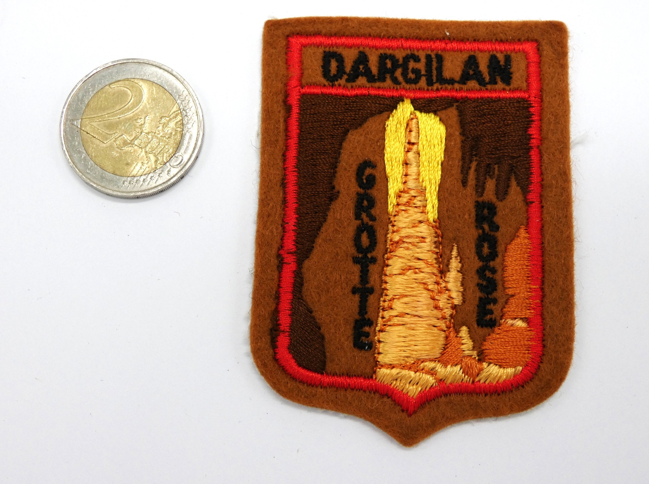 Ecusson brodé ville Dargilan grotte rose à coudre pour customisation .