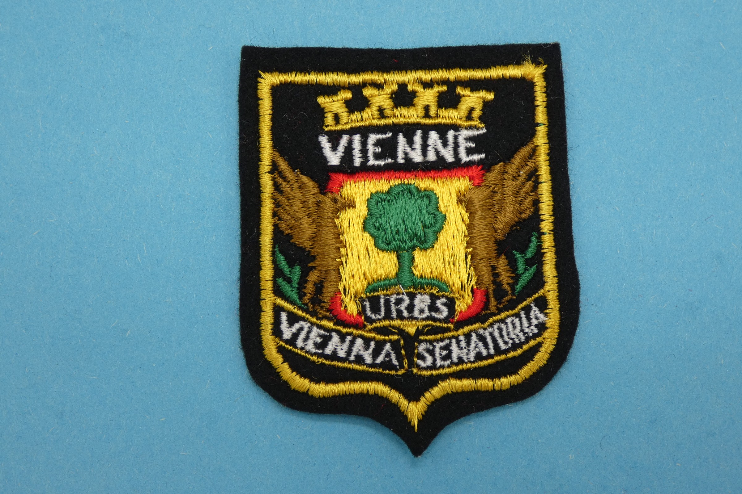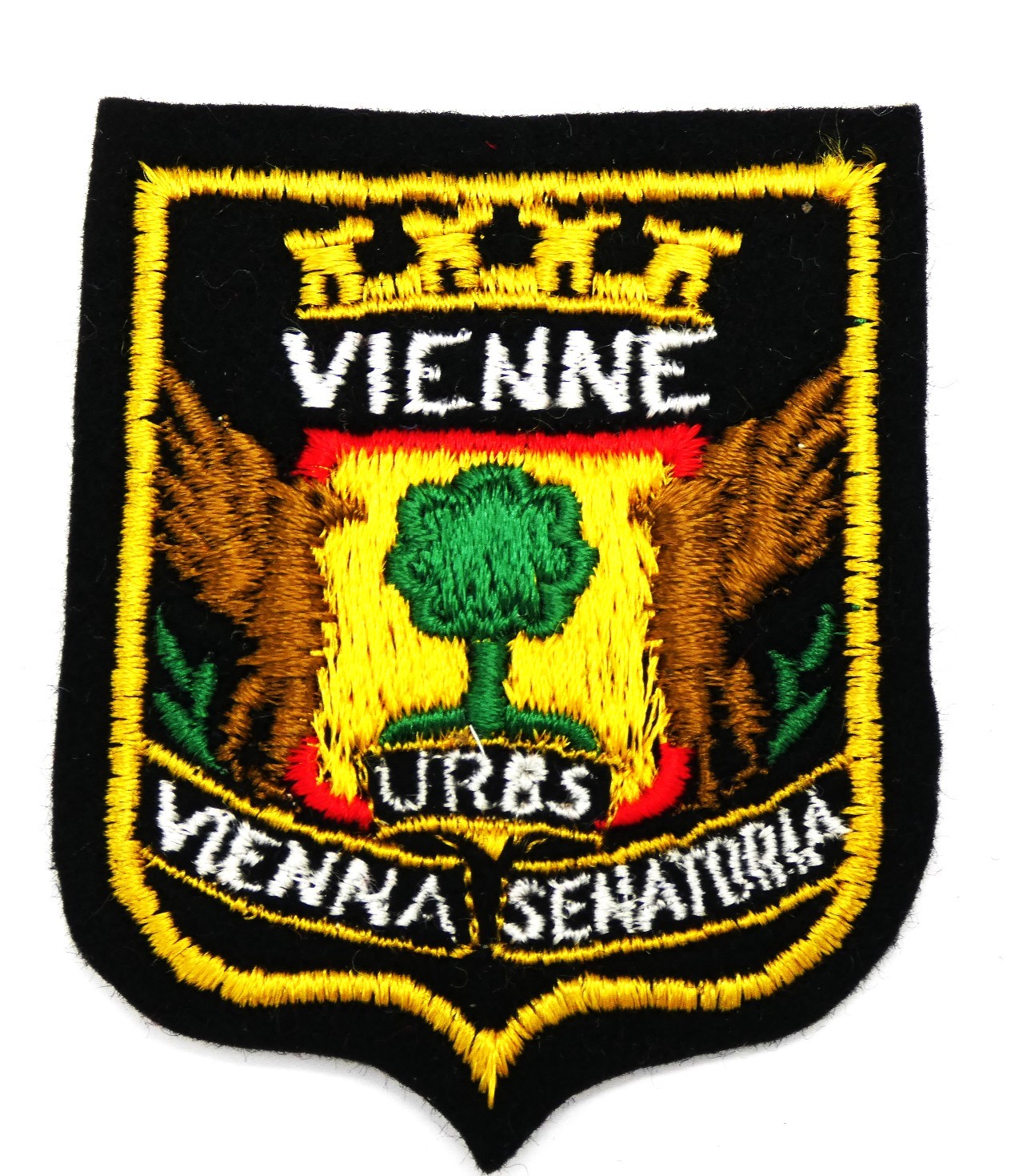 Ecusson ancien brodé ville VIENNE à coudre pour customisation .