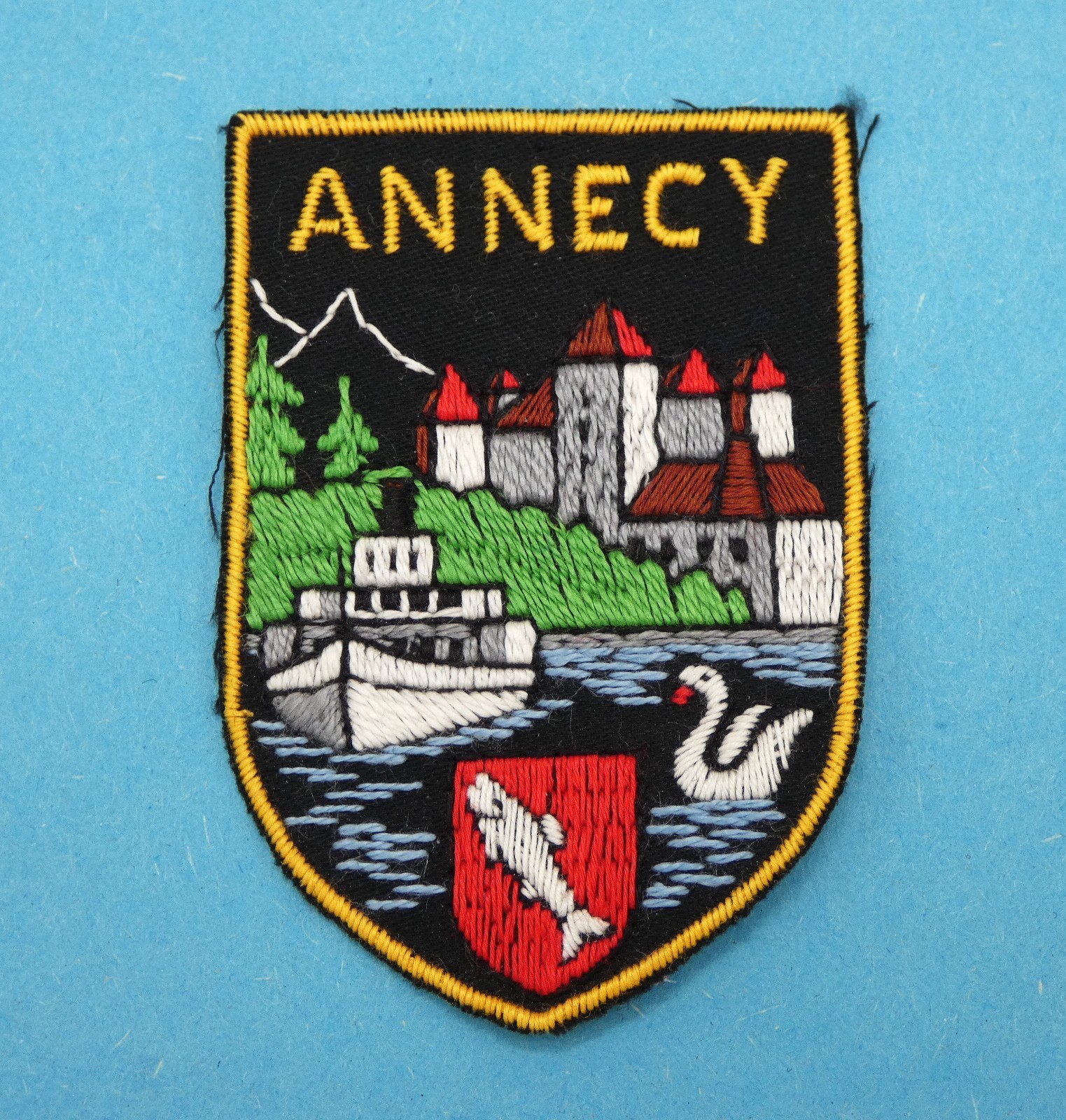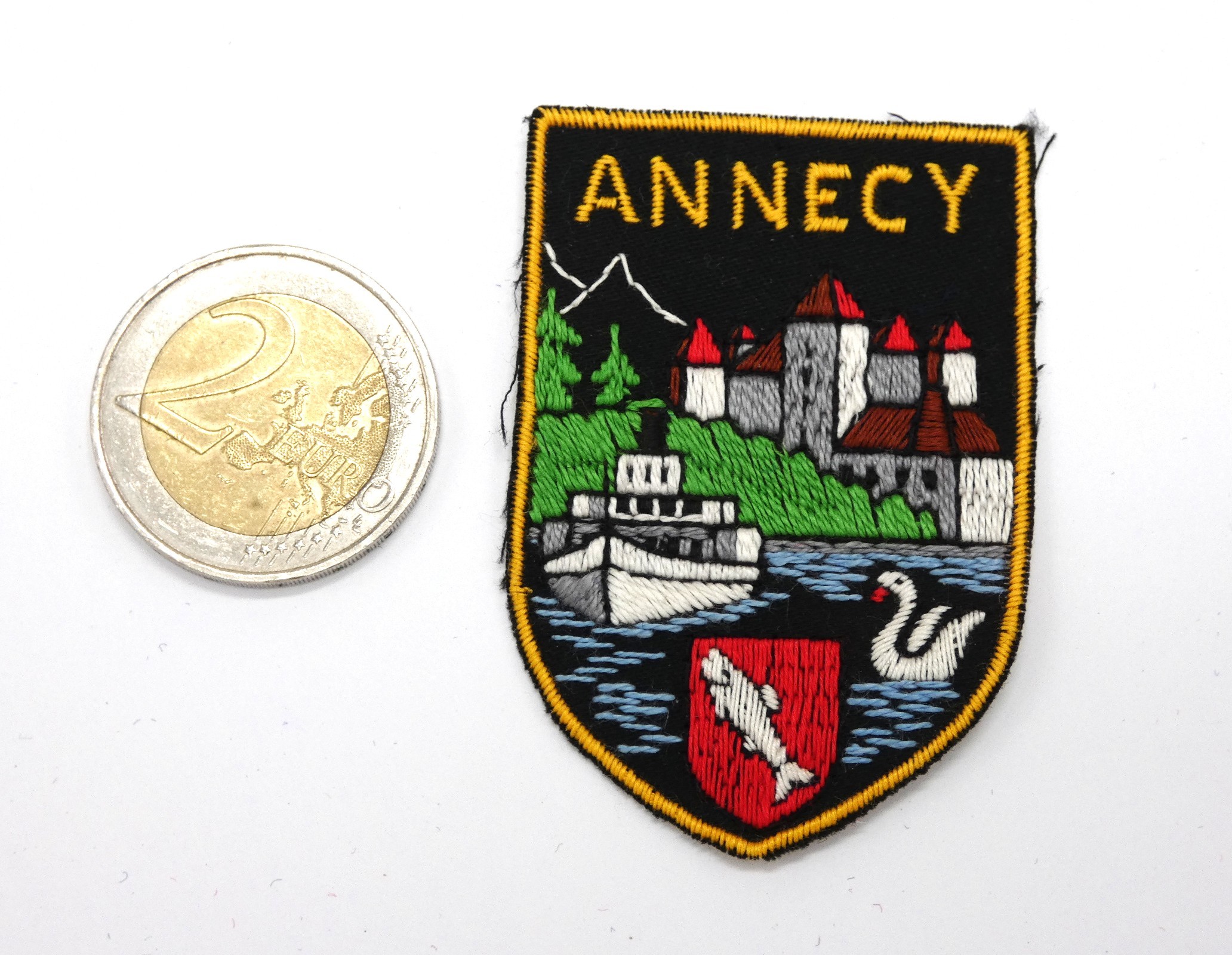 Ecusson tissu brodé ville ANNECY à coudre pour customisation .