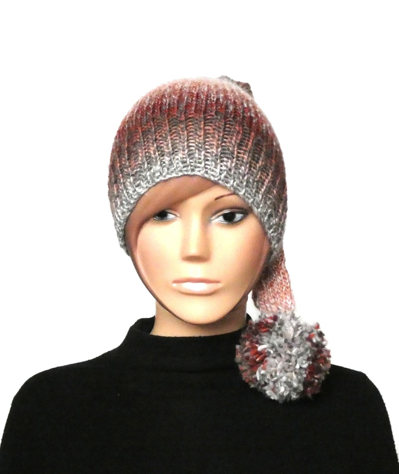 Bonnet lutin pour femme tricoté en maille cotes ,