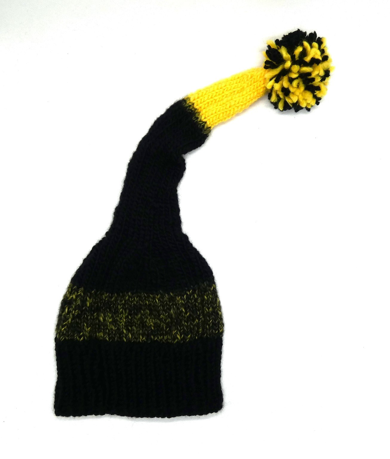 Bonnet long lutin , bonnet d 'Elfe , tricoté main en rond sur 4 aiguilles,
