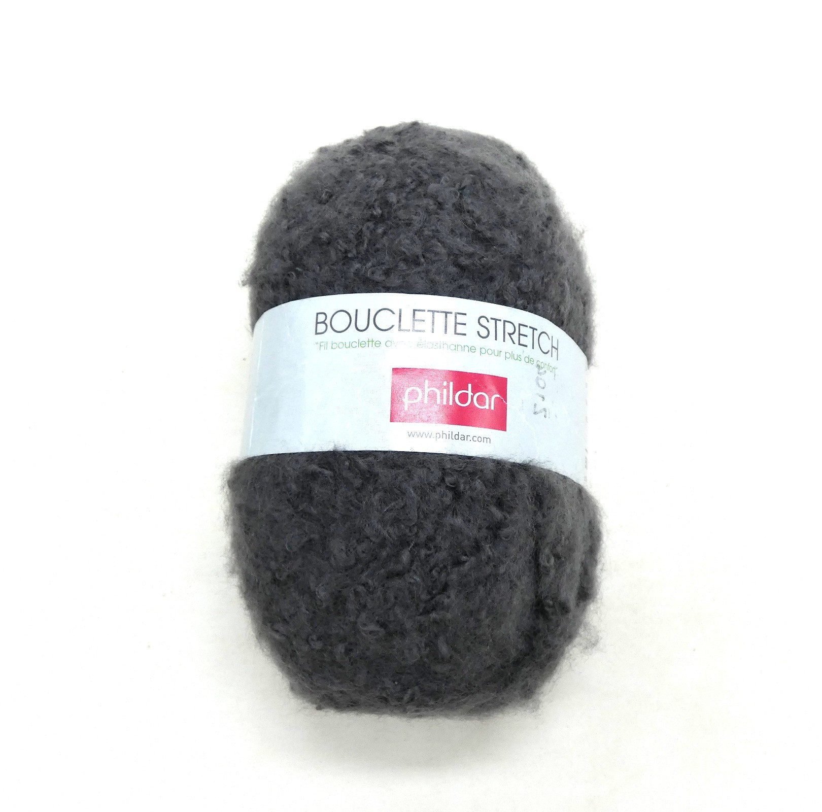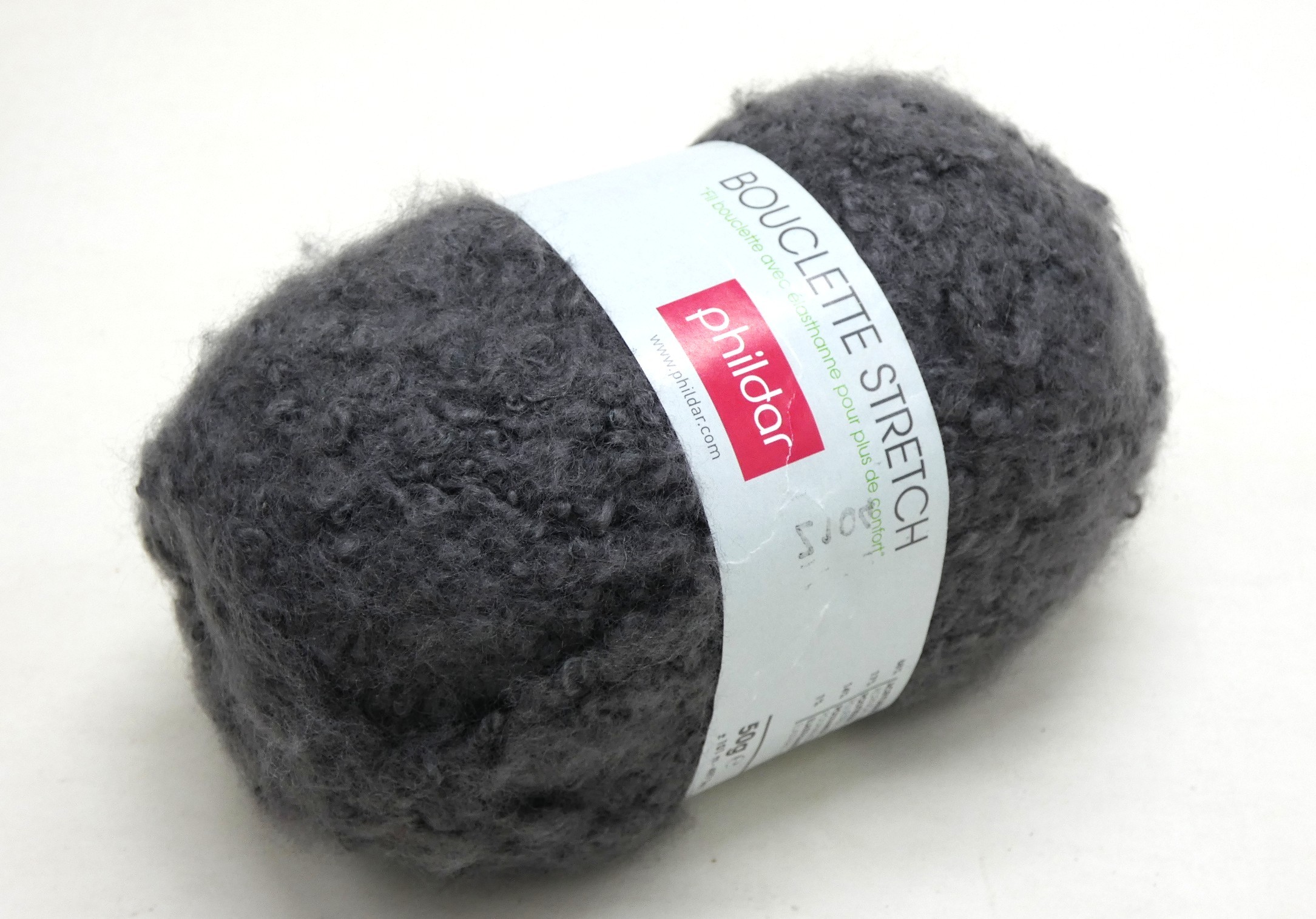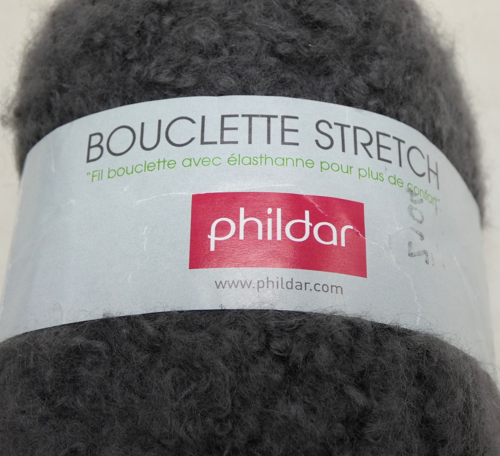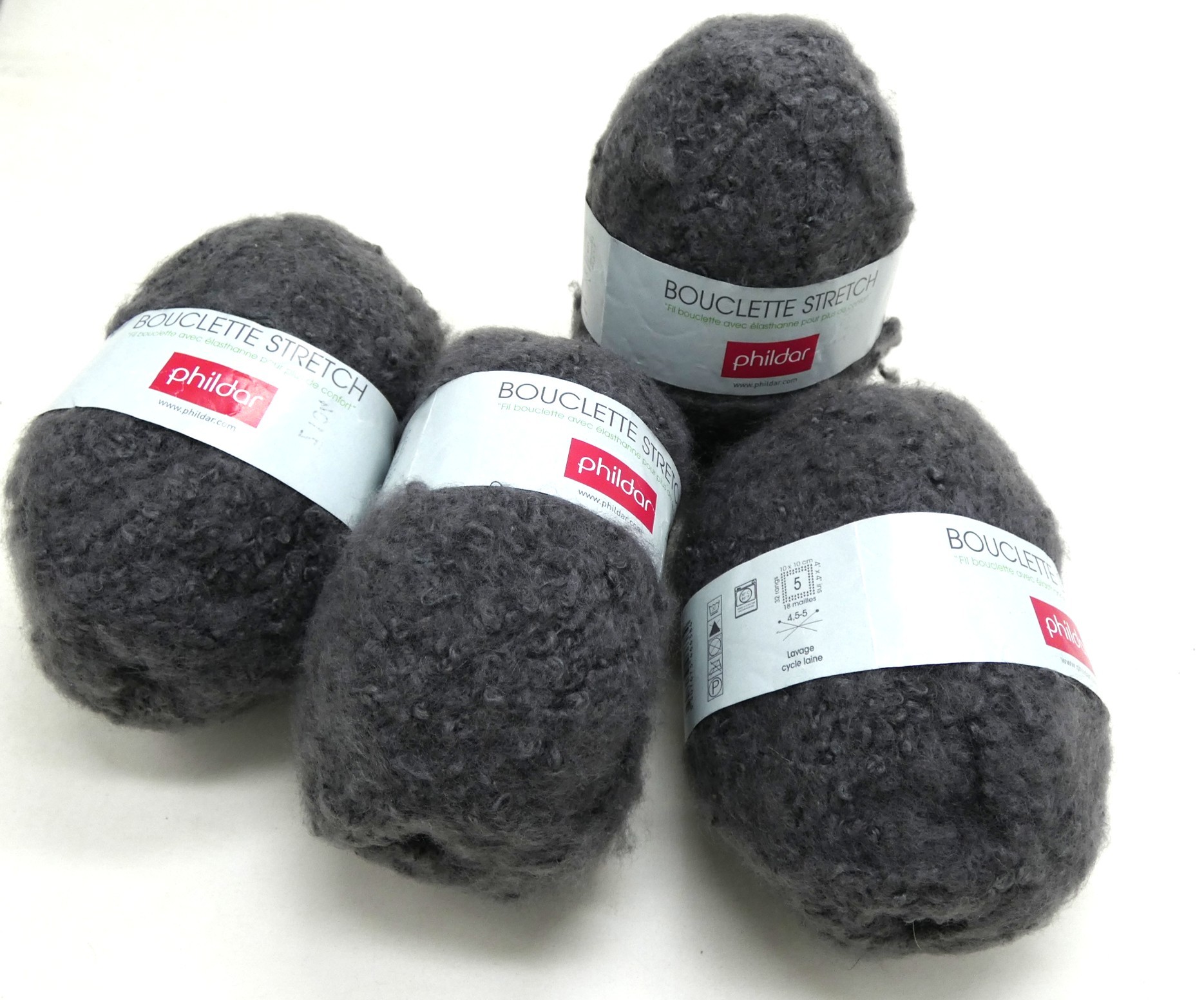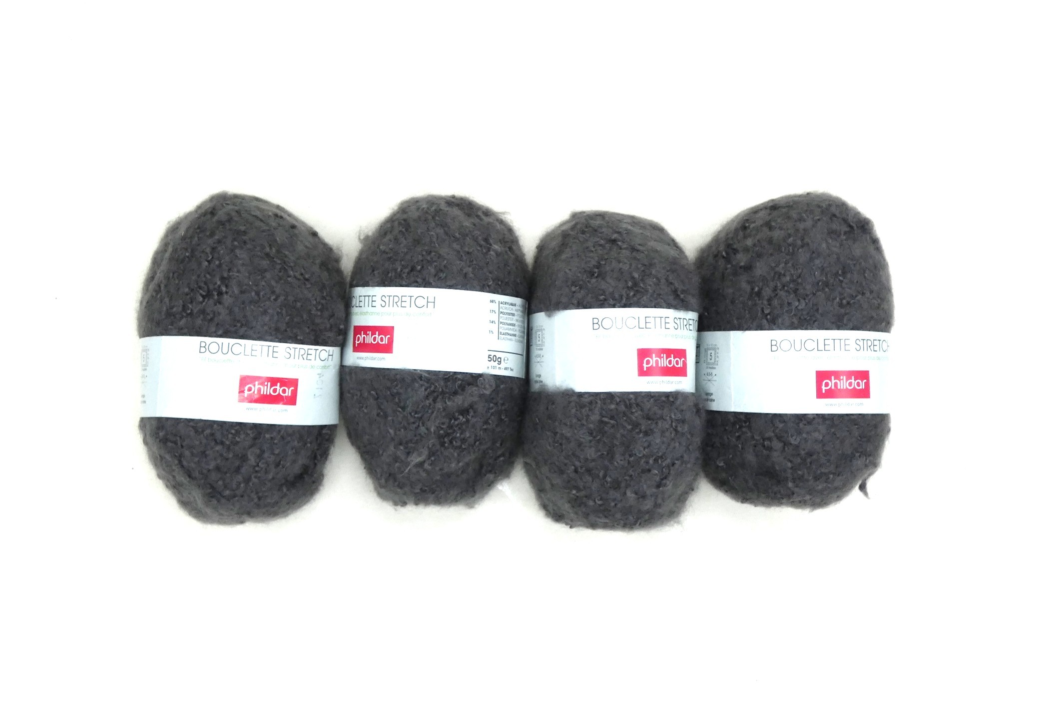 Lot de 4 pelotes fil à tricoter de marque Phildar bouclette Stretch coloris fusain.
