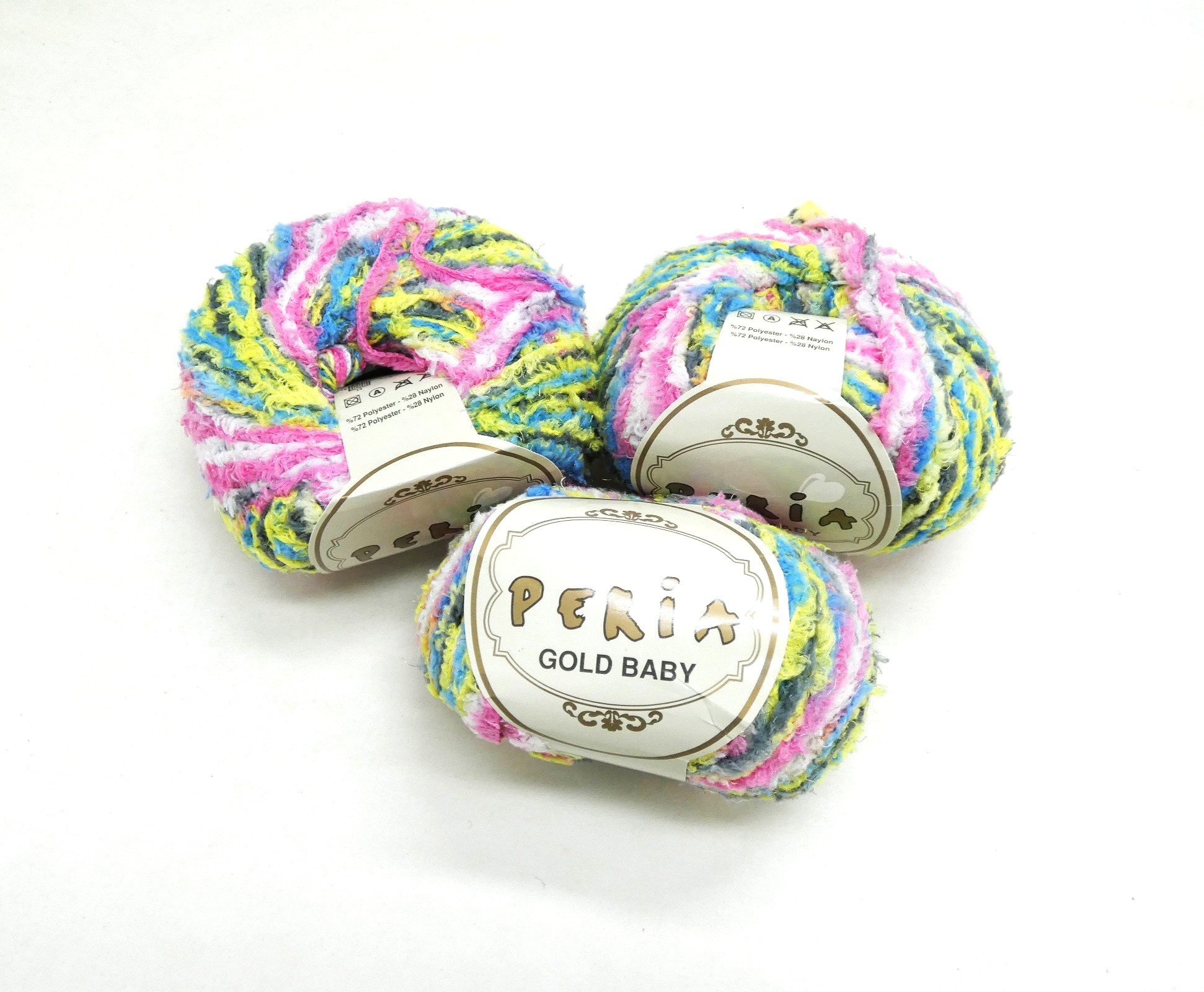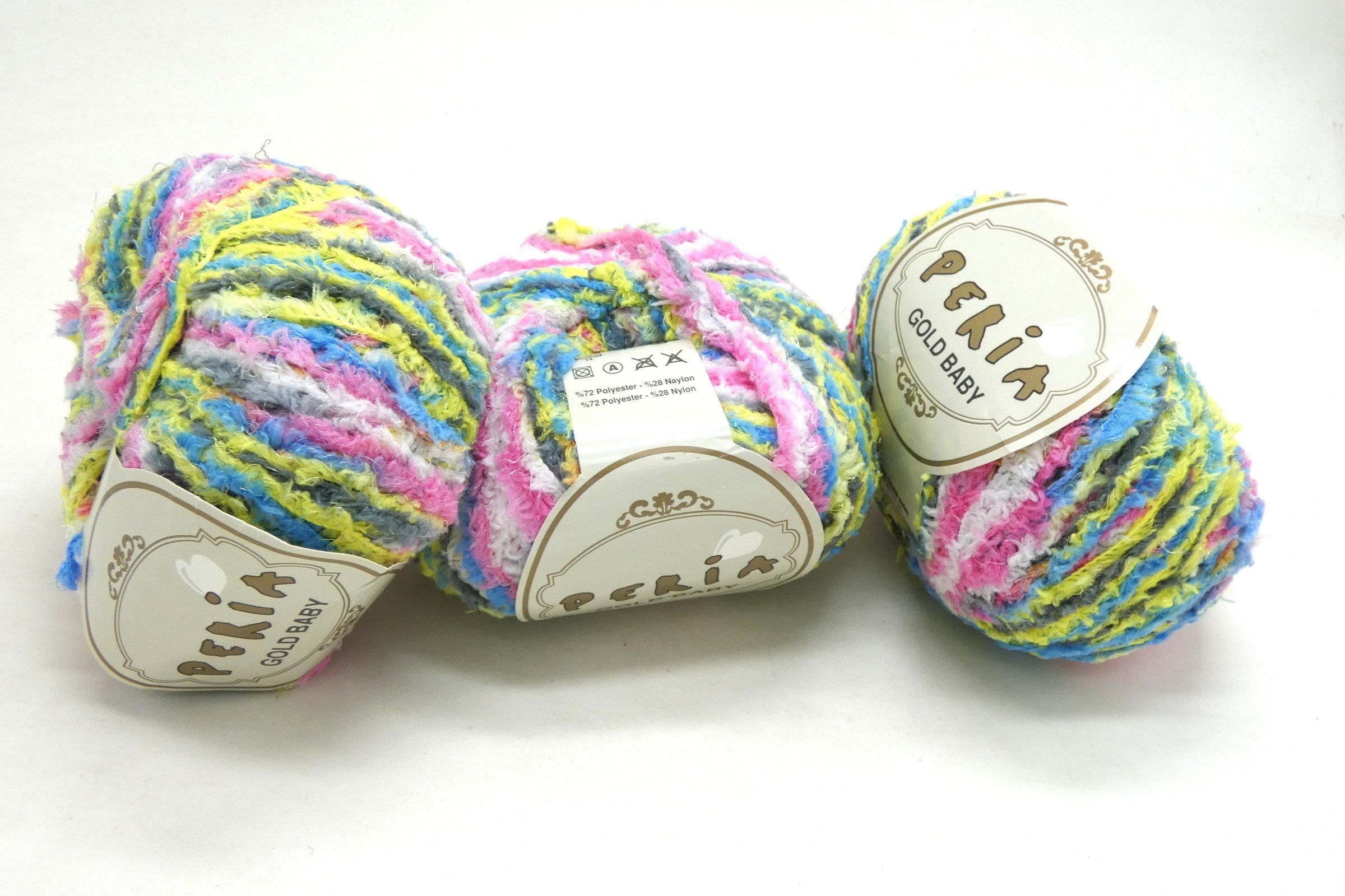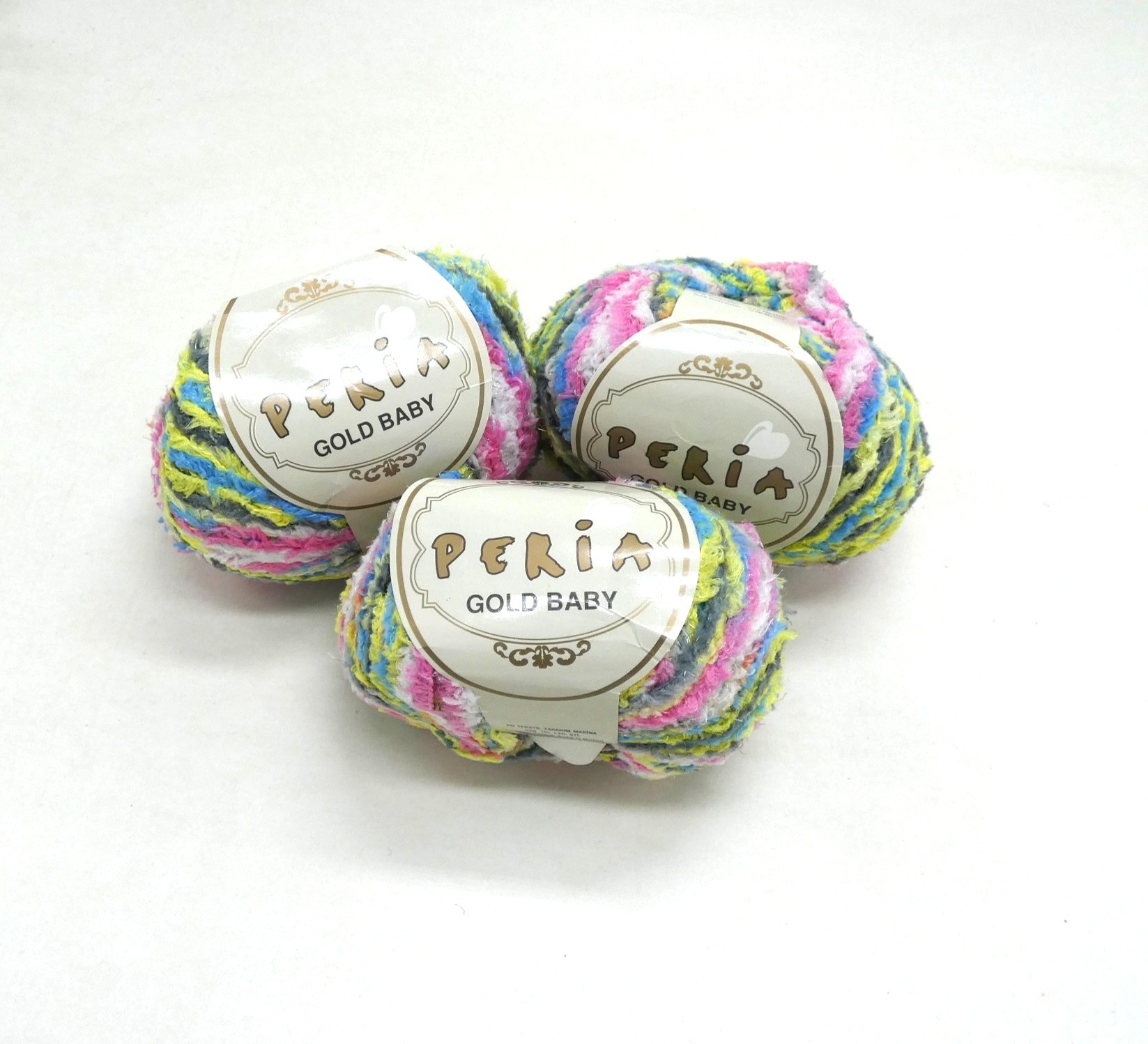 Lot de 3 pelotes de fil à tricoter de marque PERIA Gold Baby multicolore .