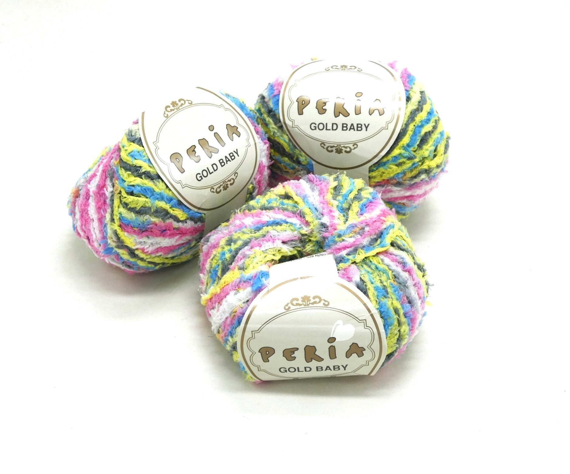 Lot de 3 X 50 pelotes de fil à tricoter Baby Gold Peria multicolore .