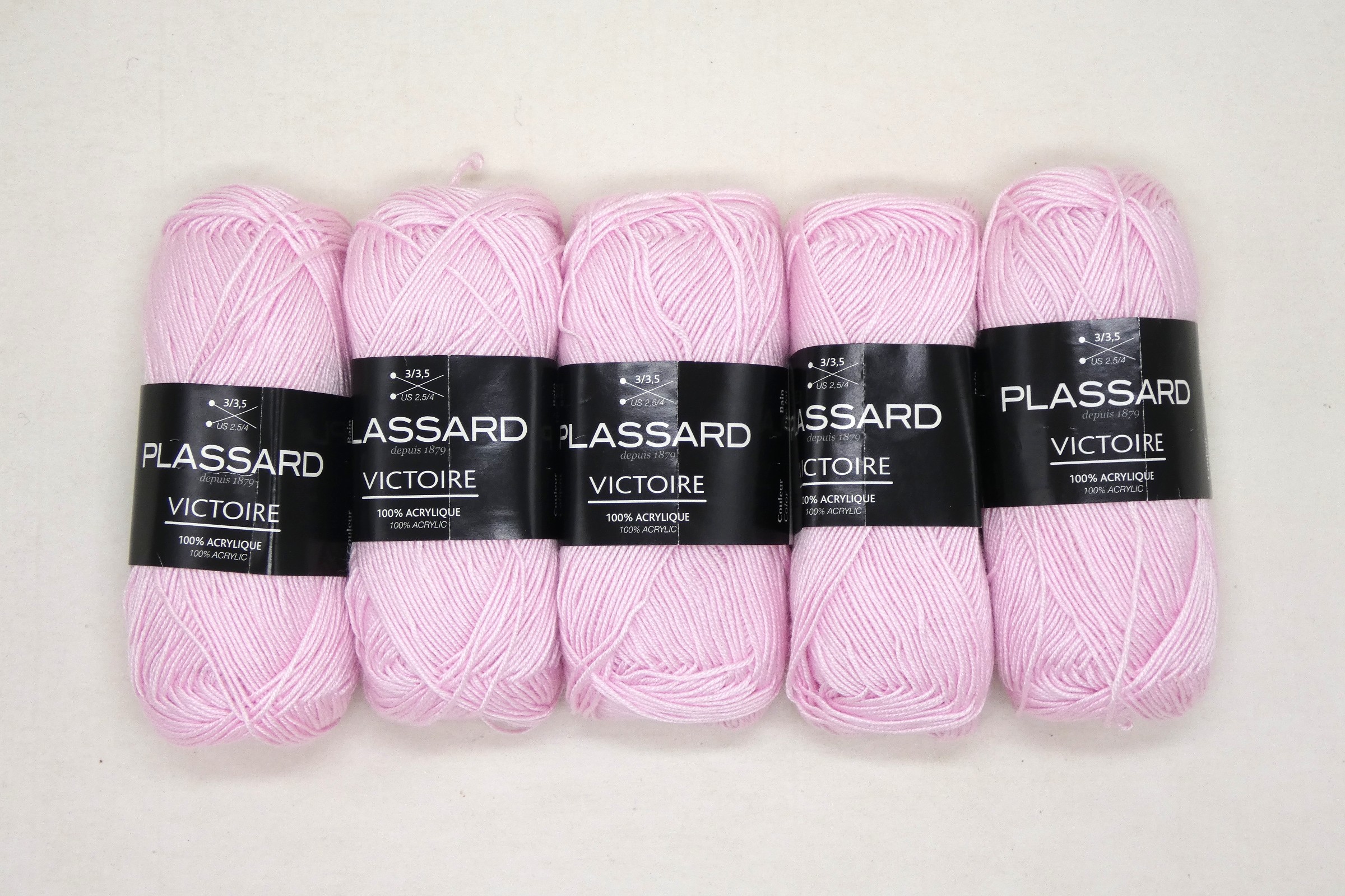 Lot de 5 pelotes de fil à tricoter de marque Plassard Victoire 03 rose clair.