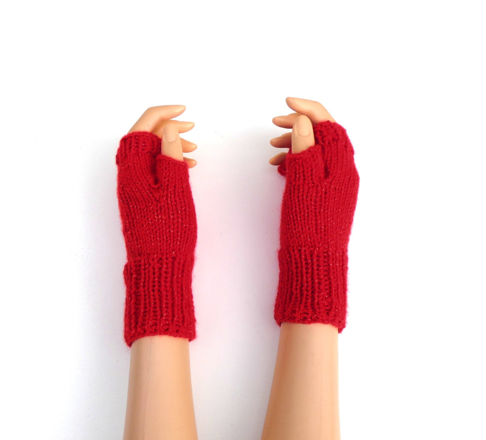 Mitaines femme tricotées main en rond sur 4 aiguilles ,