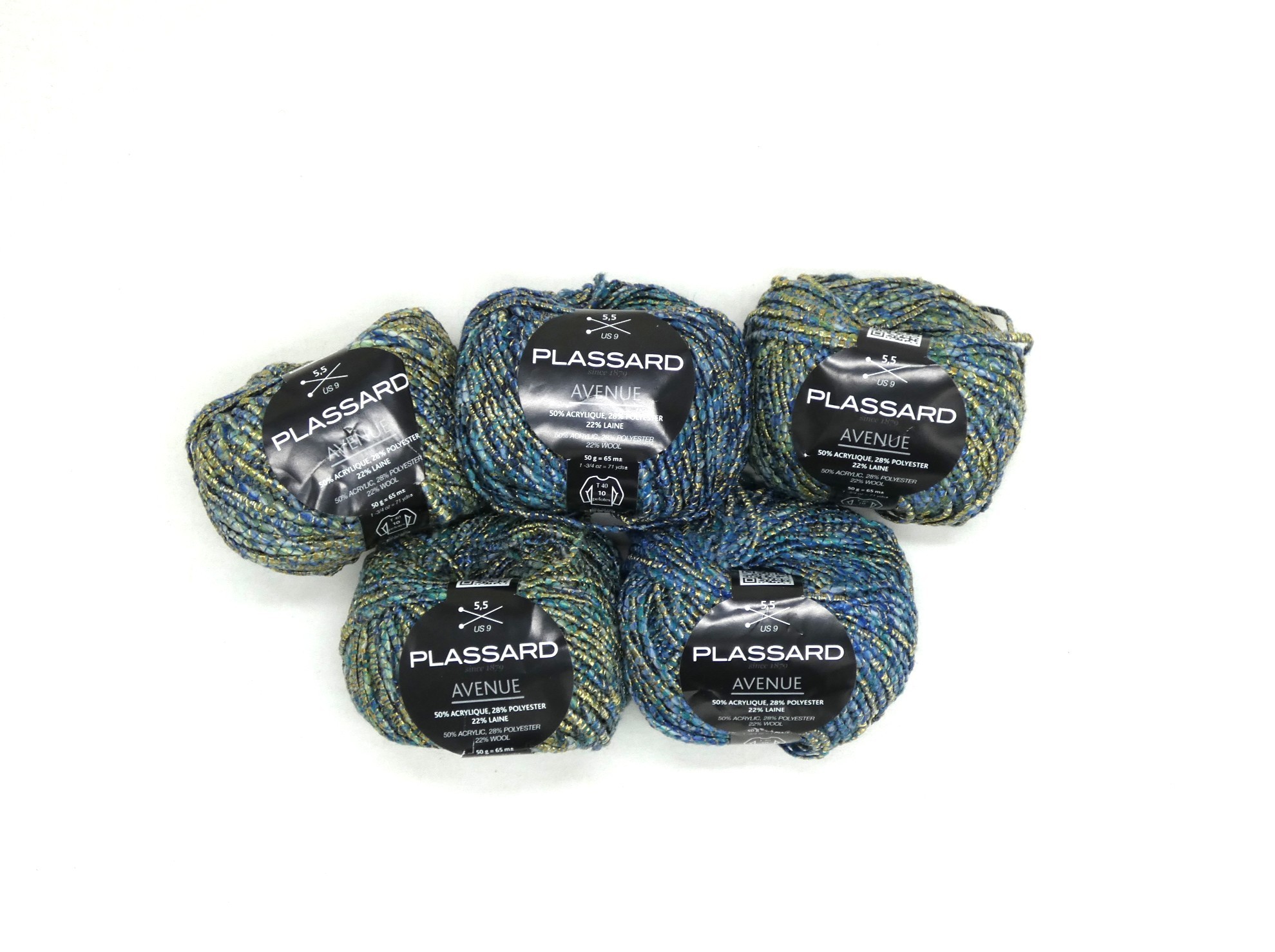 Lot de 5 pelotes de fil laine à tricoter de marque Plassard Avenue.