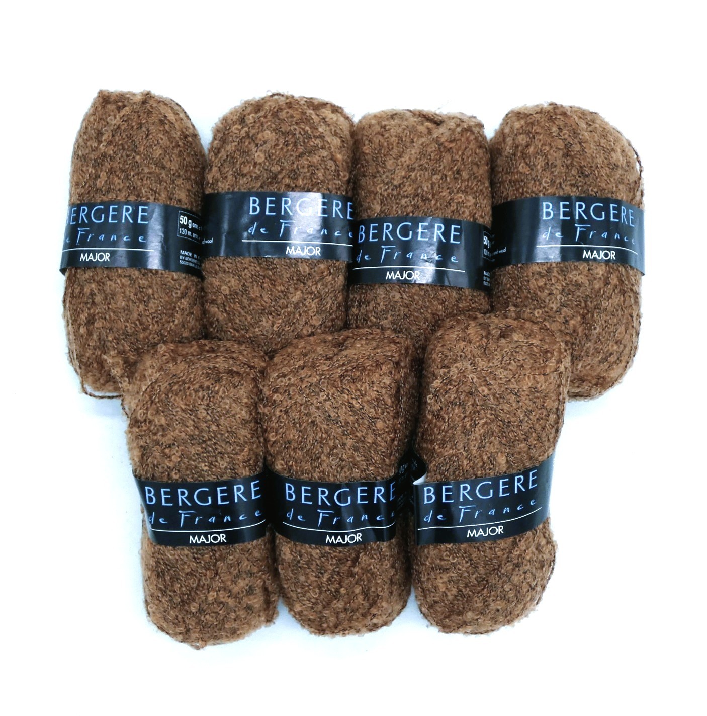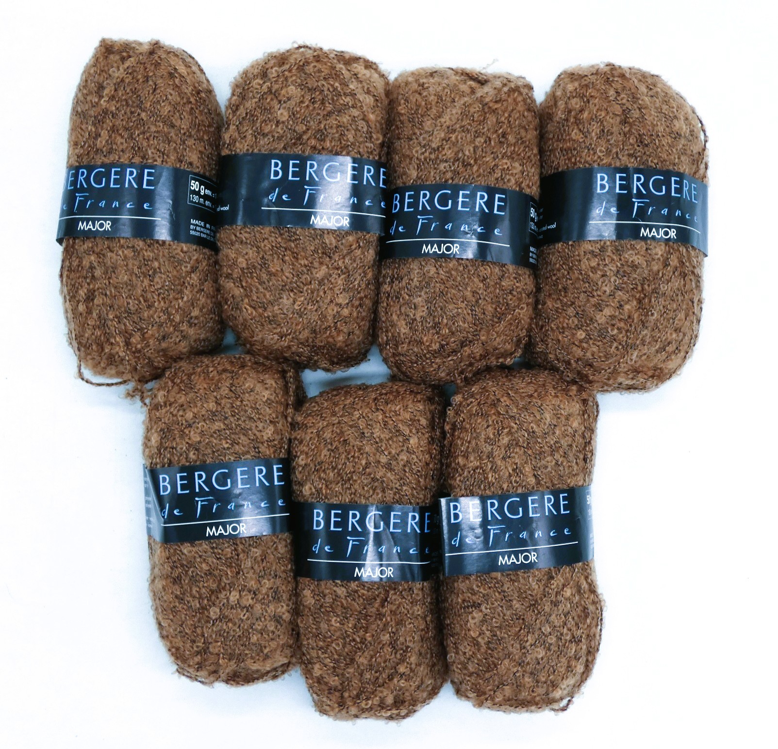 Lot 7 pelotes de laine Bergère de France Major coloris marron ,