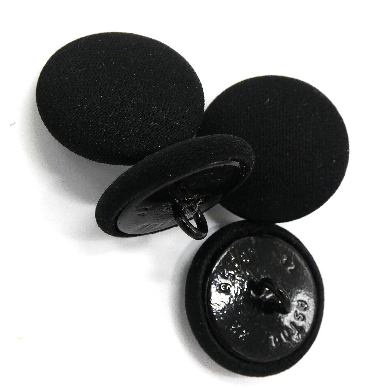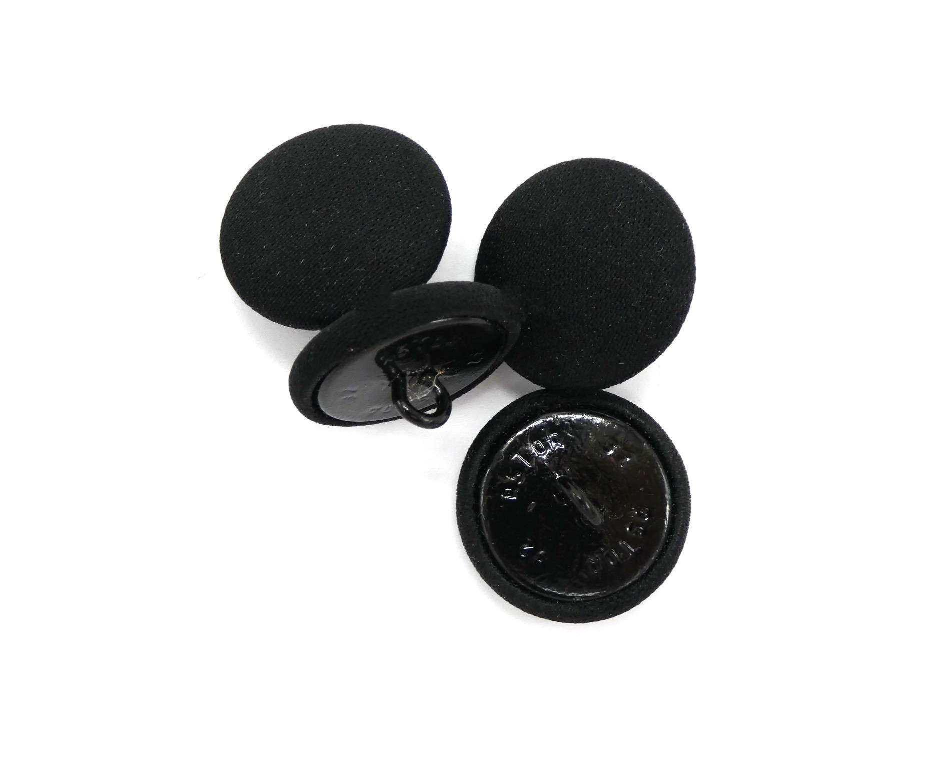 Boutons tige métal avec dessus en tissu noirs ,