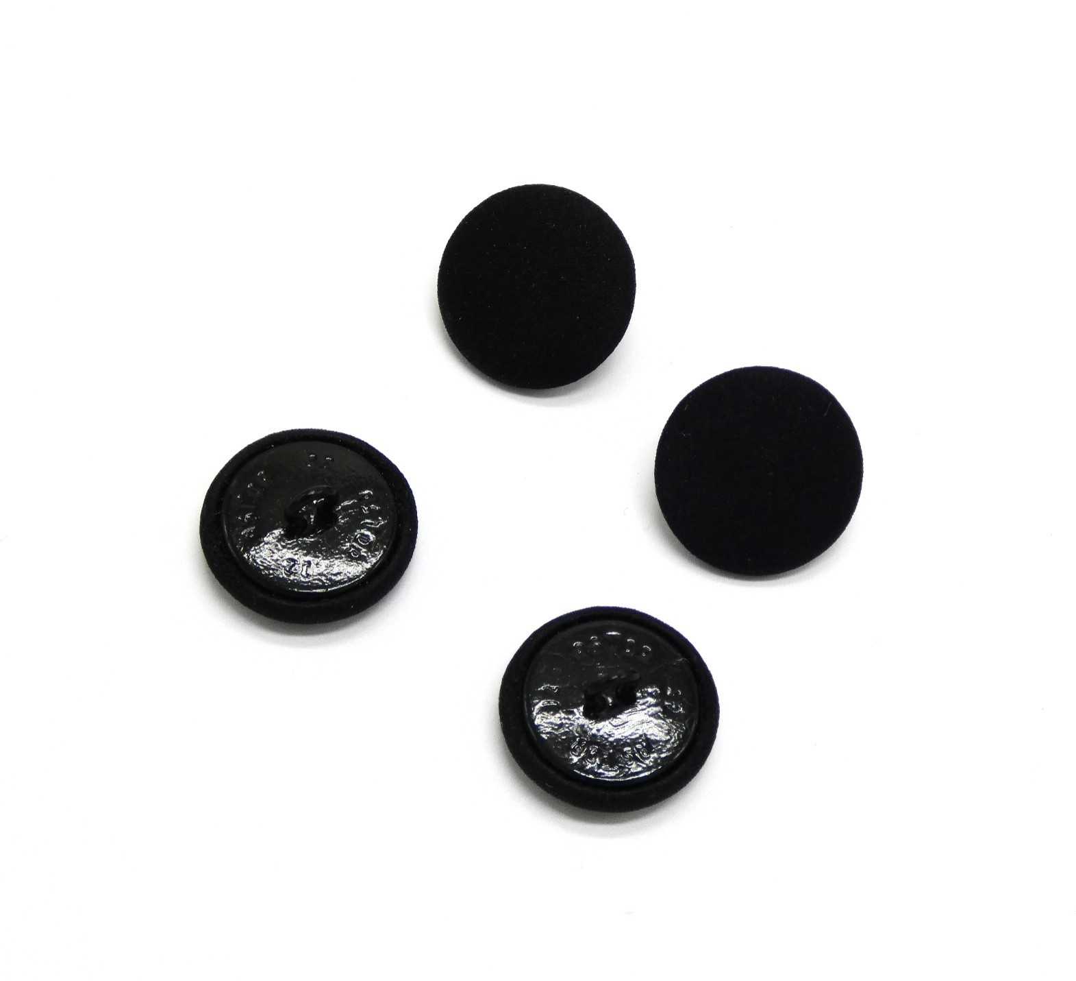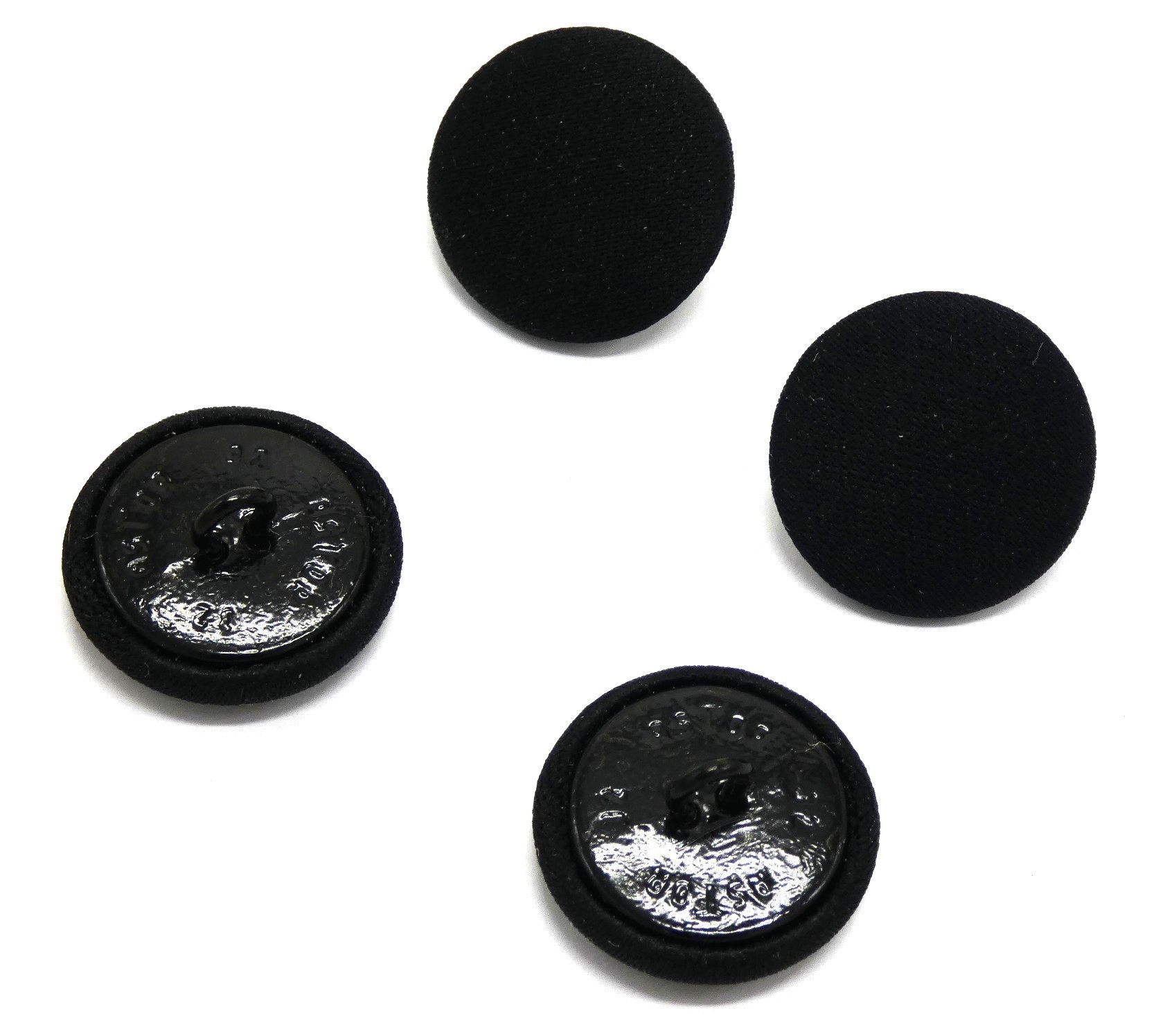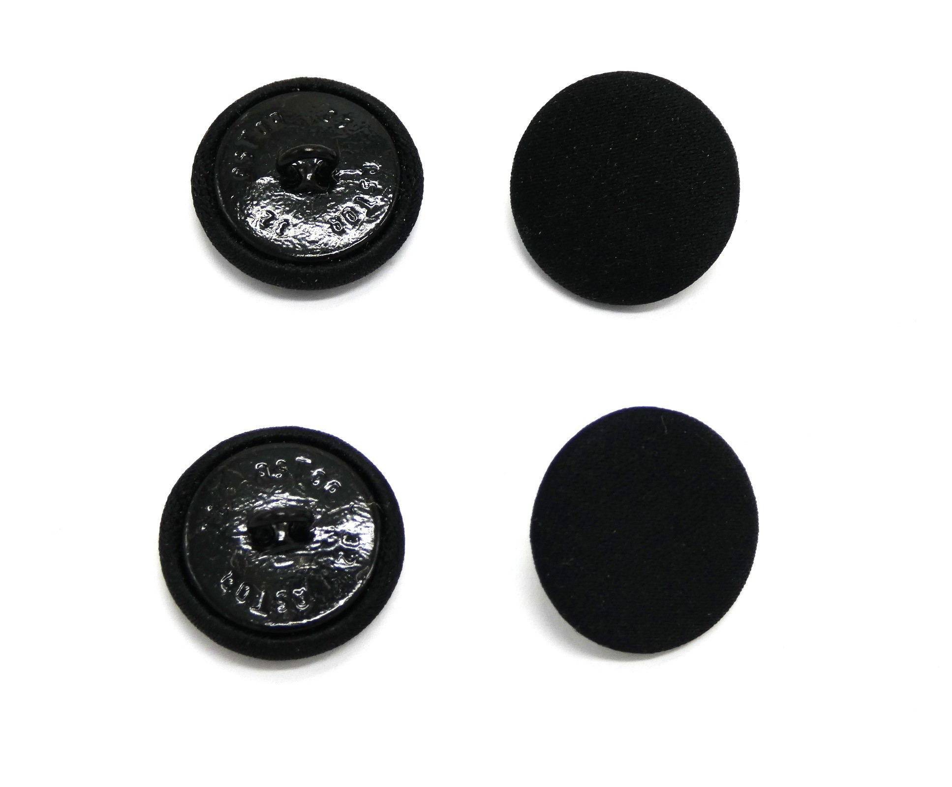 Lot 4 boutons noirs tissu et métal diamètre 20 mm pour travaux couture .