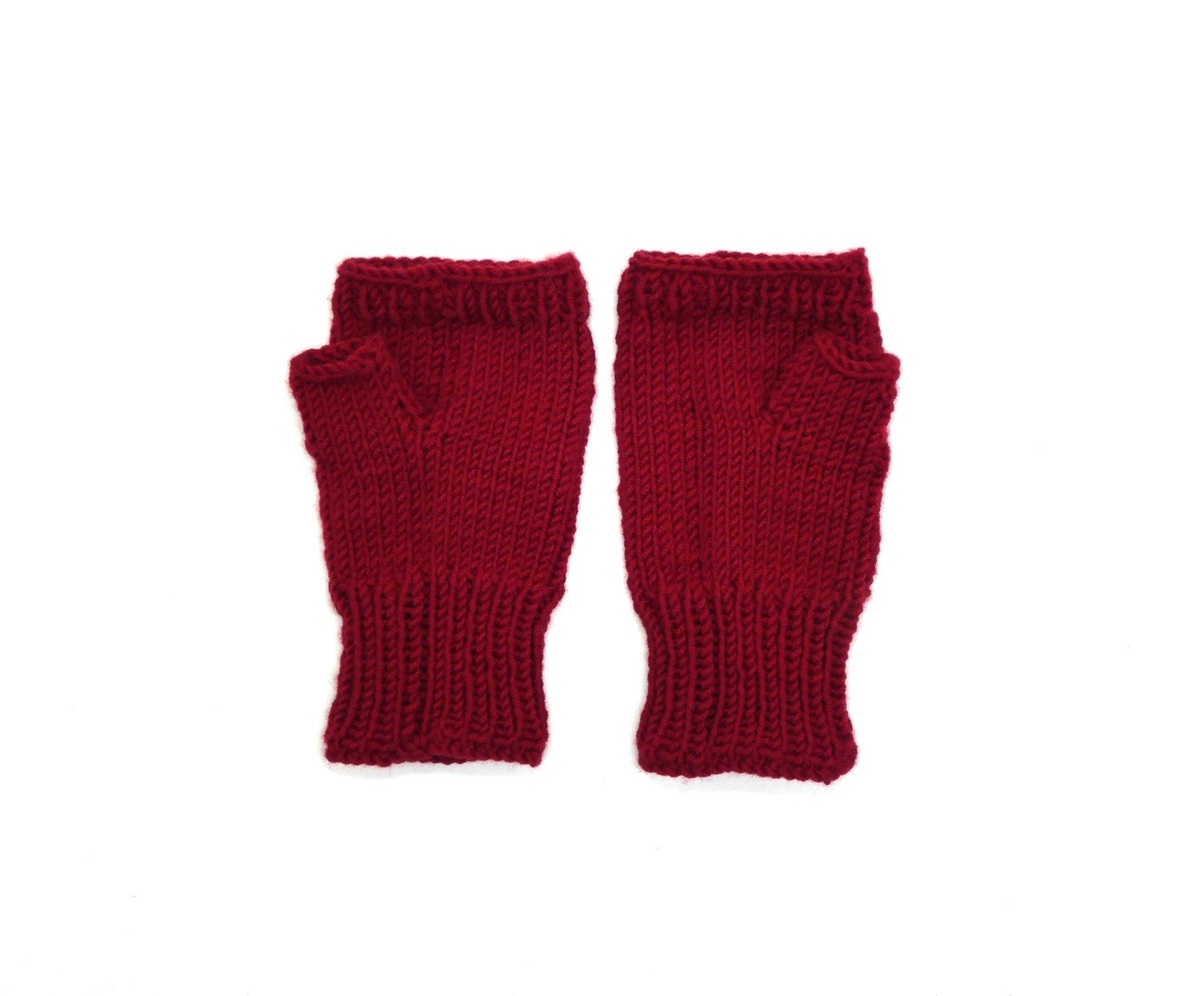 Mitaines avec pouce 100% laine merino rouge foncé entièrement tricotées main.