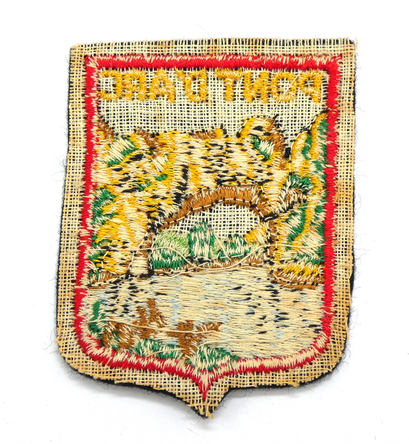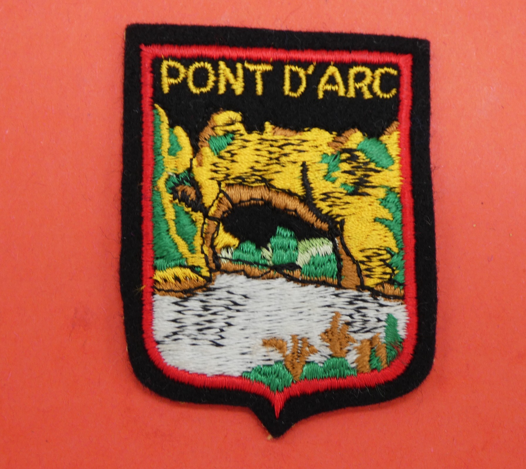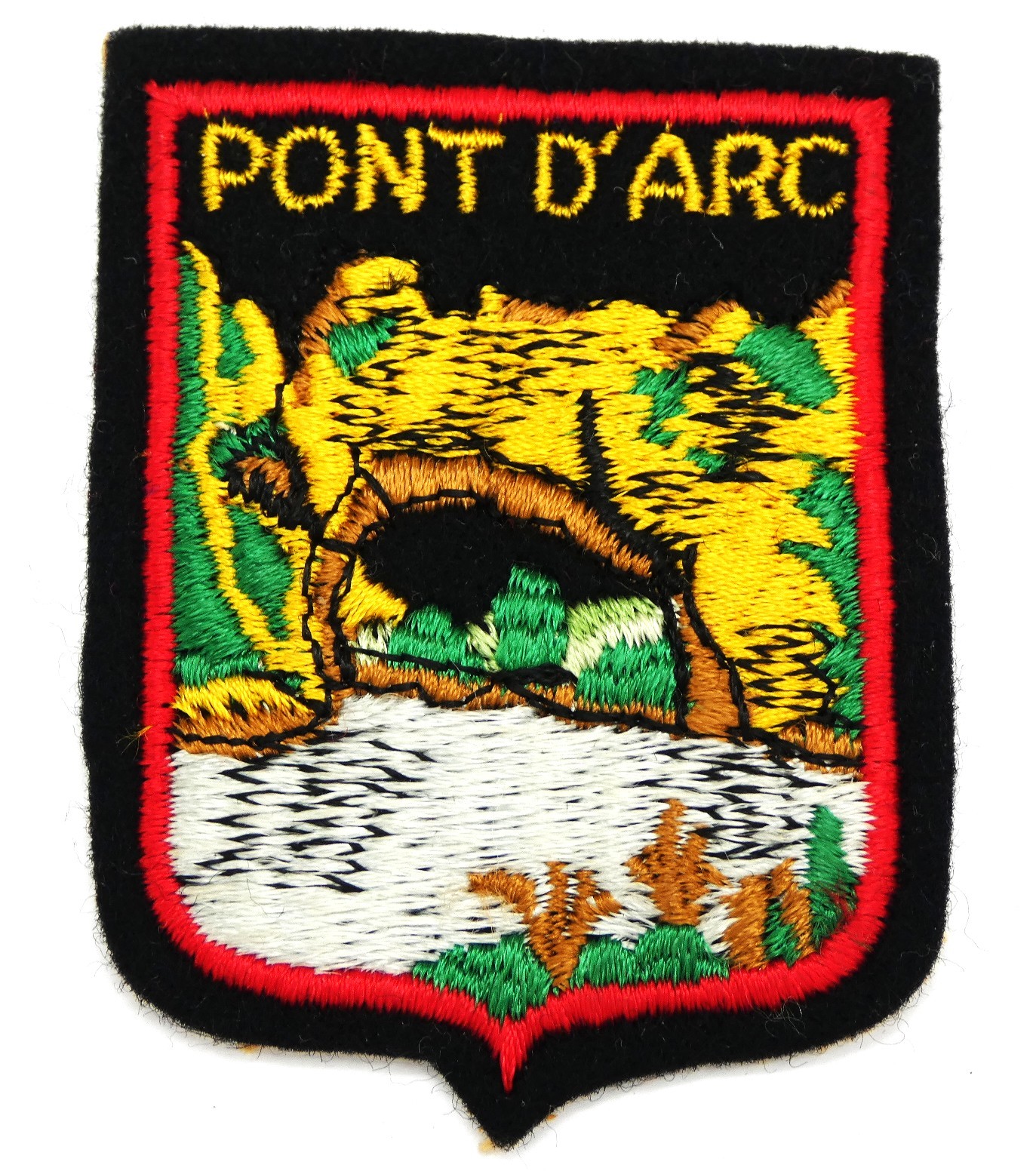 Ecusson ancien occasion brodé ville PONT D ' ARC à coudre pour customisation .