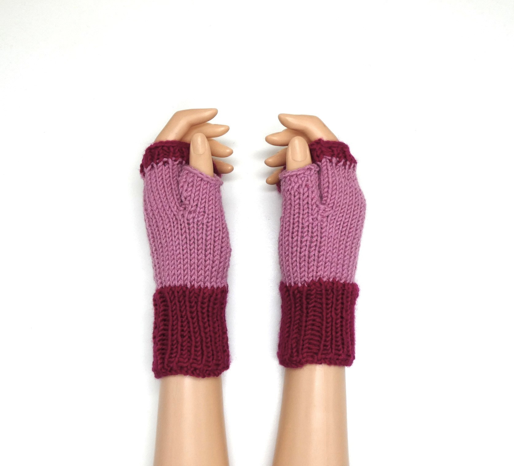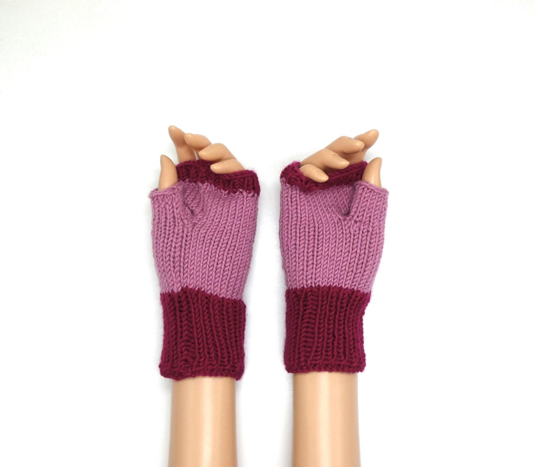 Mitaines rose pour femme en laine katia merino sport .