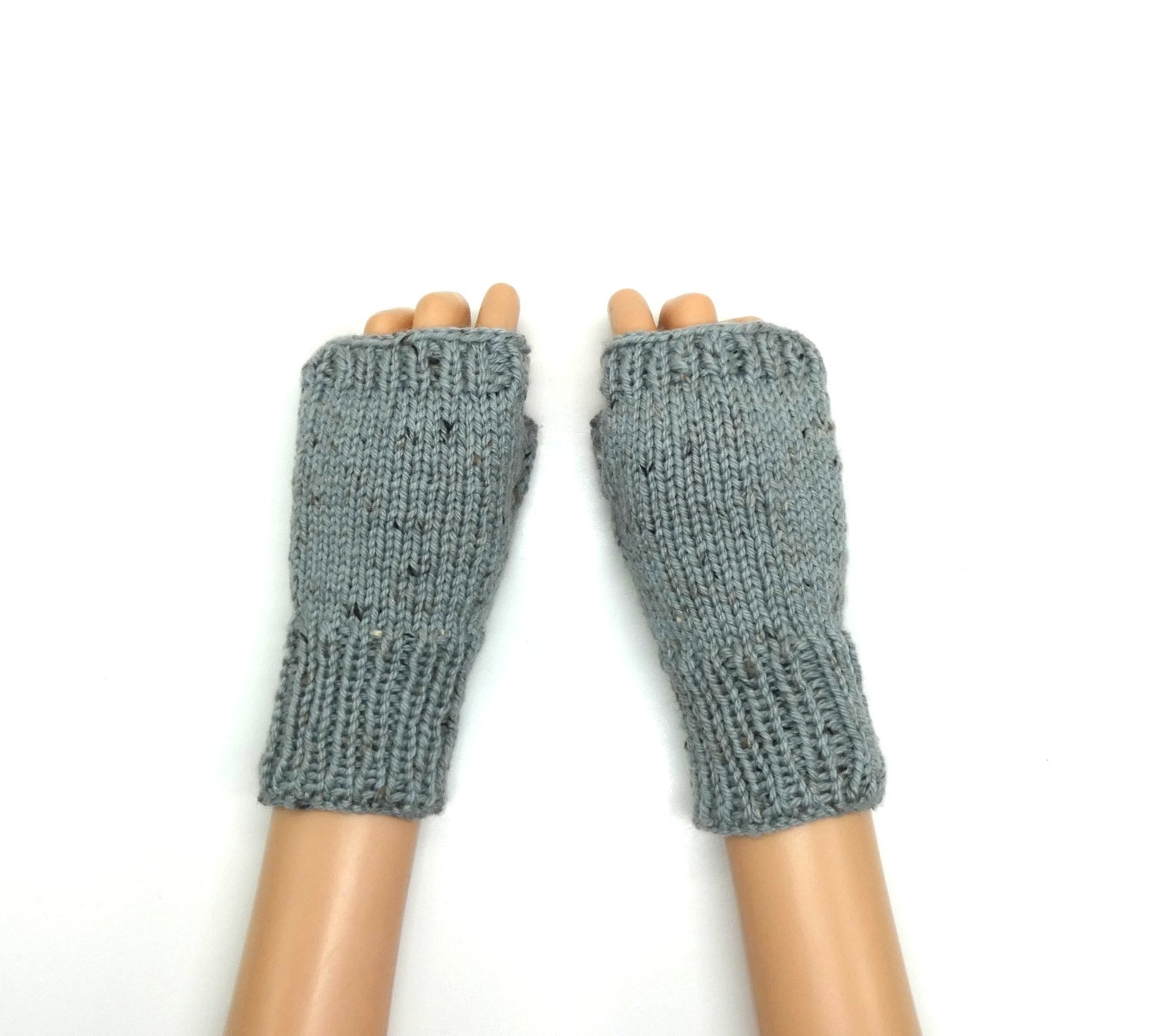 Mitaines grise mouchetée en laine Katia merino tweed tricotées main.