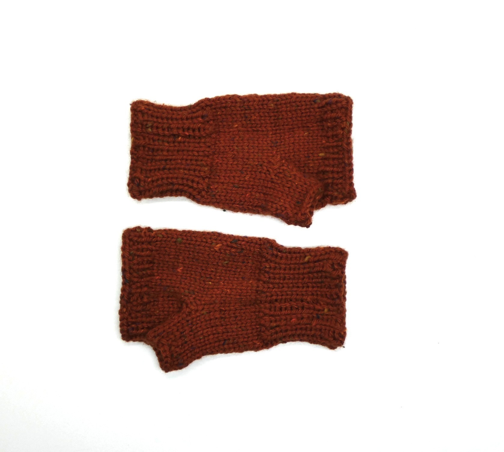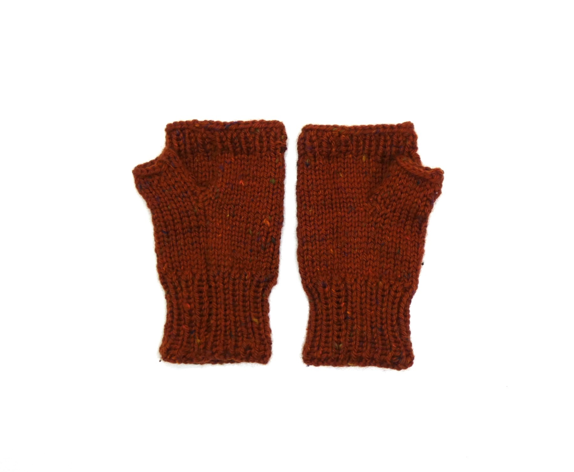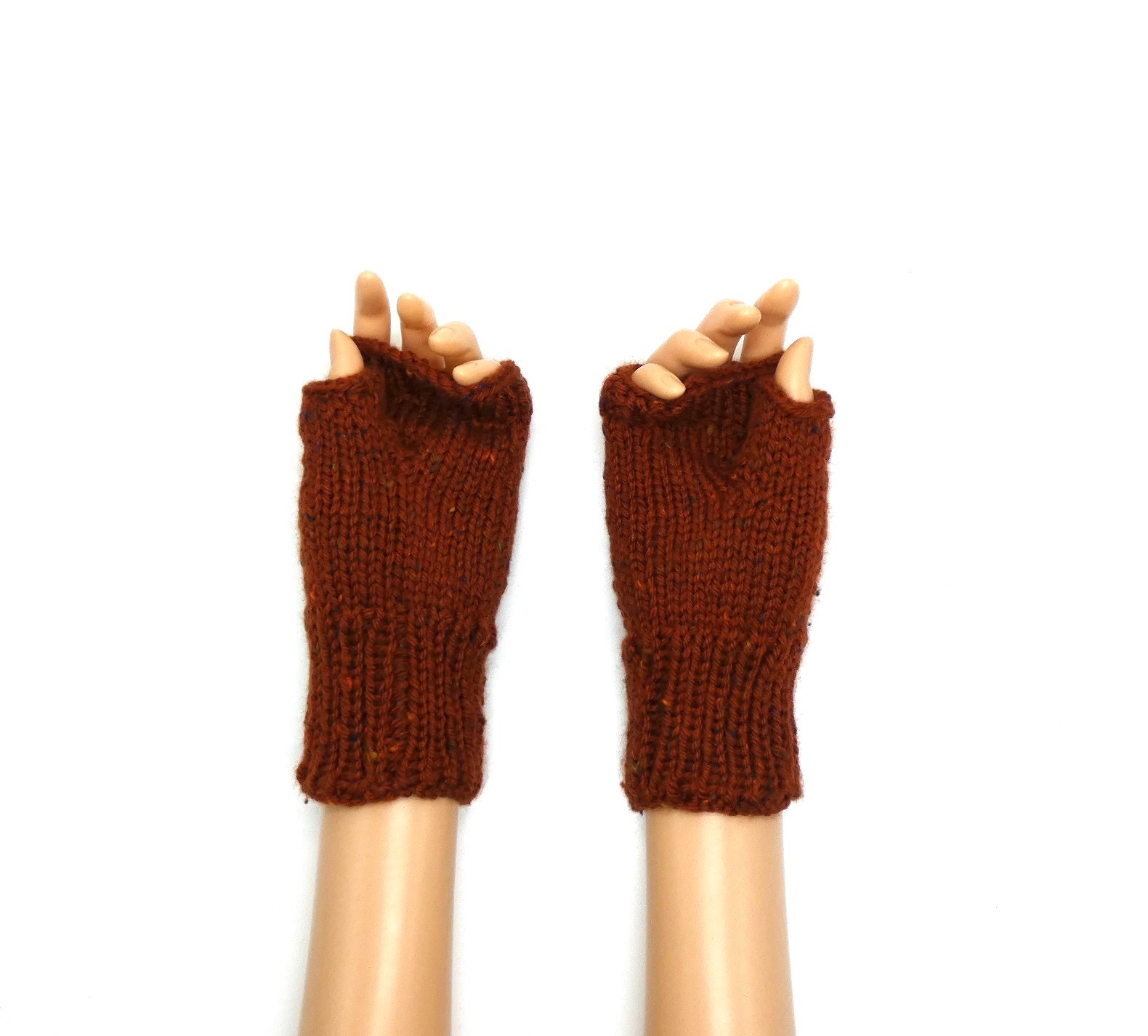 Mitaines marron mouchetée en laine Katia merino tweed tricotées main.