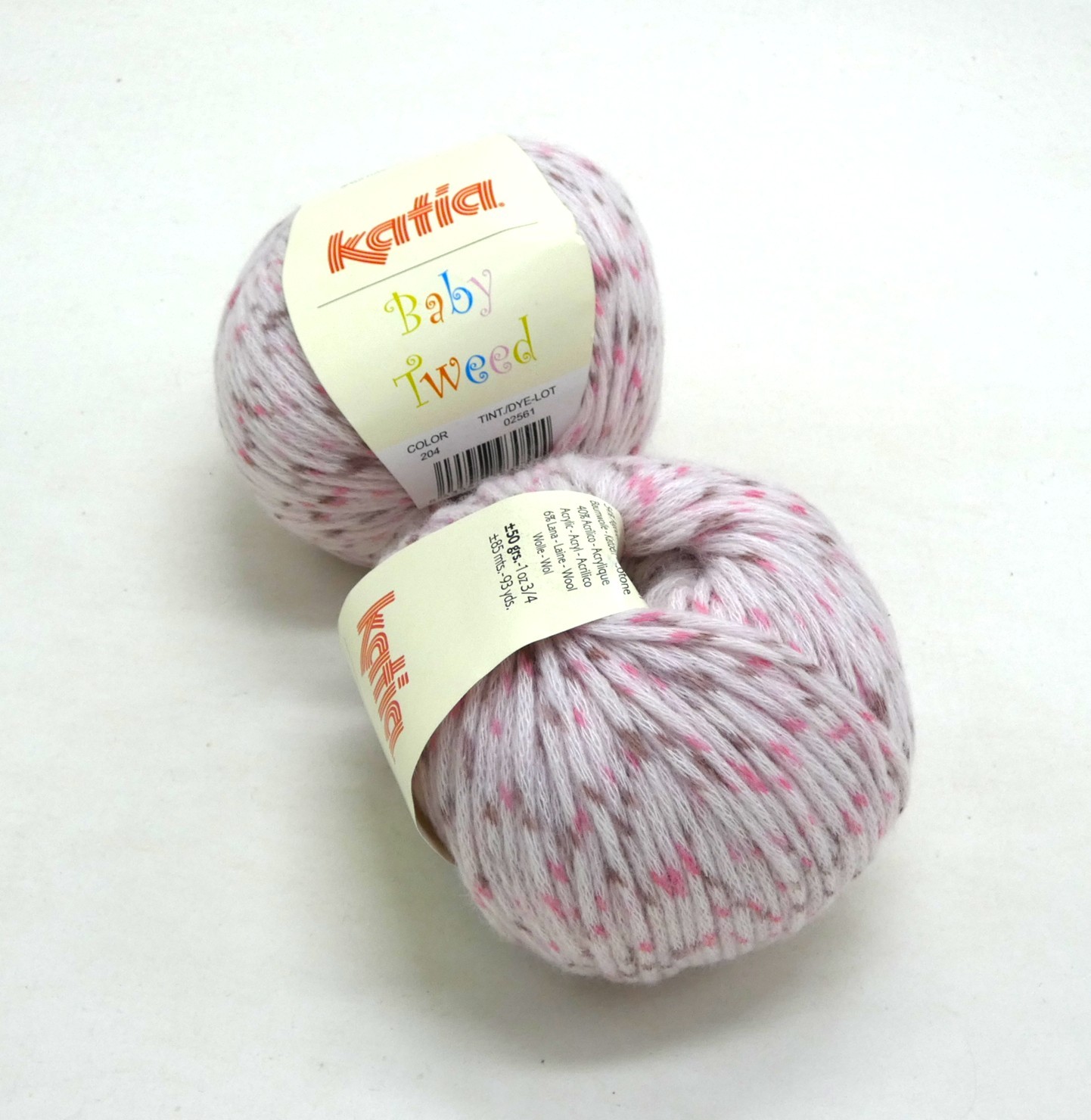 Lot de 2 pelotes de fil à triccoter Katia Baby Tweed C 204.