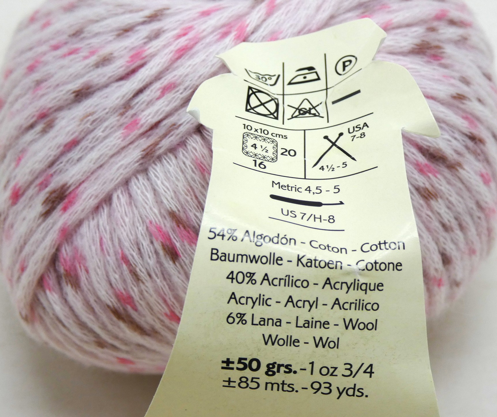 Pelote 50 gr = +/- 85 mètres, 93 yds.