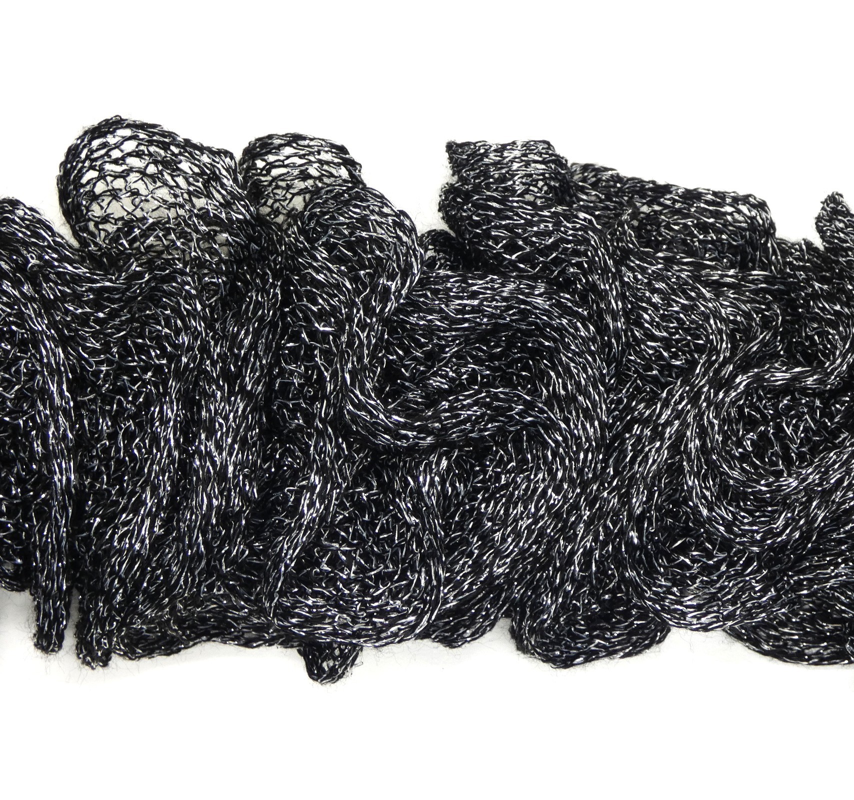 Echarpe femme noire pailleté gris argenté tricotée main .