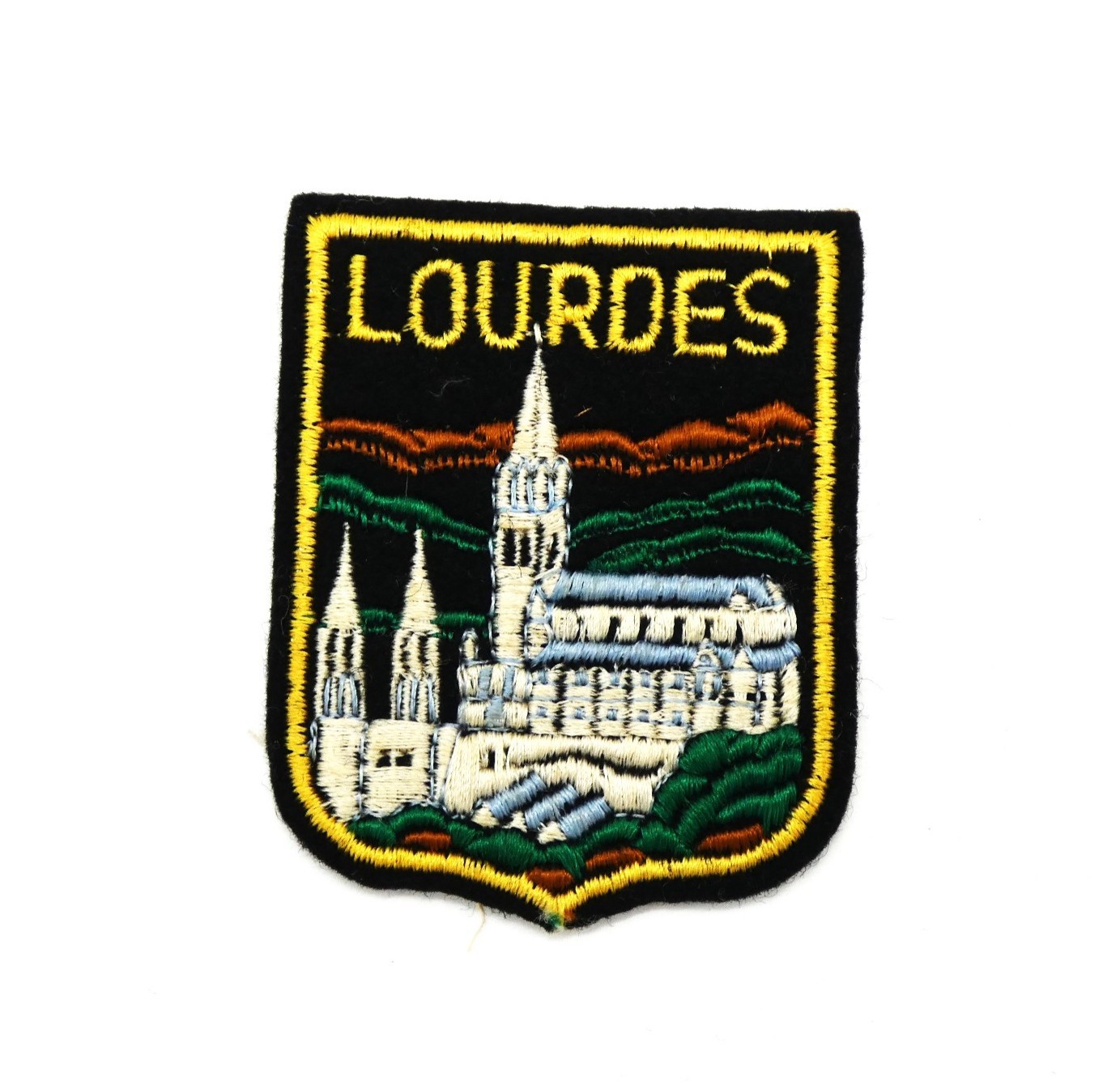 Ecusson brodé cathédrale basilique LOURDES à coudre pour customisation .