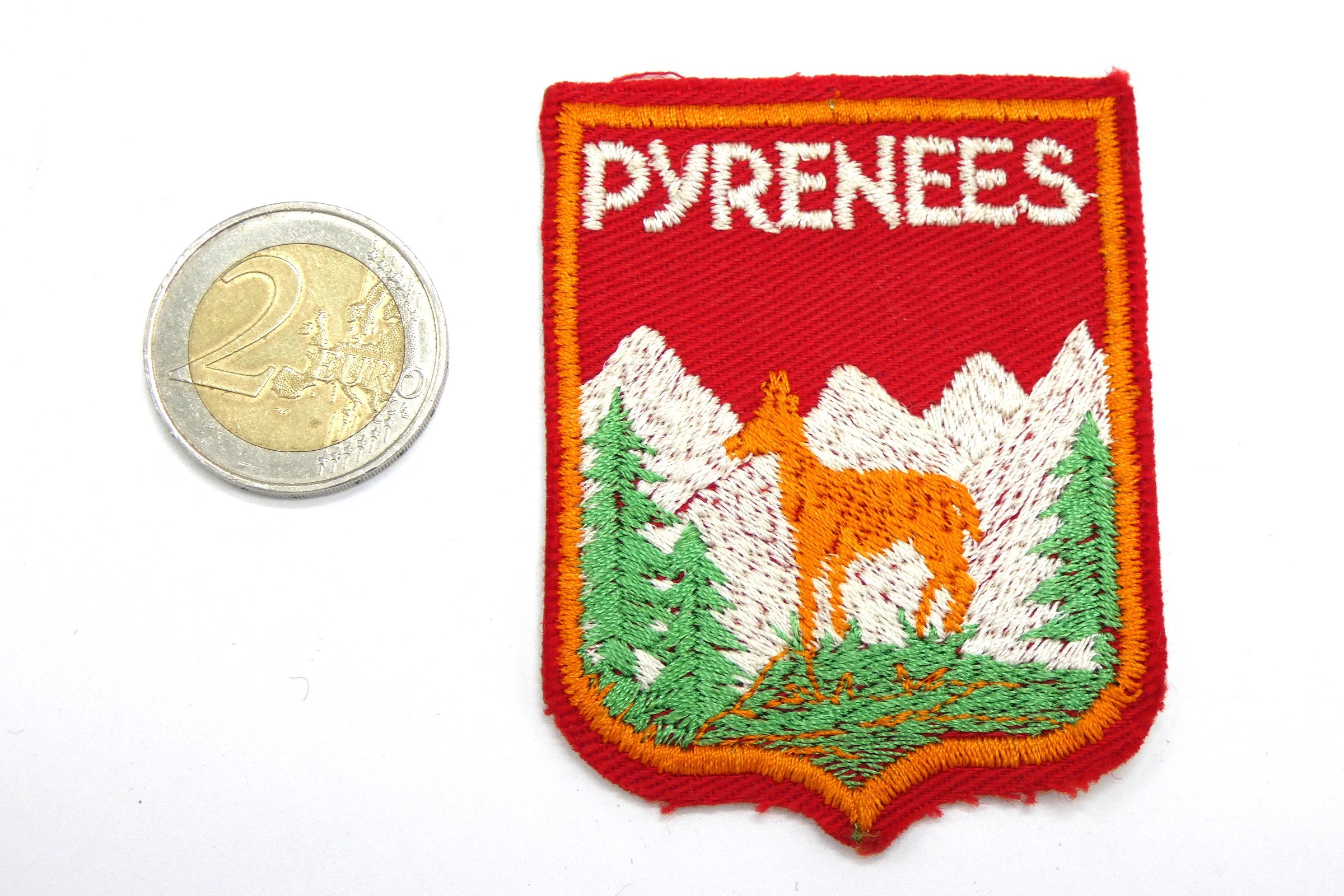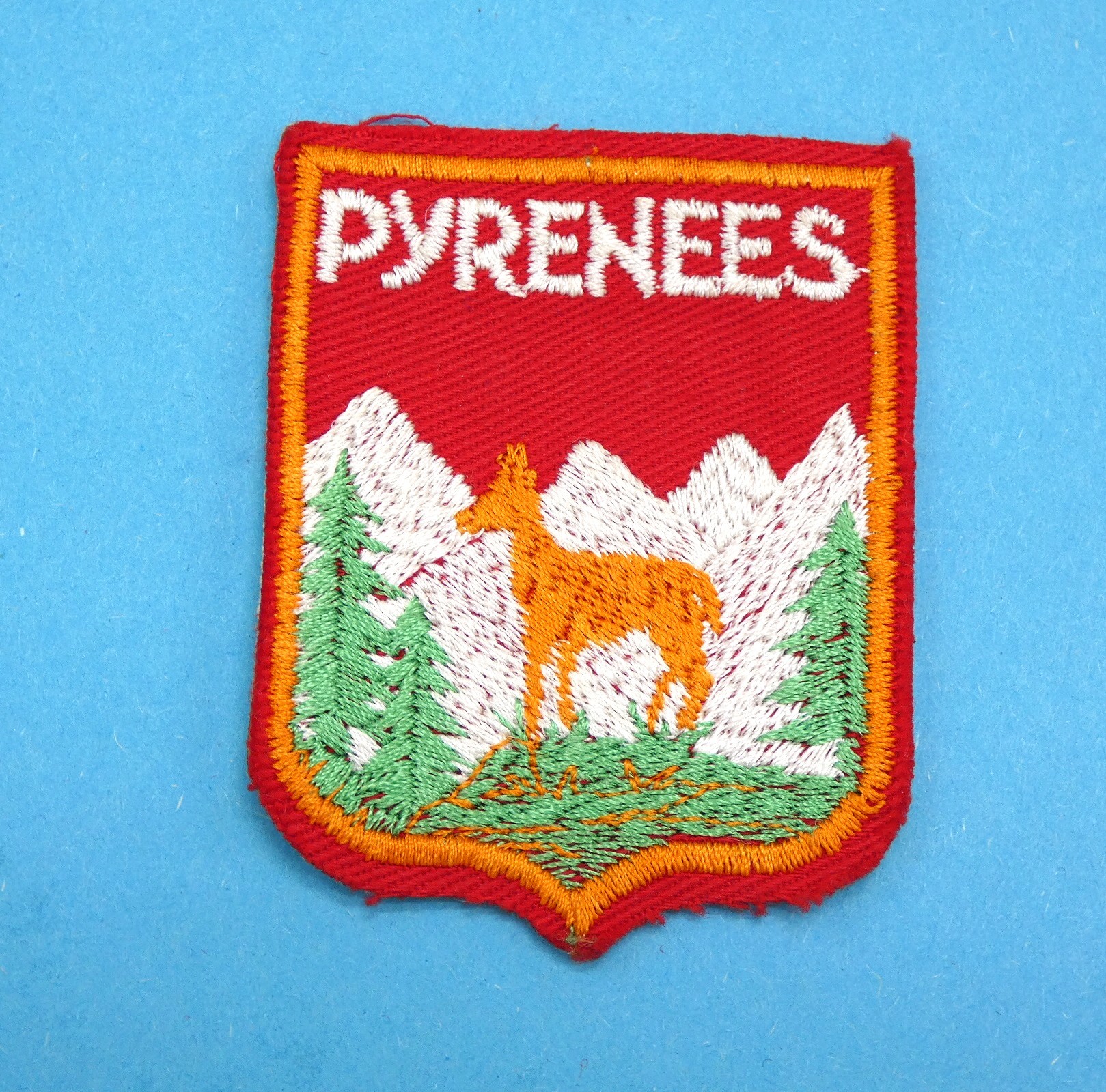 Motif écusson brodé décor montagne des Pyrénées,