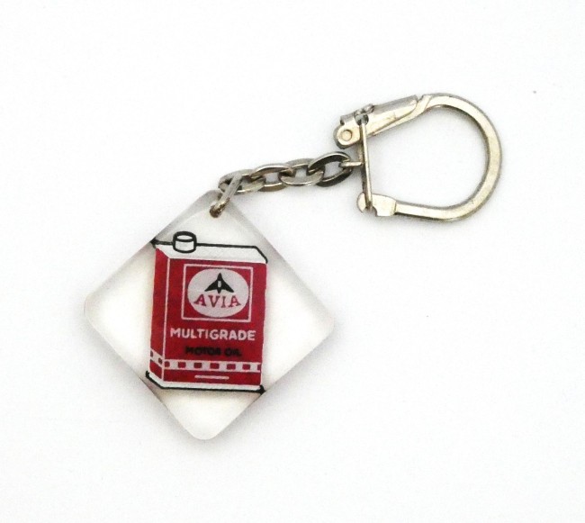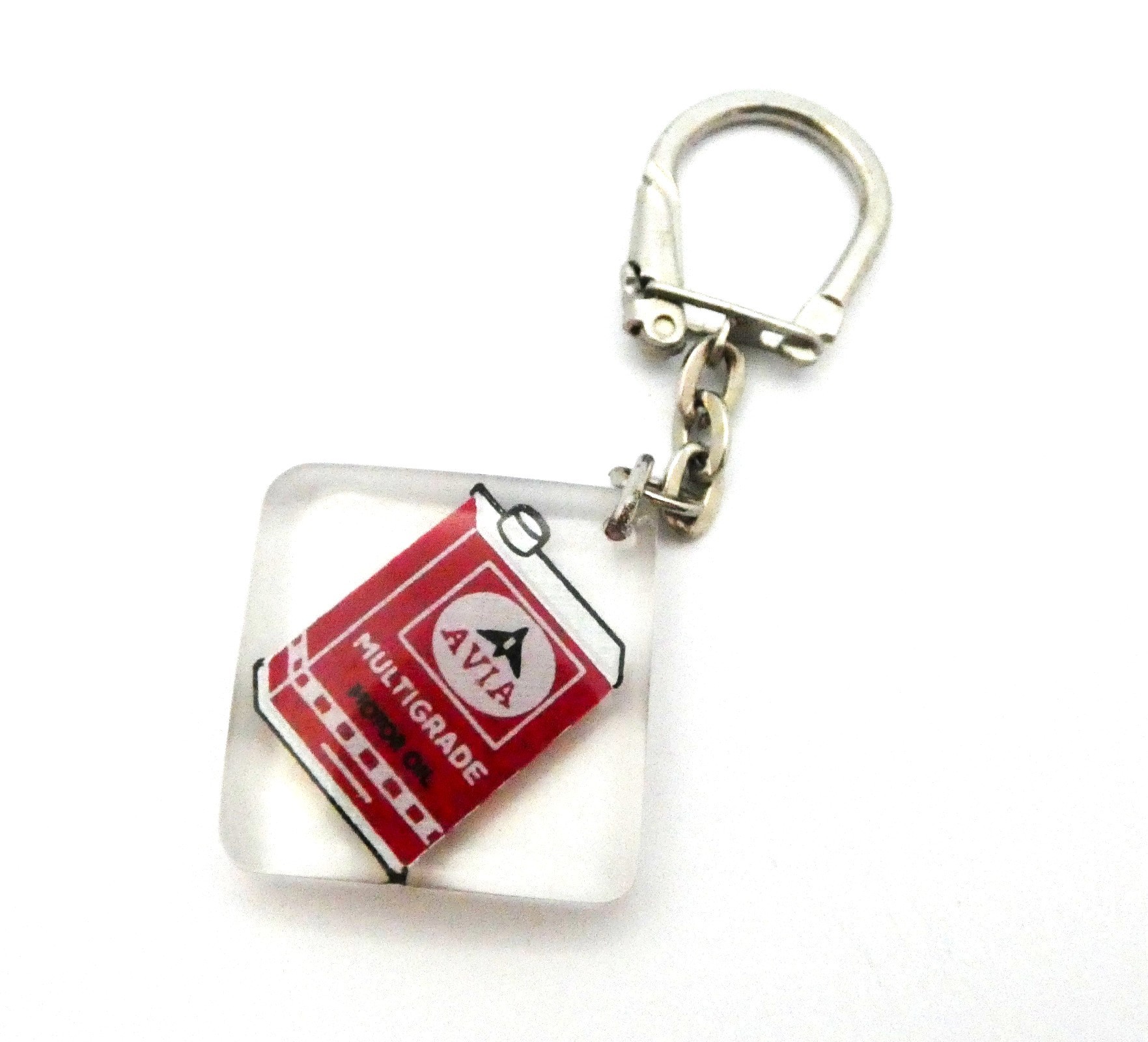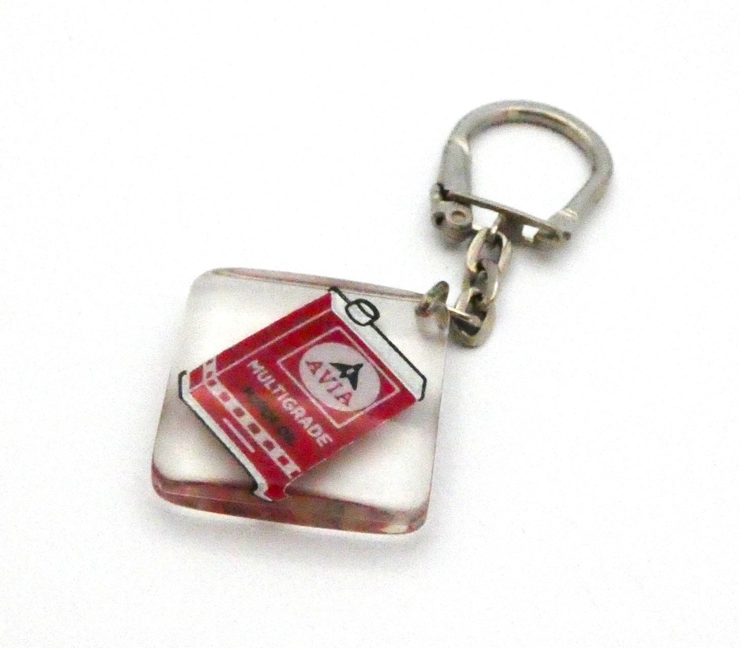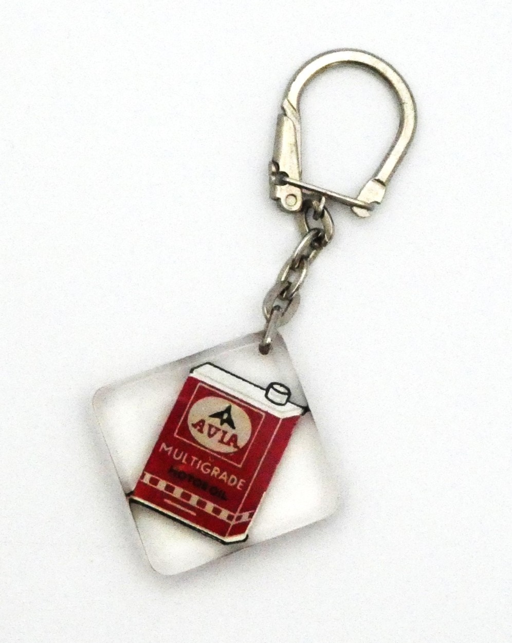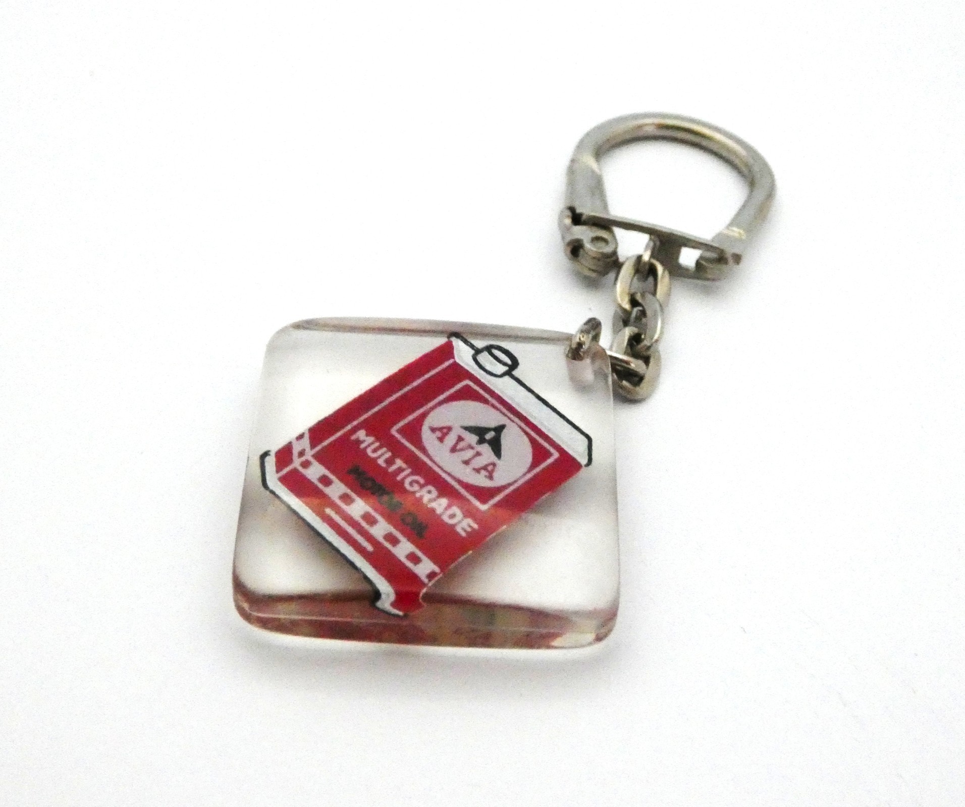 Porte clé vintage résine plastique huile AVIA multigrade / Motor oil .