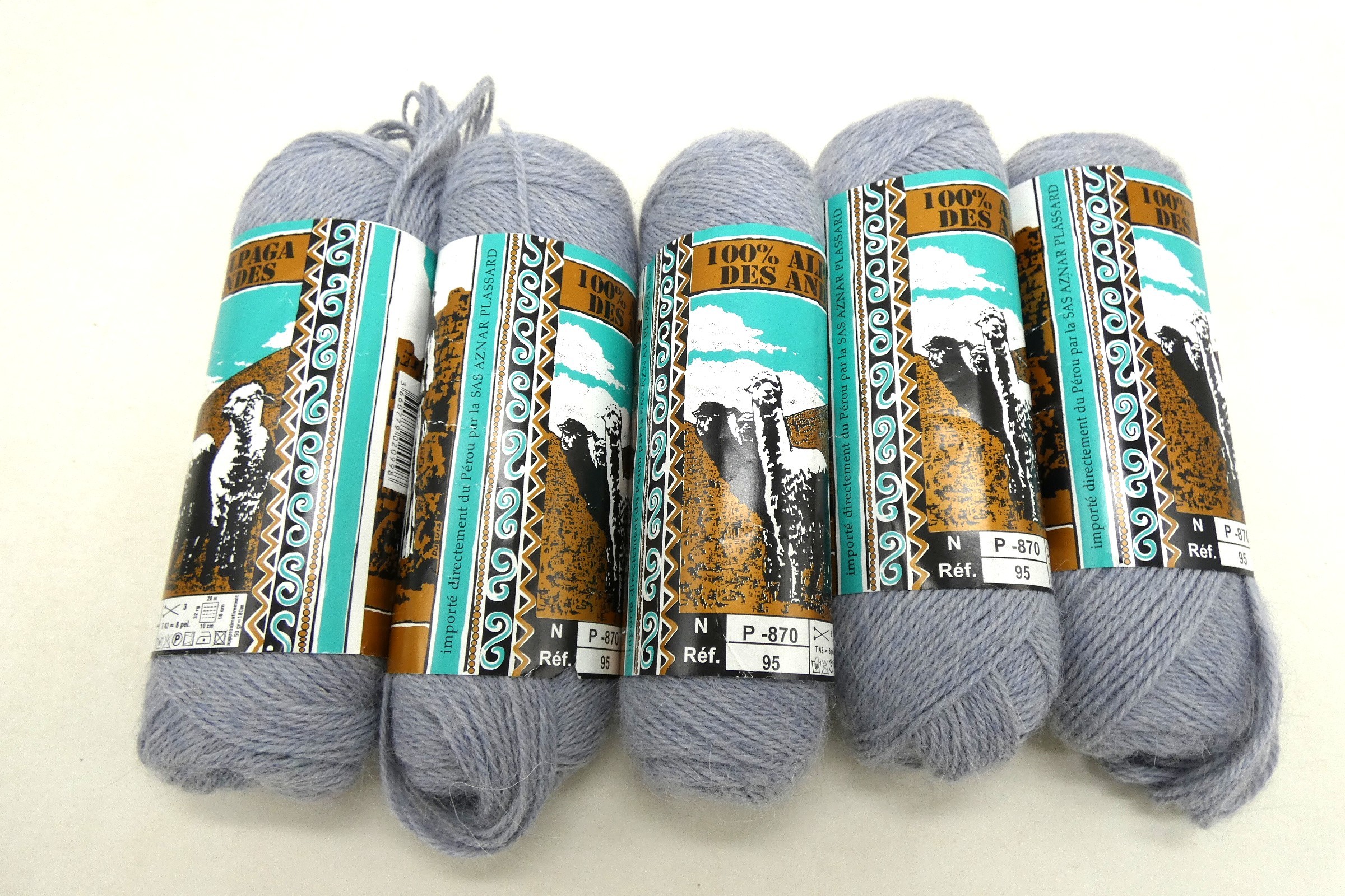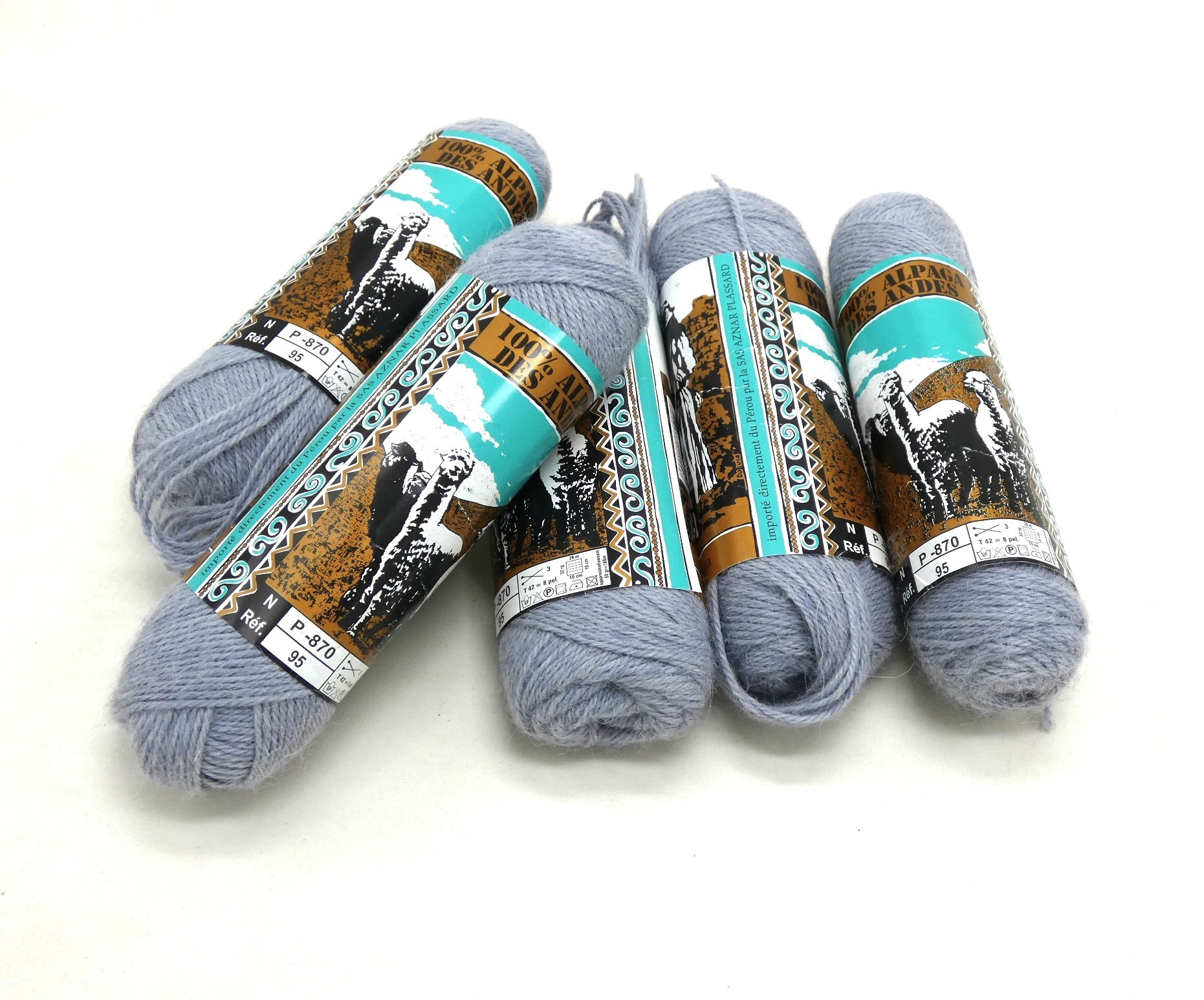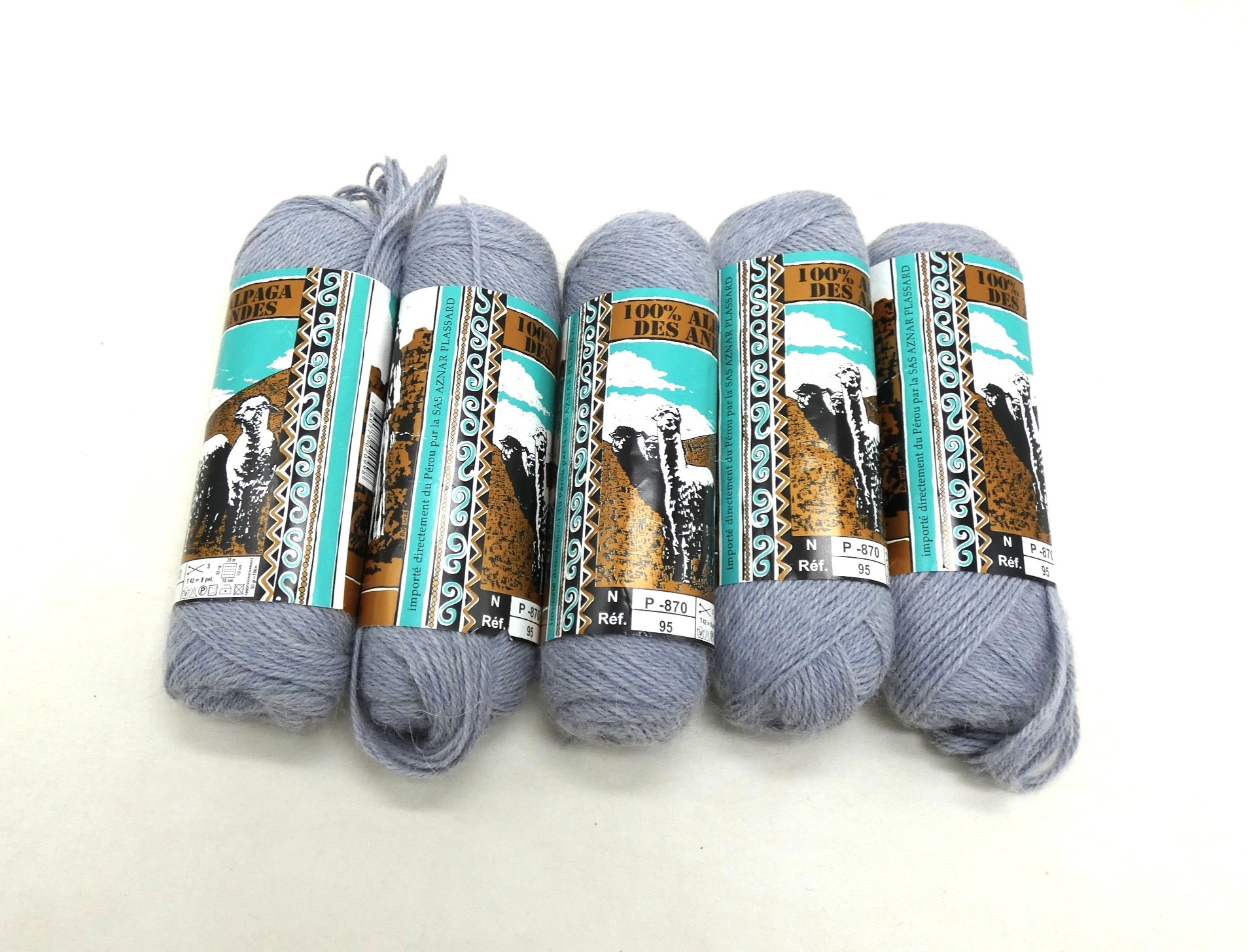 Lot de 5 pelotes de laine Alpaga des Andes 100% alpaga coloris grise .
