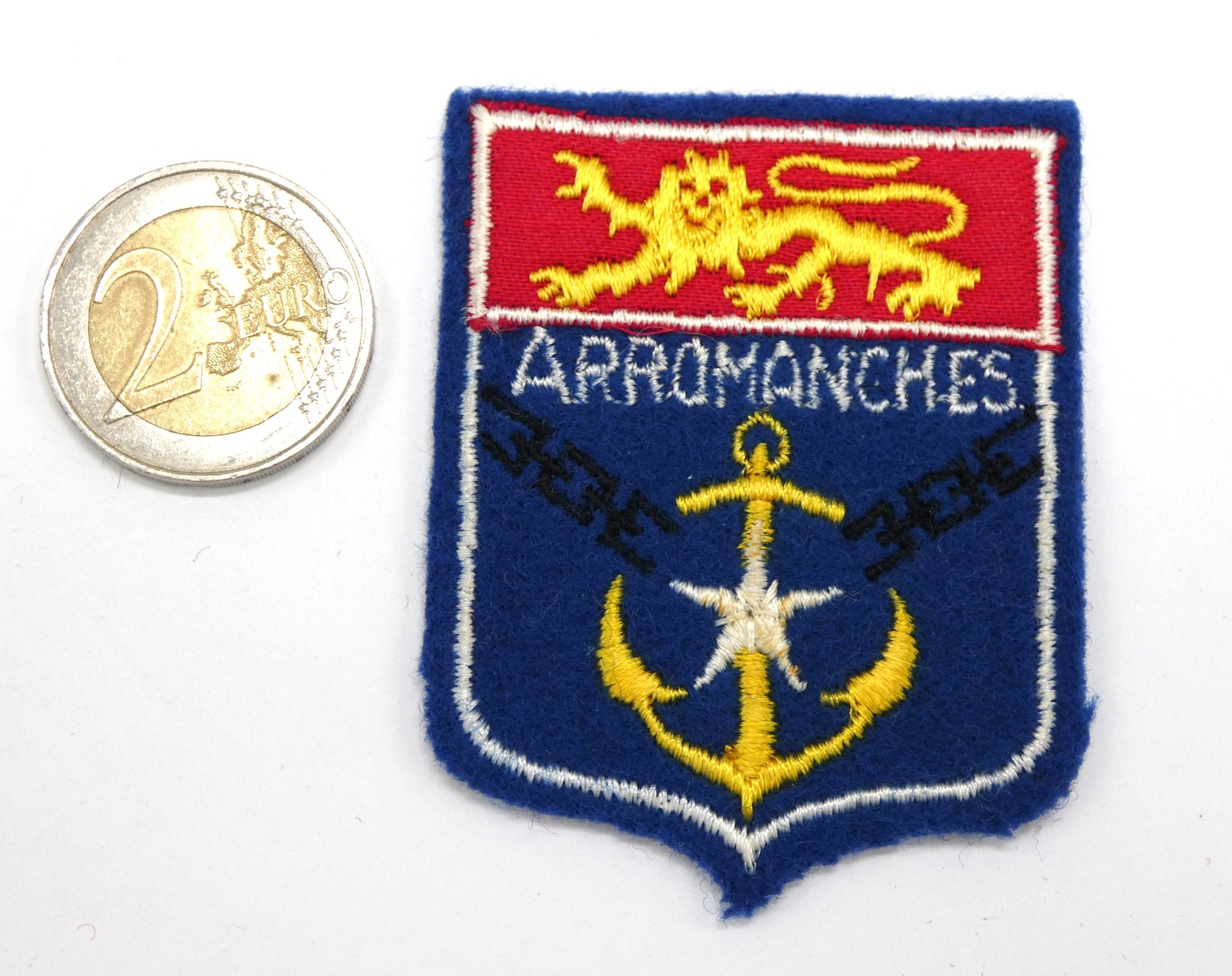 Blason ancien ville Arromanches en tissu feutrine,