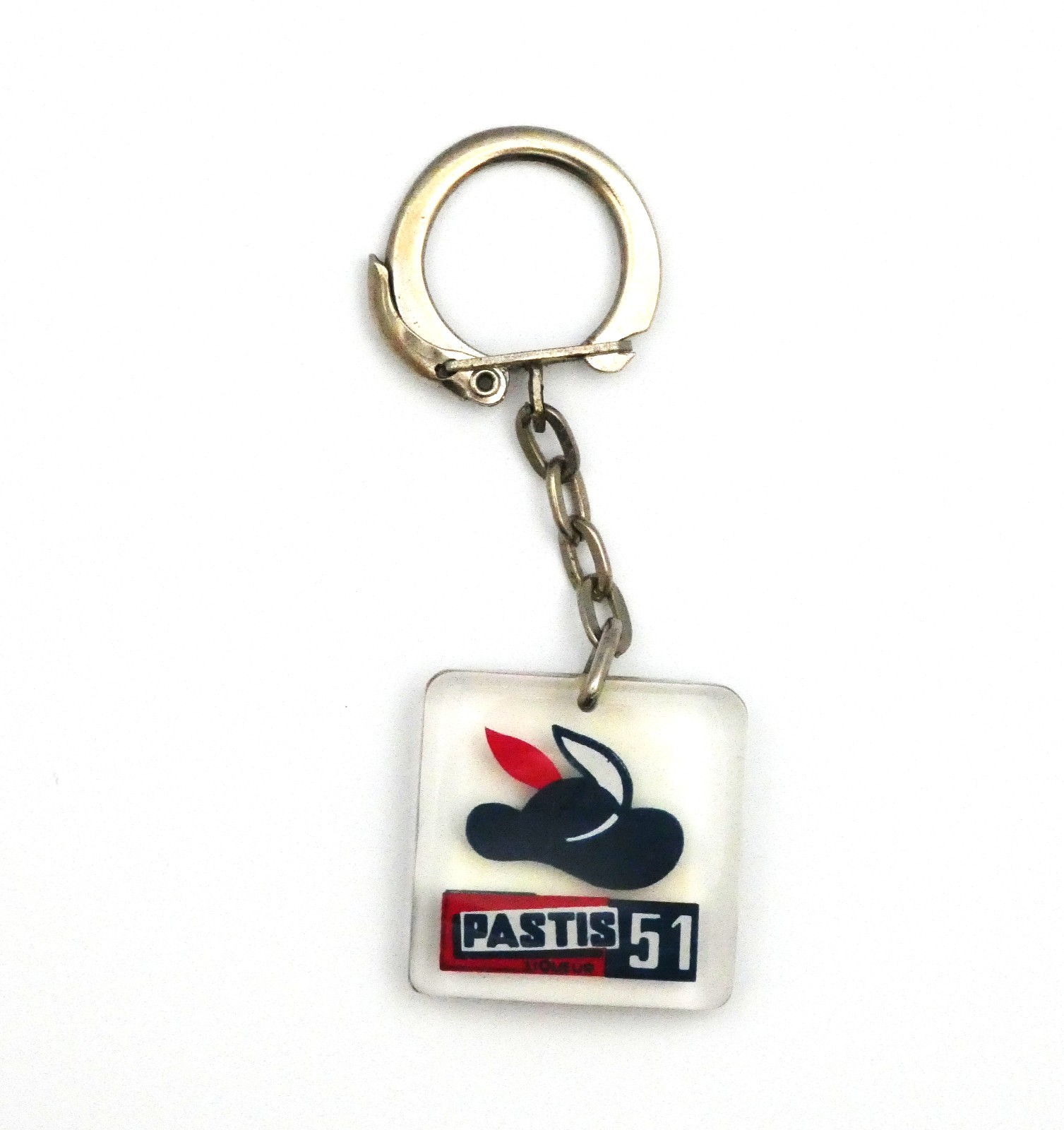 Porte clé résine inclusion publicitaire Pastis 51 année 60 .