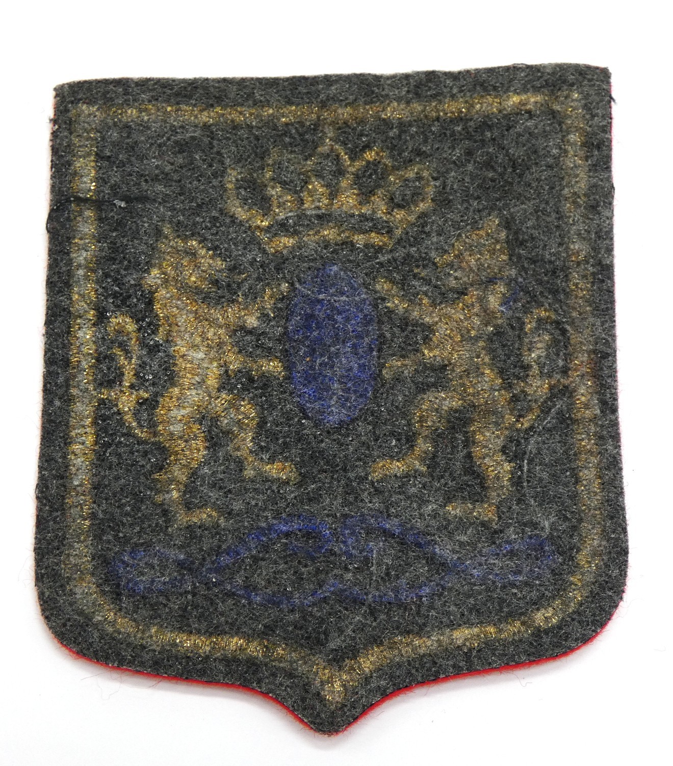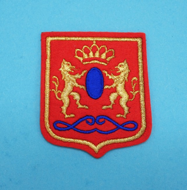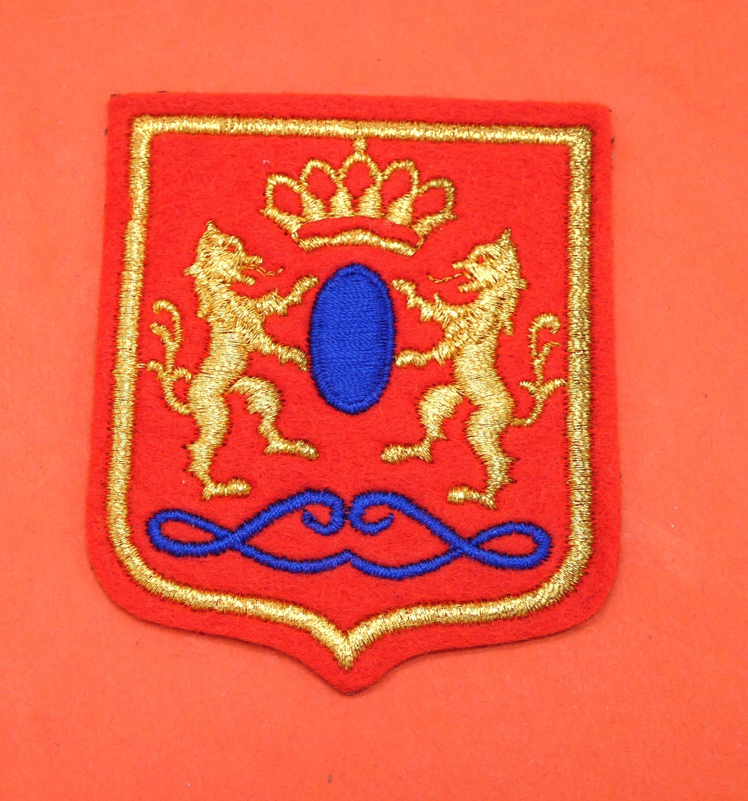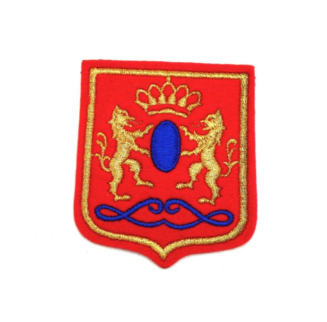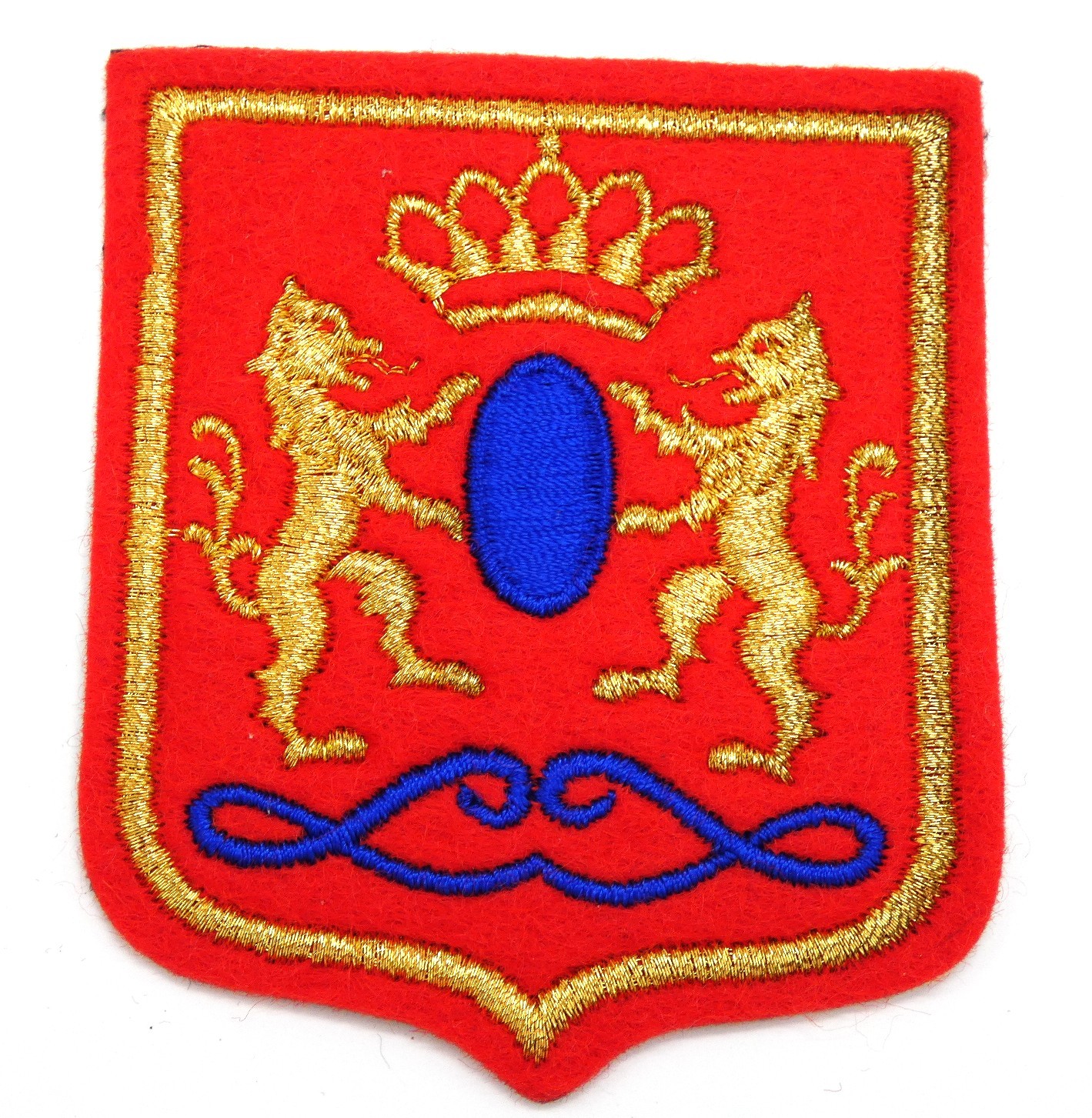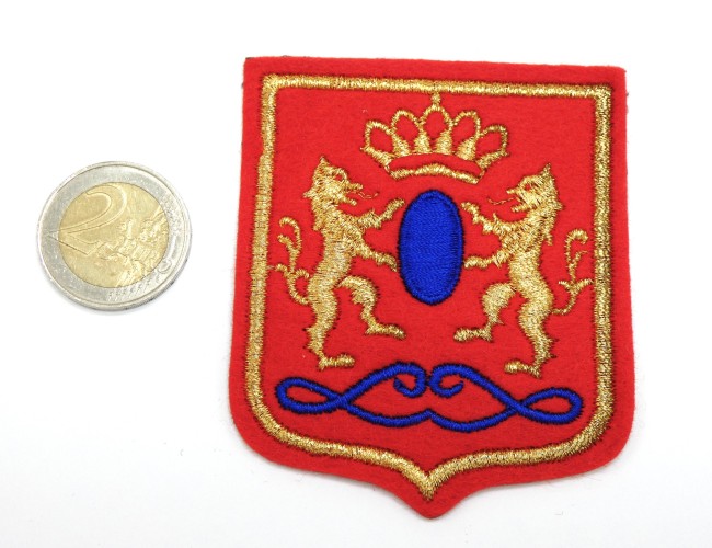 Blason ancien en tissu feutrine rouge et doré or ,