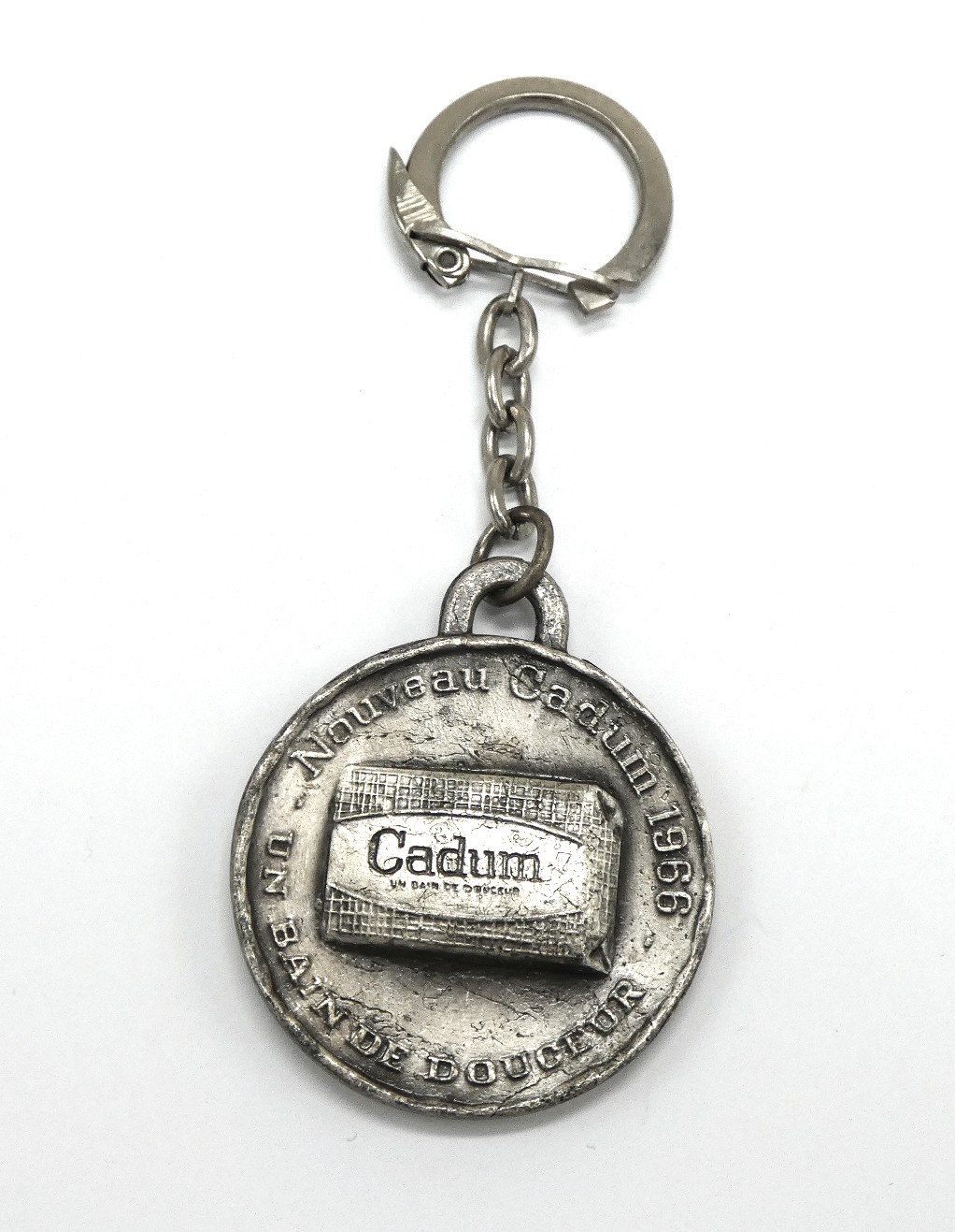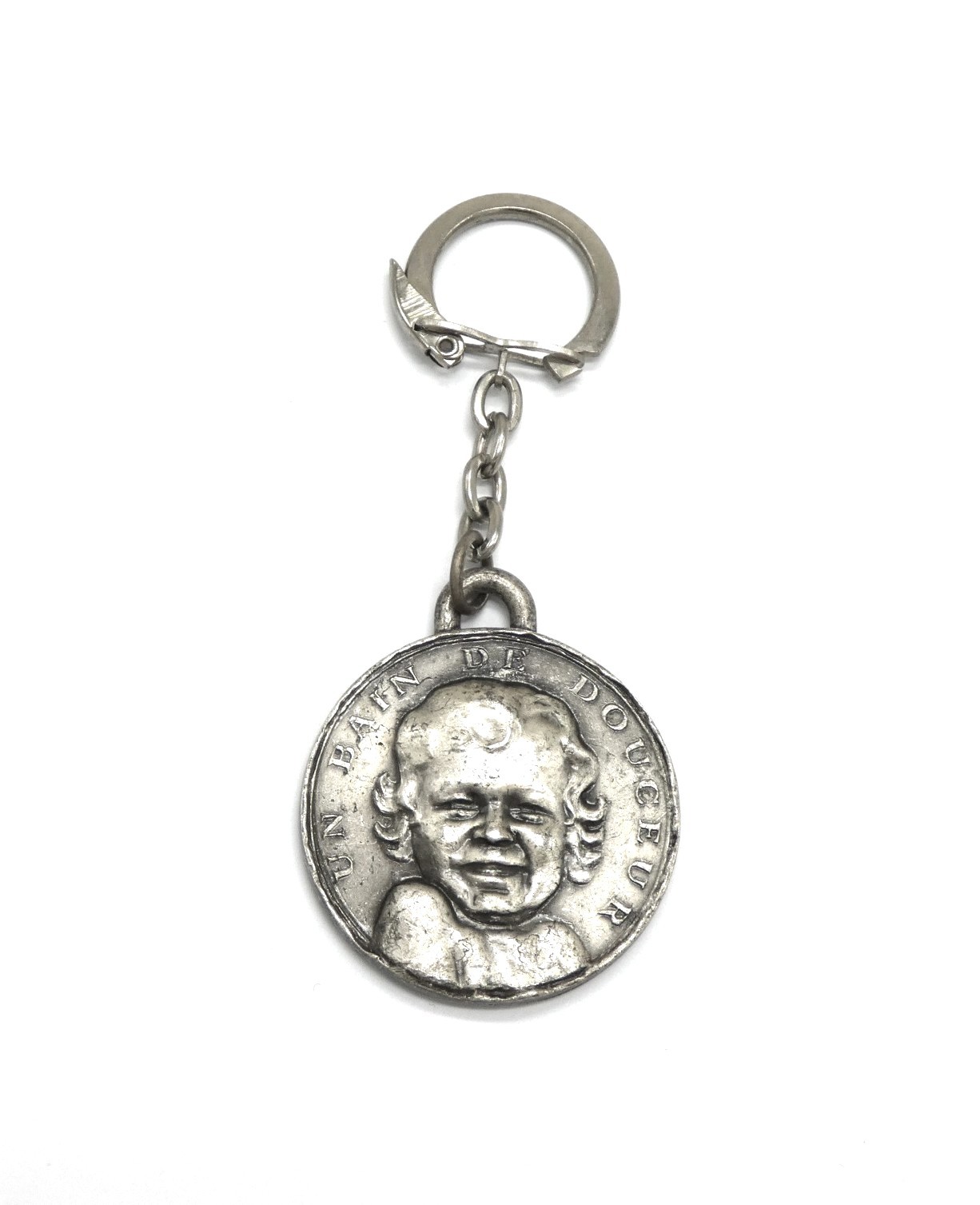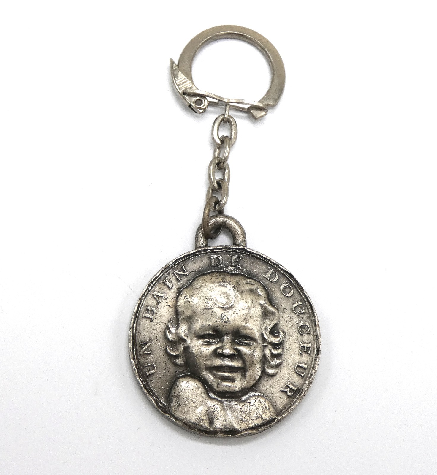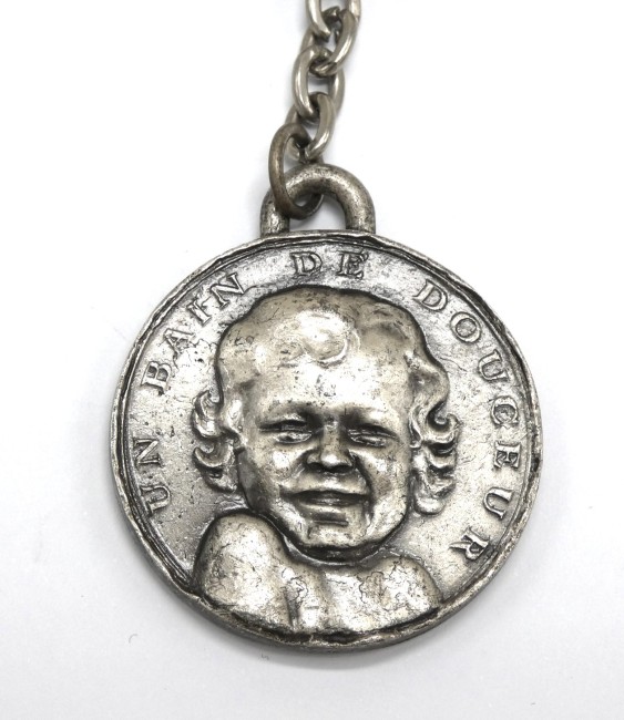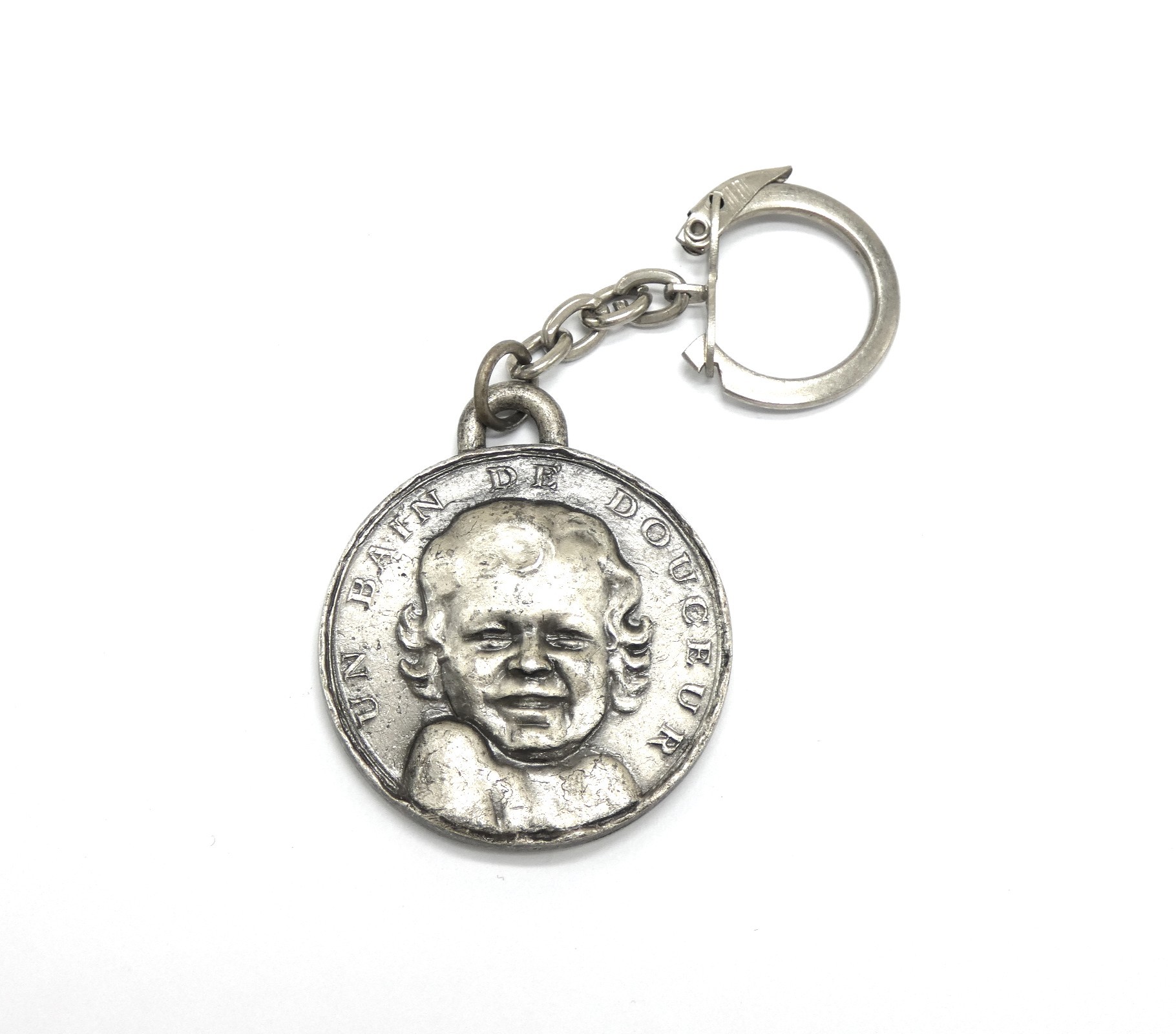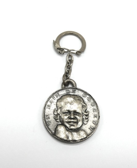 Porte clé bébé cadum 1966 couleur gris argenté