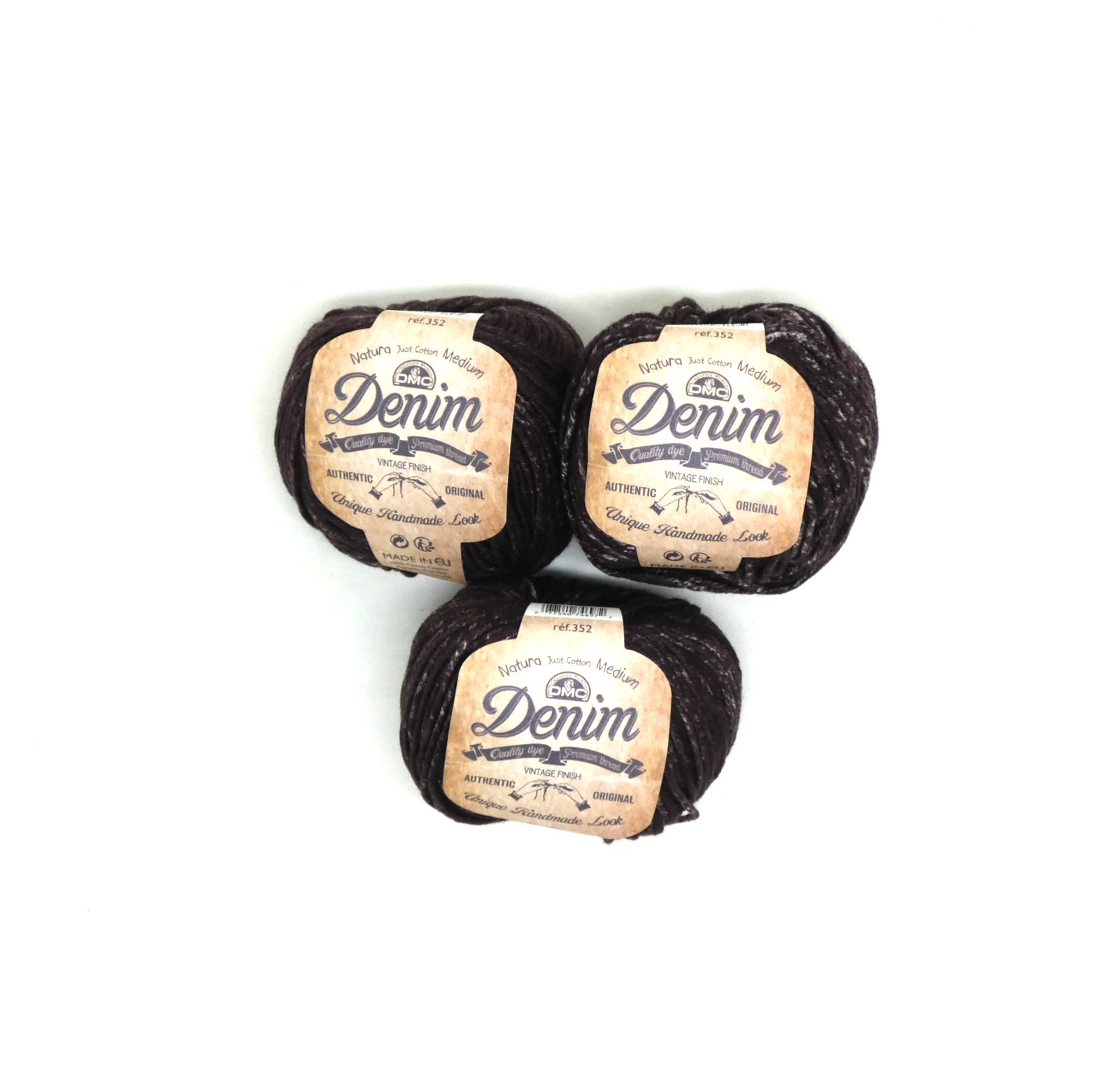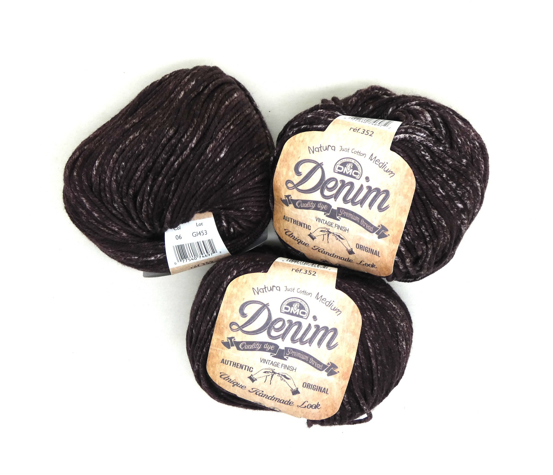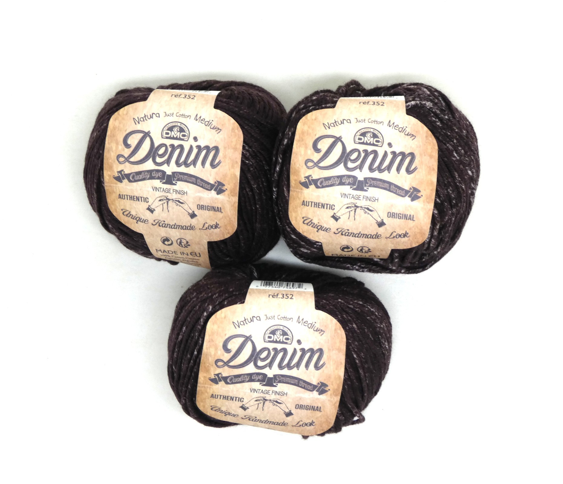Lot de 3 pelotes de cotton fil DMC natural médium Denim .