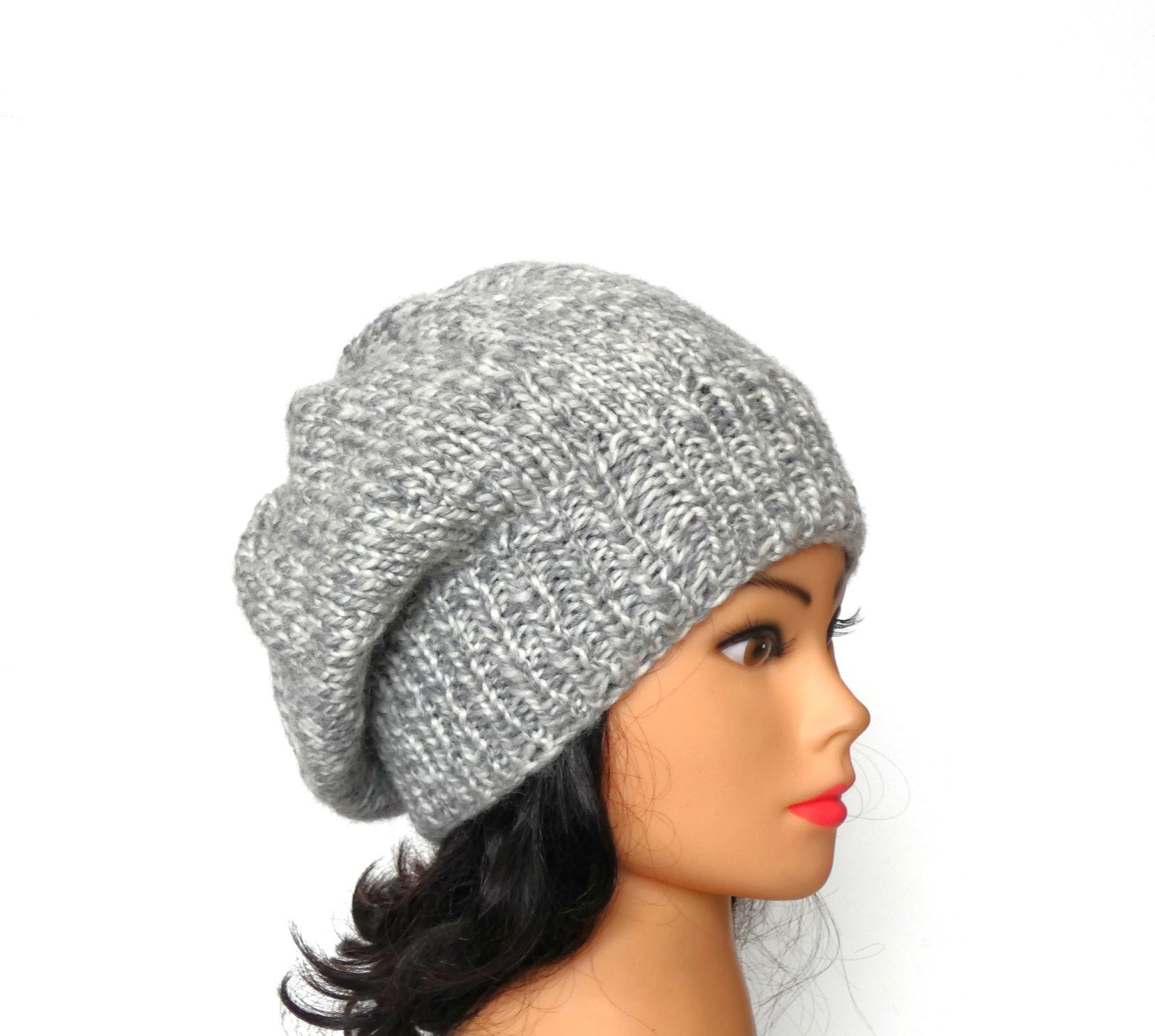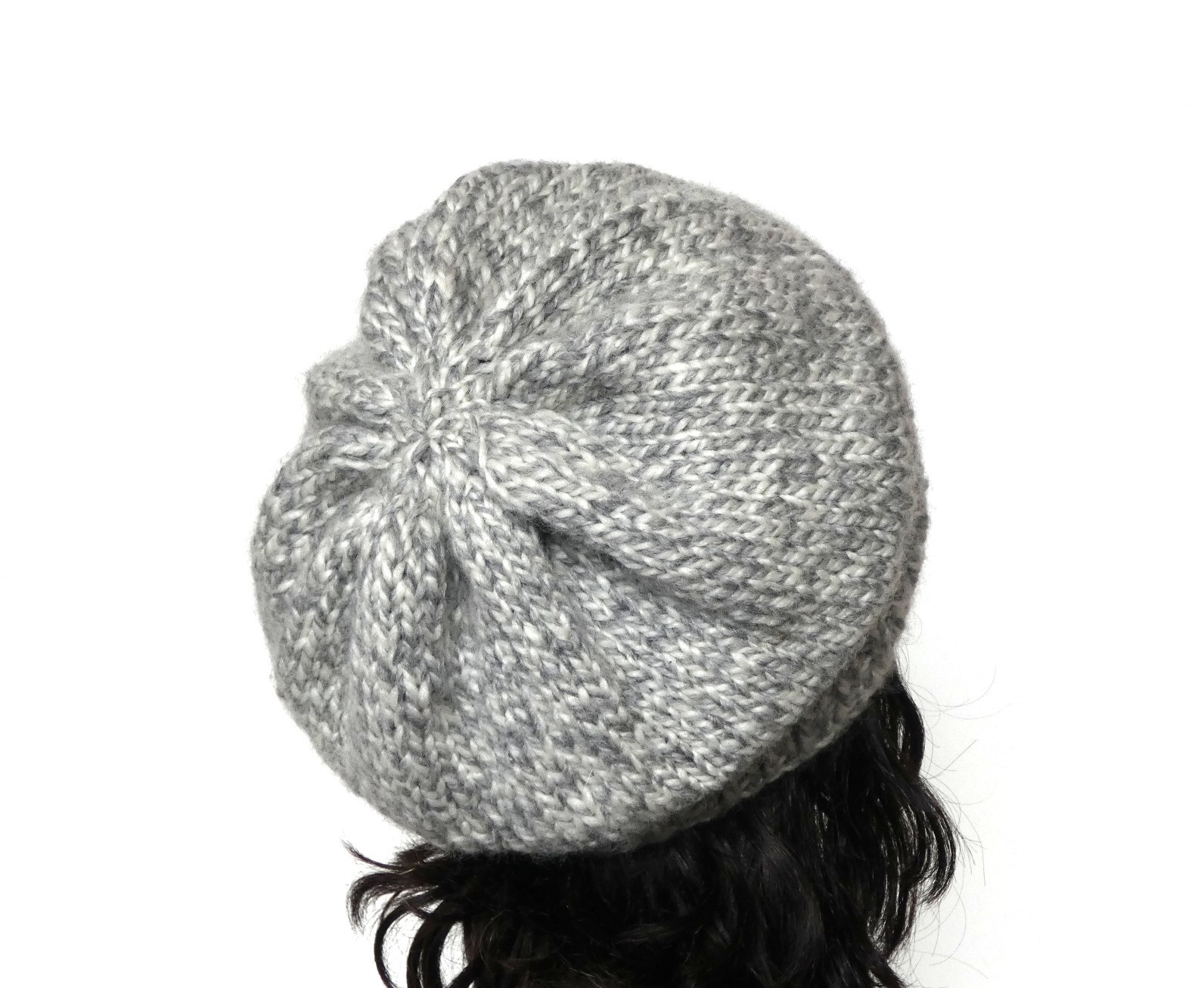 Bonnet béret très doux et chaud en laine tricoté main en rond