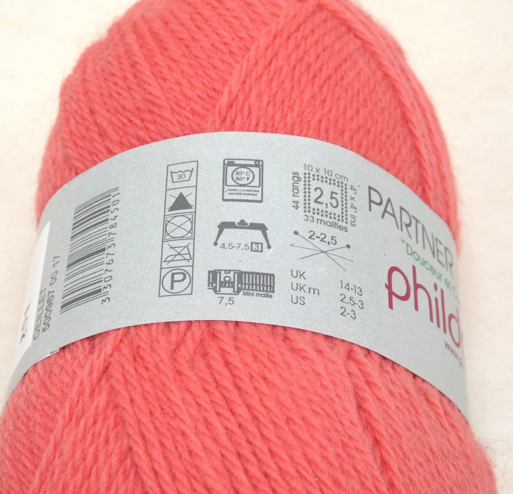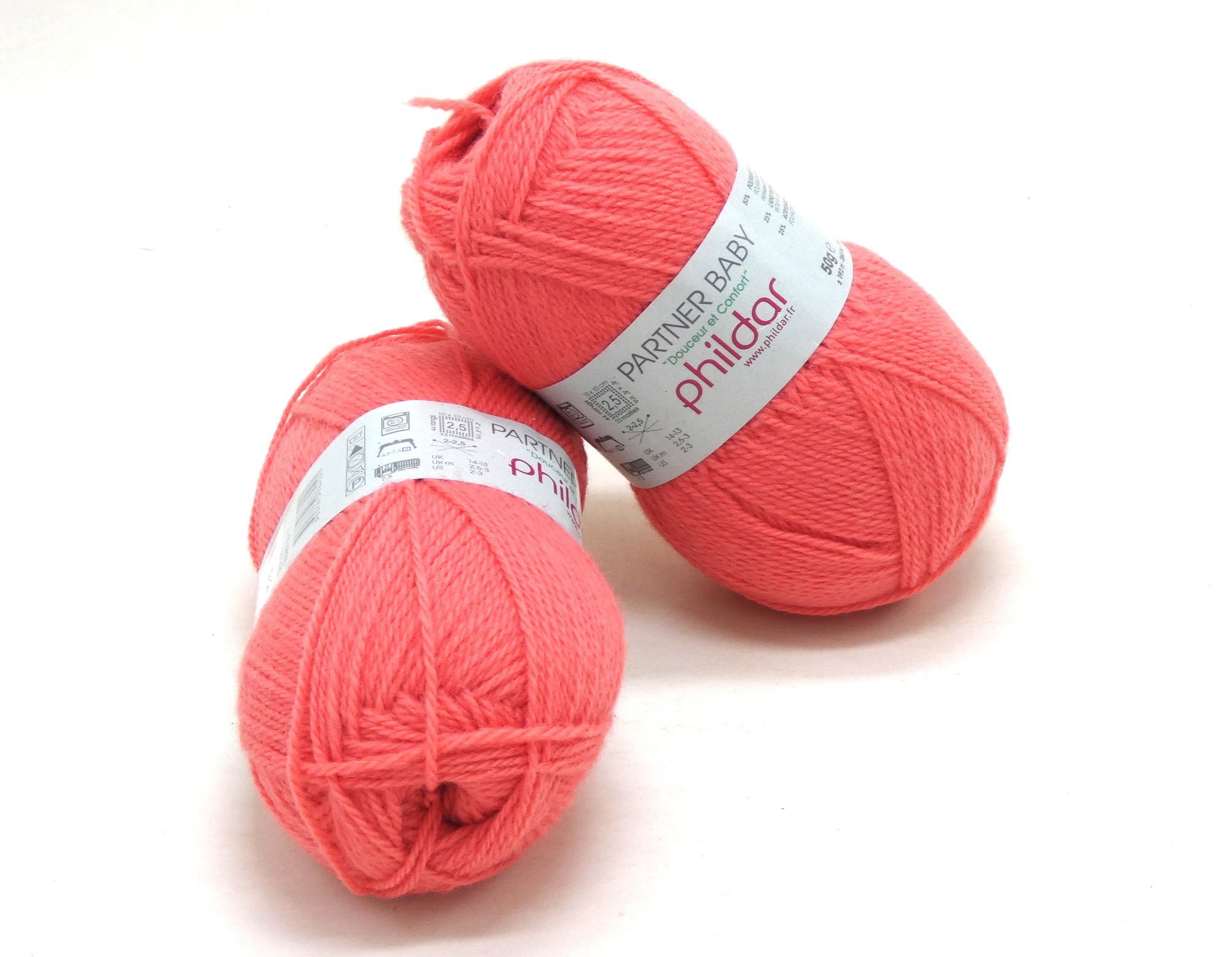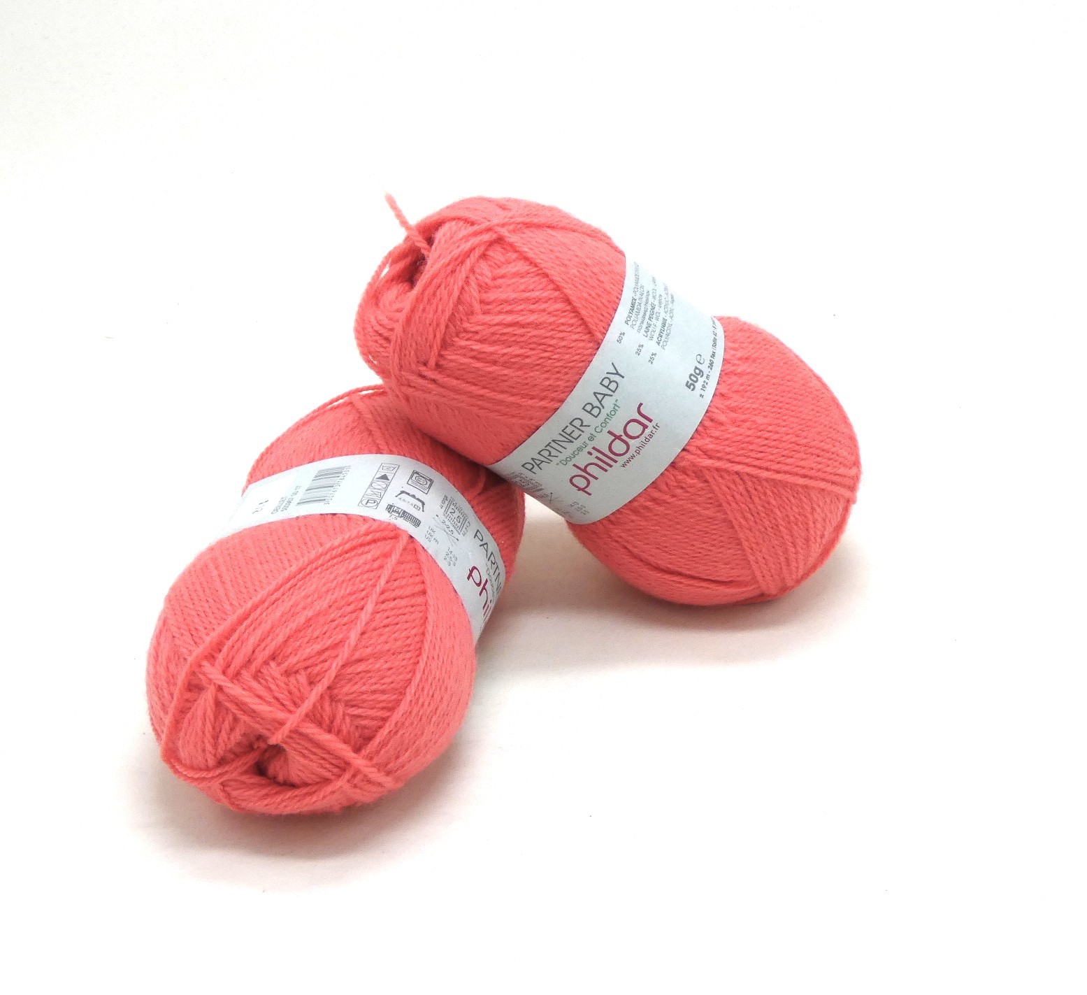 Lot de 2 pelotes de fil à tricoter Phildar Partner baby c 201 oeuillet .