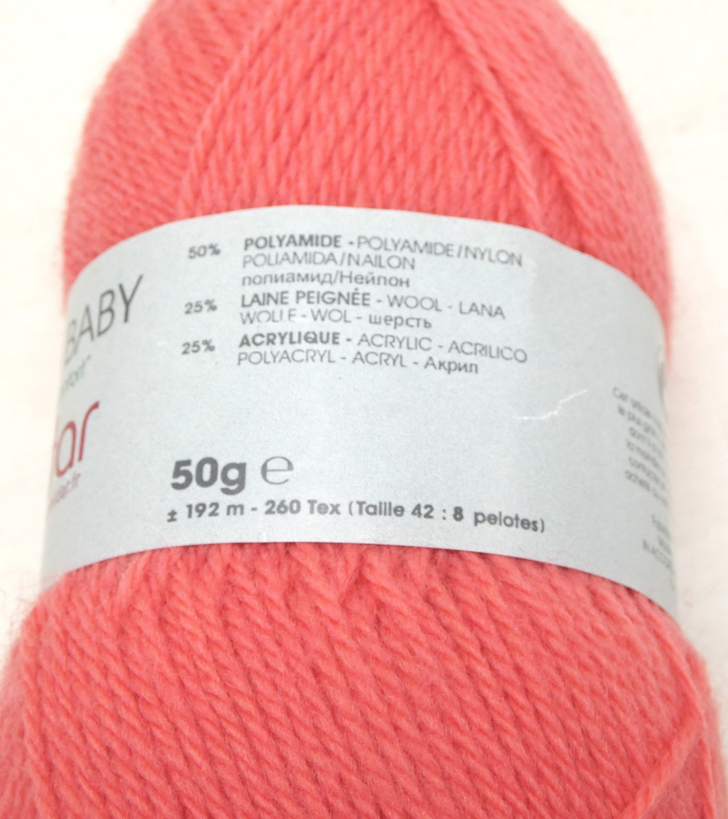 Pelote 50 gr = +/- 192 mètres, 260 tex.
